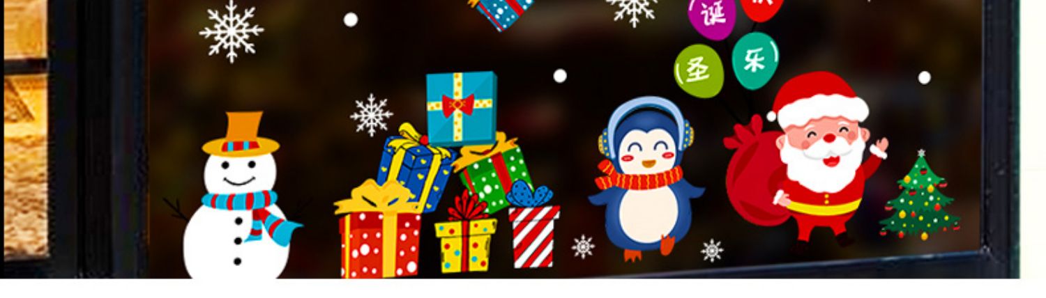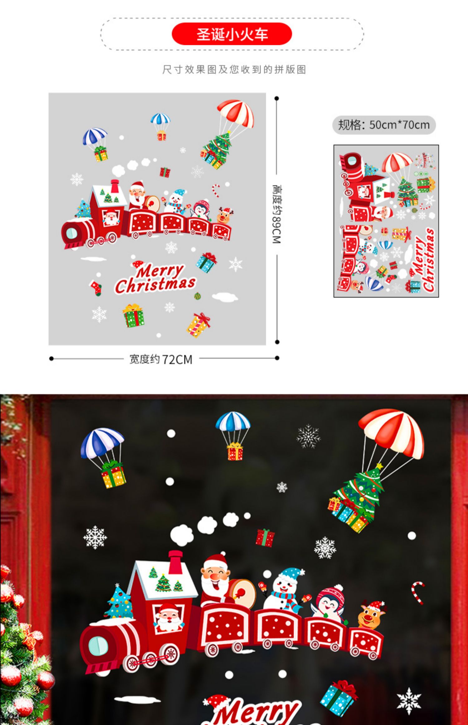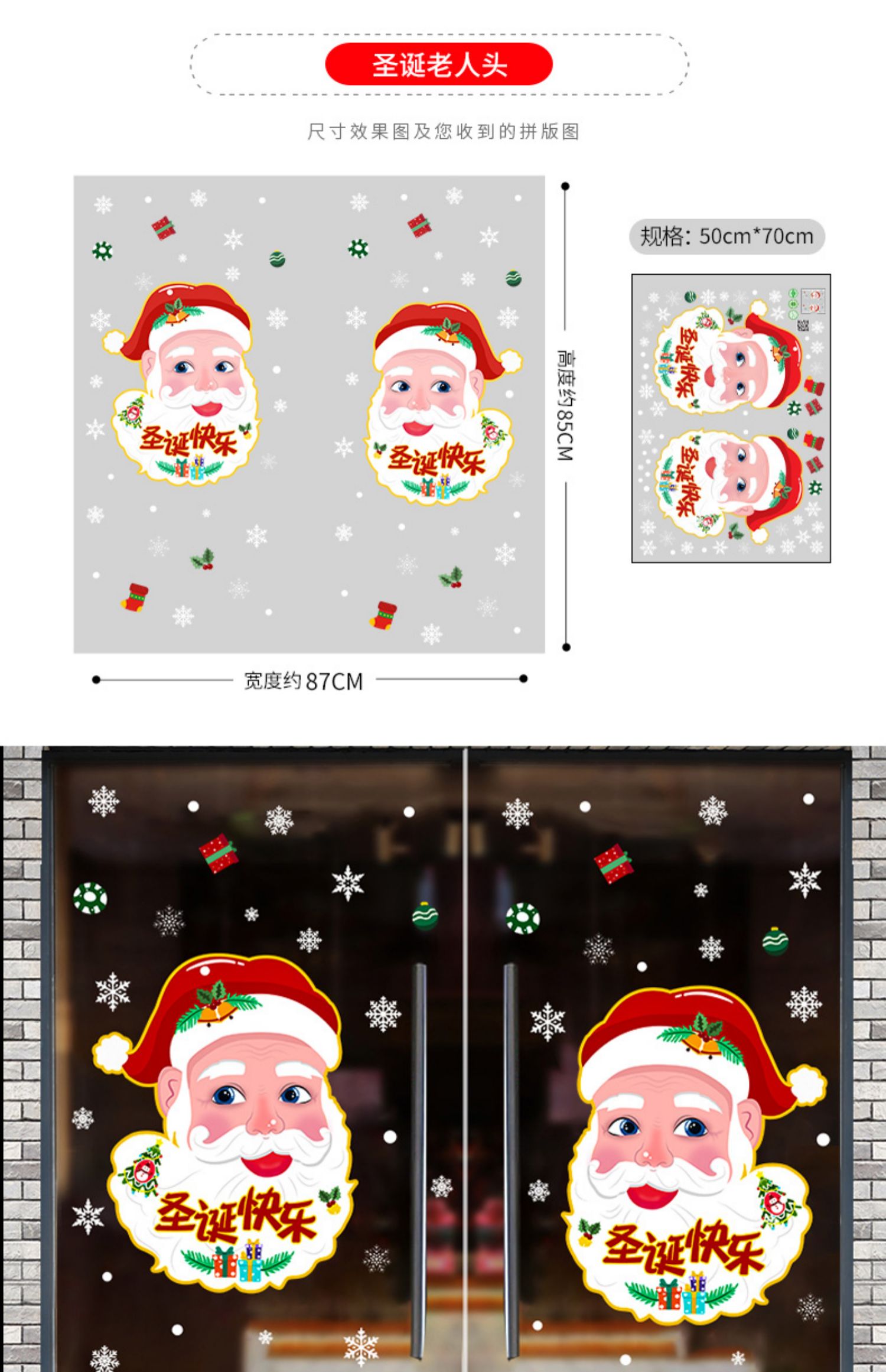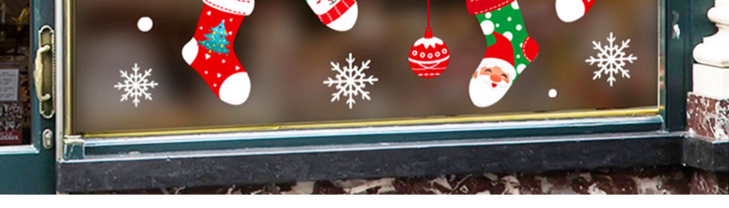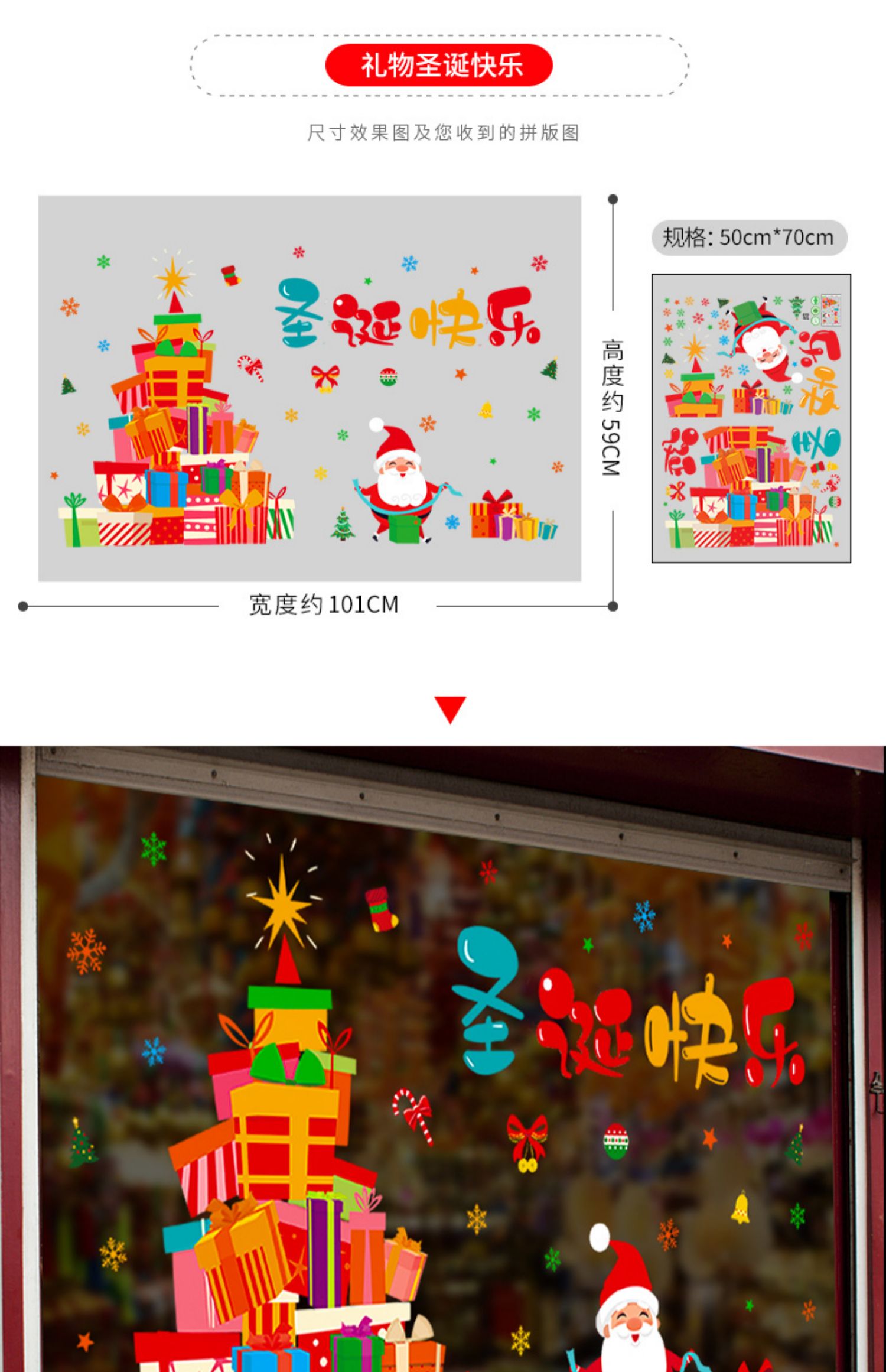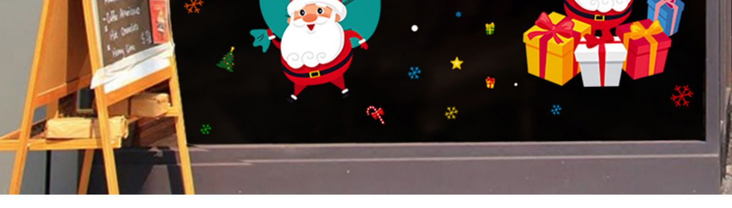 【多款式可选】圣诞节装饰玻璃贴纸,珠宝店铺店面场景布置氛围,圣诞老人树花环,门店学校家居圣诞装扮~双面同色撕下不留痕~