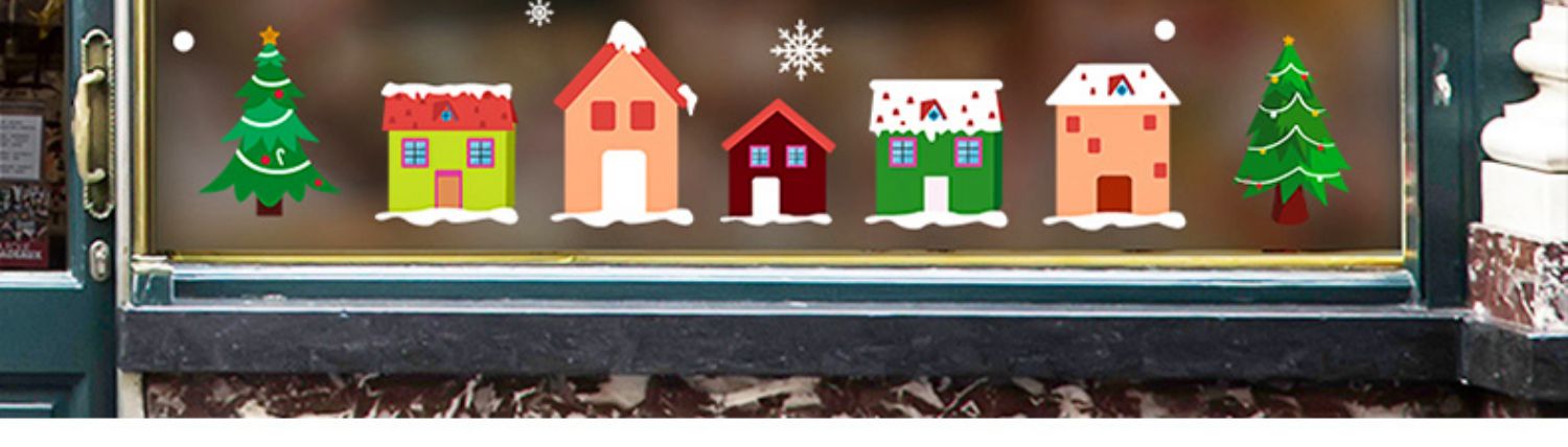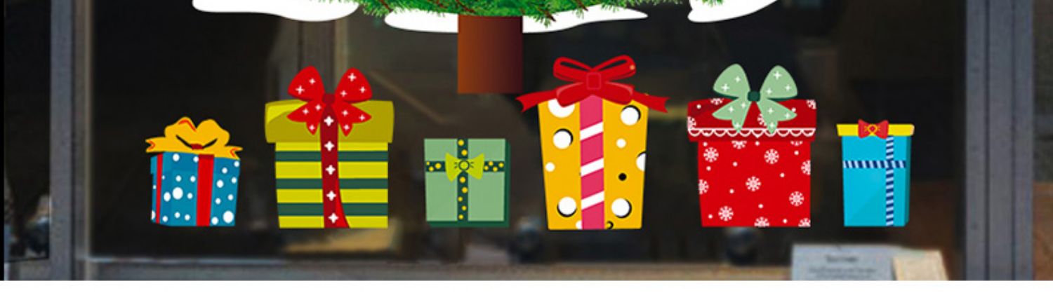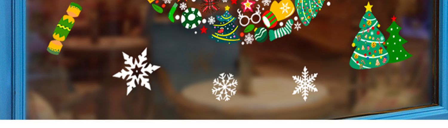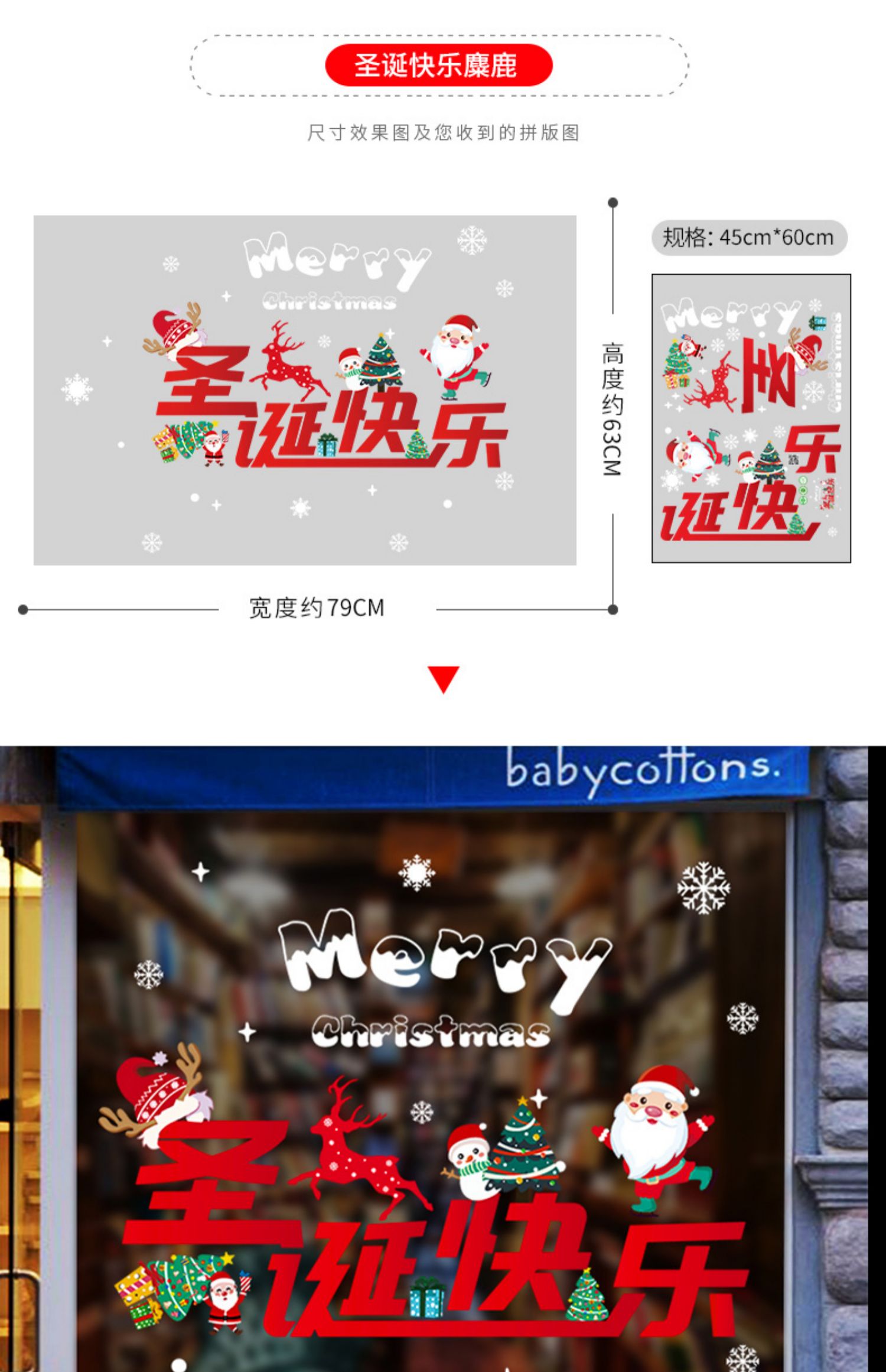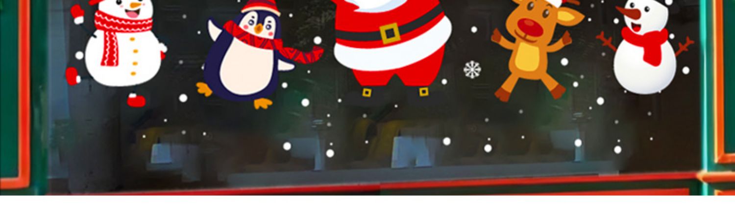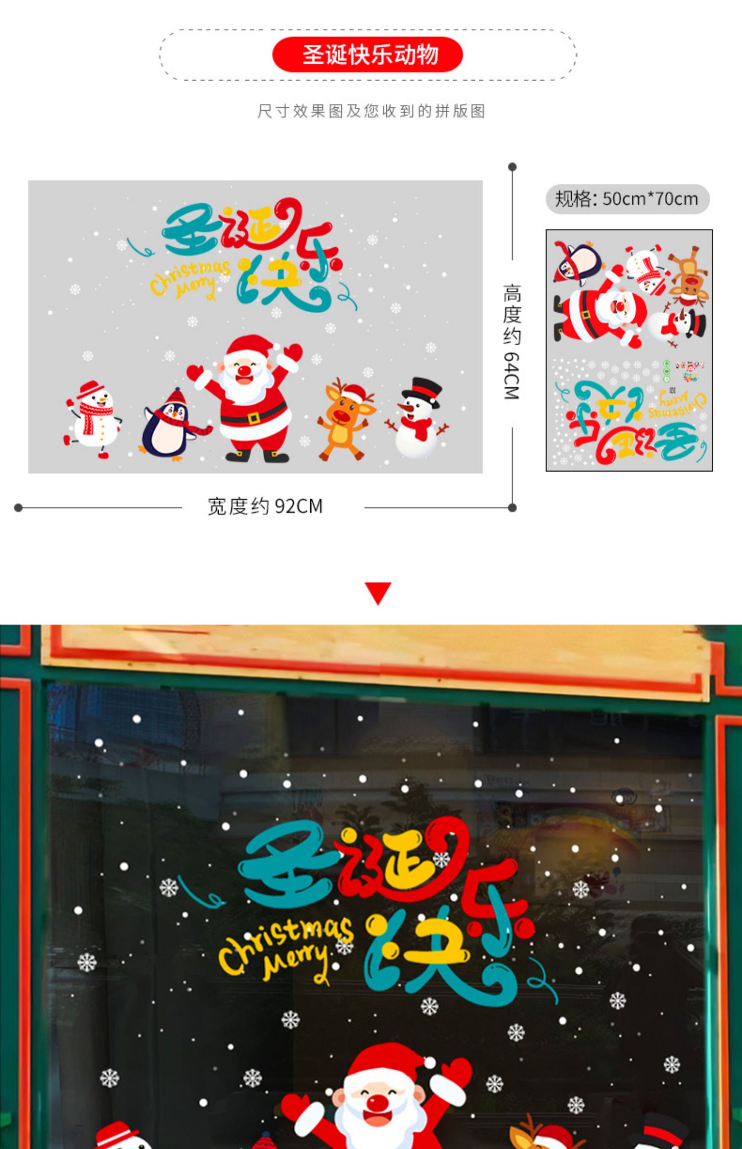 【多款式可选】圣诞节装饰玻璃贴纸,珠宝店铺店面场景布置氛围,圣诞老人树花环,门店学校家居圣诞装扮~双面同色撕下不留痕~