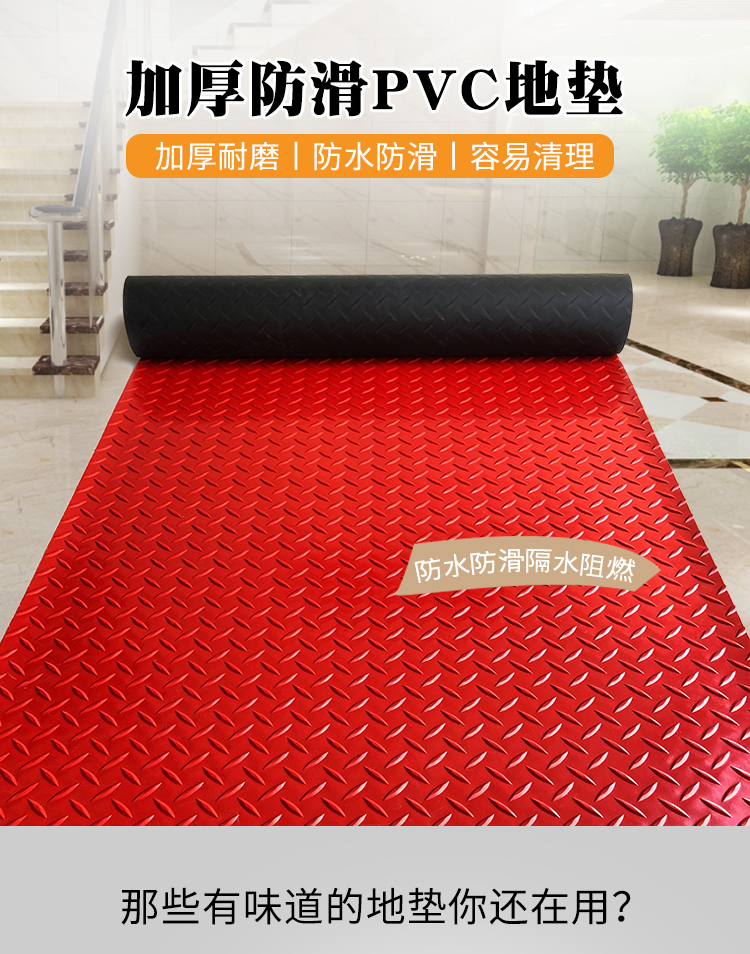 创新环保家用防滑PVC地垫,防滑耐火耐高温,防寒防冻隔水阻燃,撕不烂,扯不坏,健康无味,吸附力好,各式花纹,颜色多样,高温段染不褪色,居家必备【增运费险】