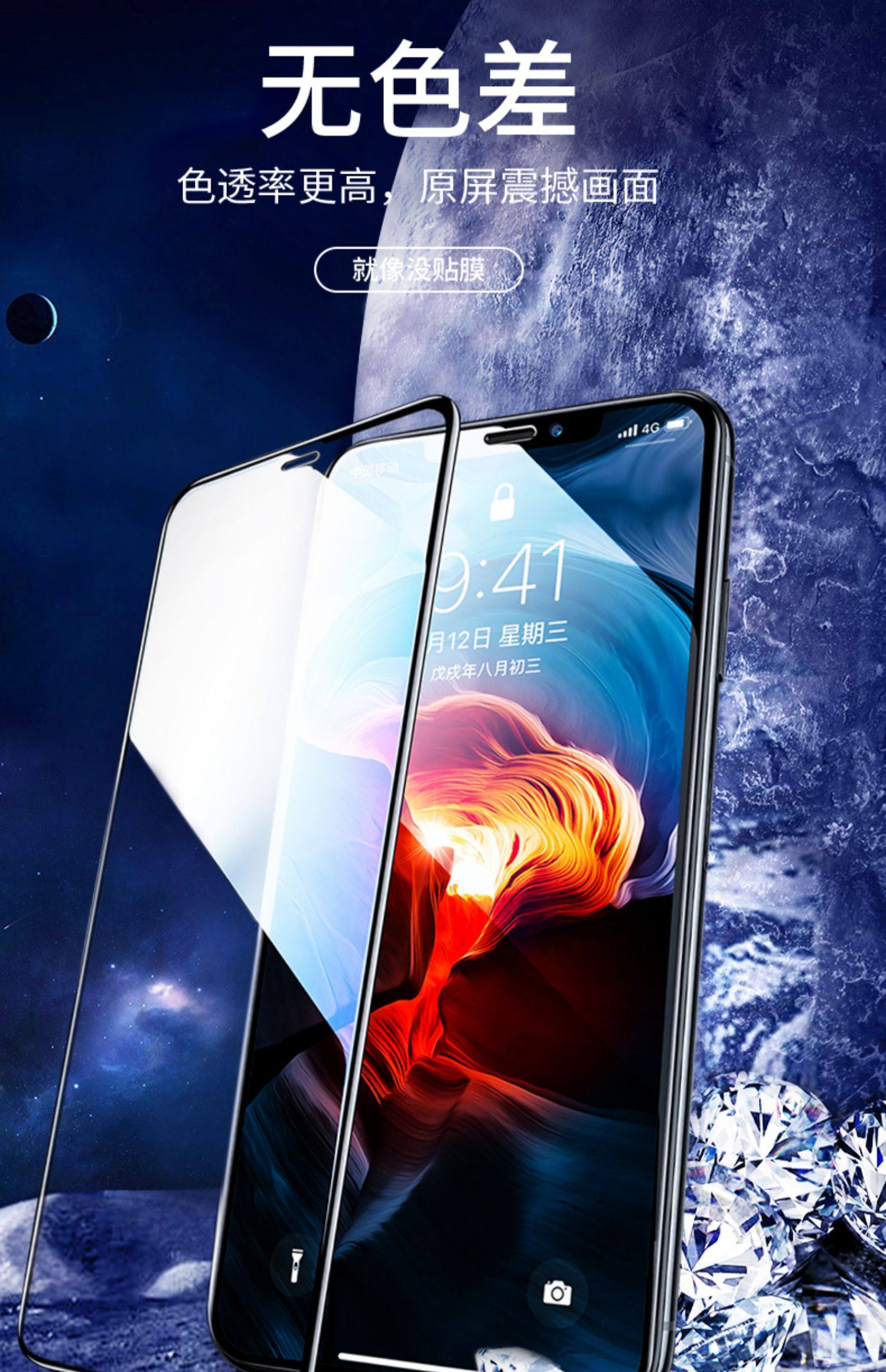 【限领5张卷】苹果系列高清钻石膜!全屏贴合,无白边,不进灰。一体成型,准确开孔,防爆升级。疏油防水,强抗指纹。爽滑手感,触控灵敏。防蓝光,超护眼!