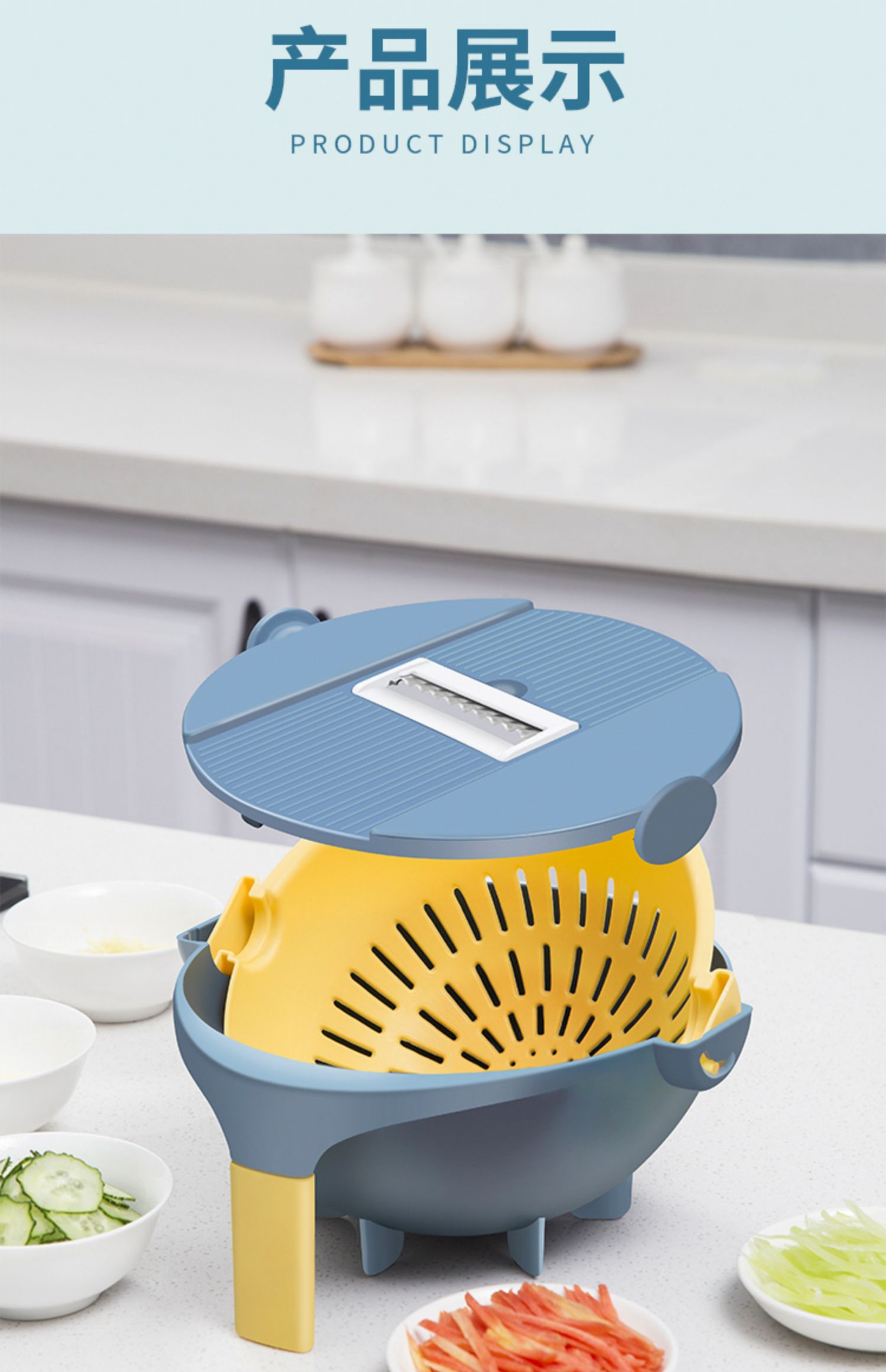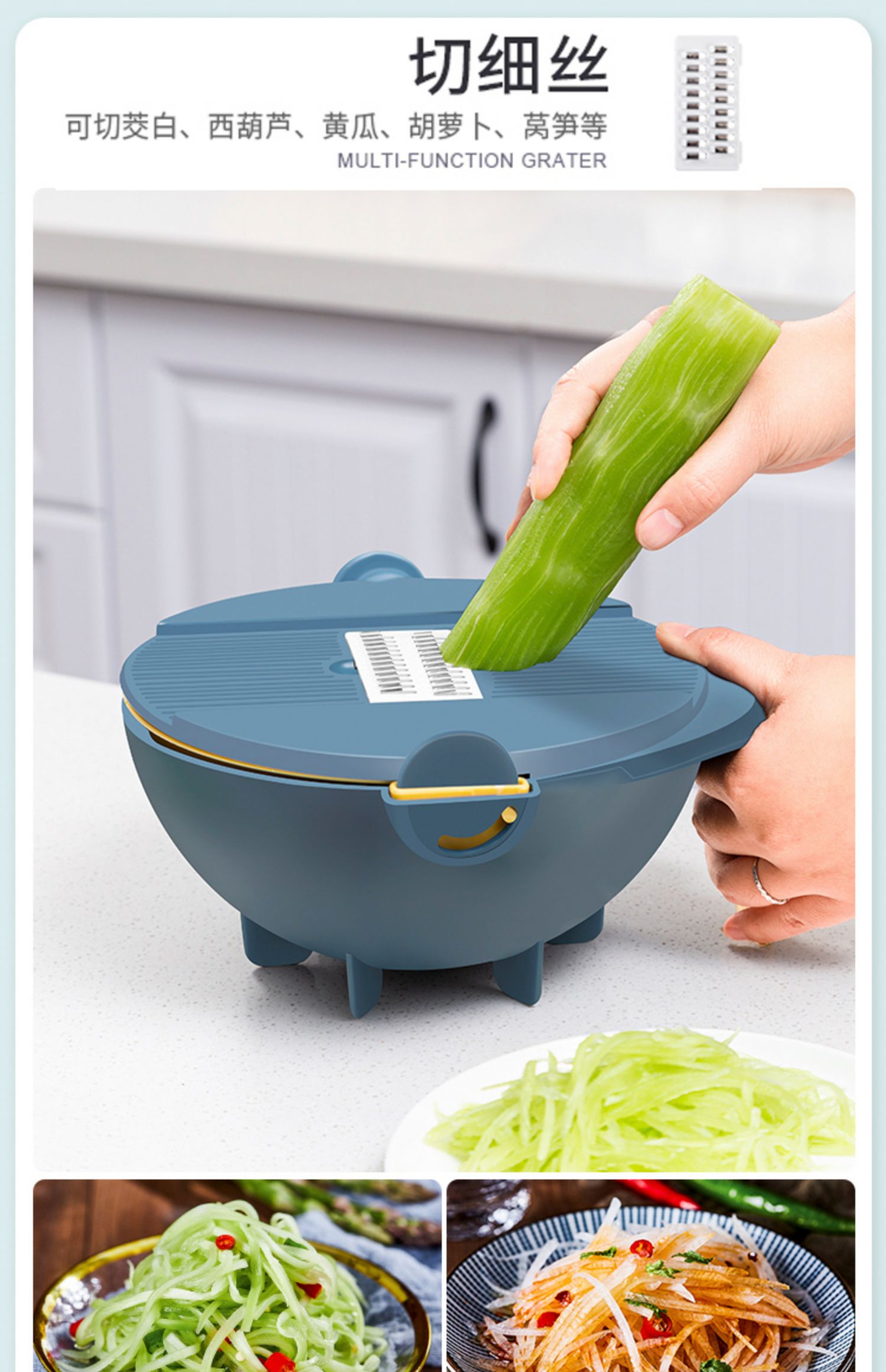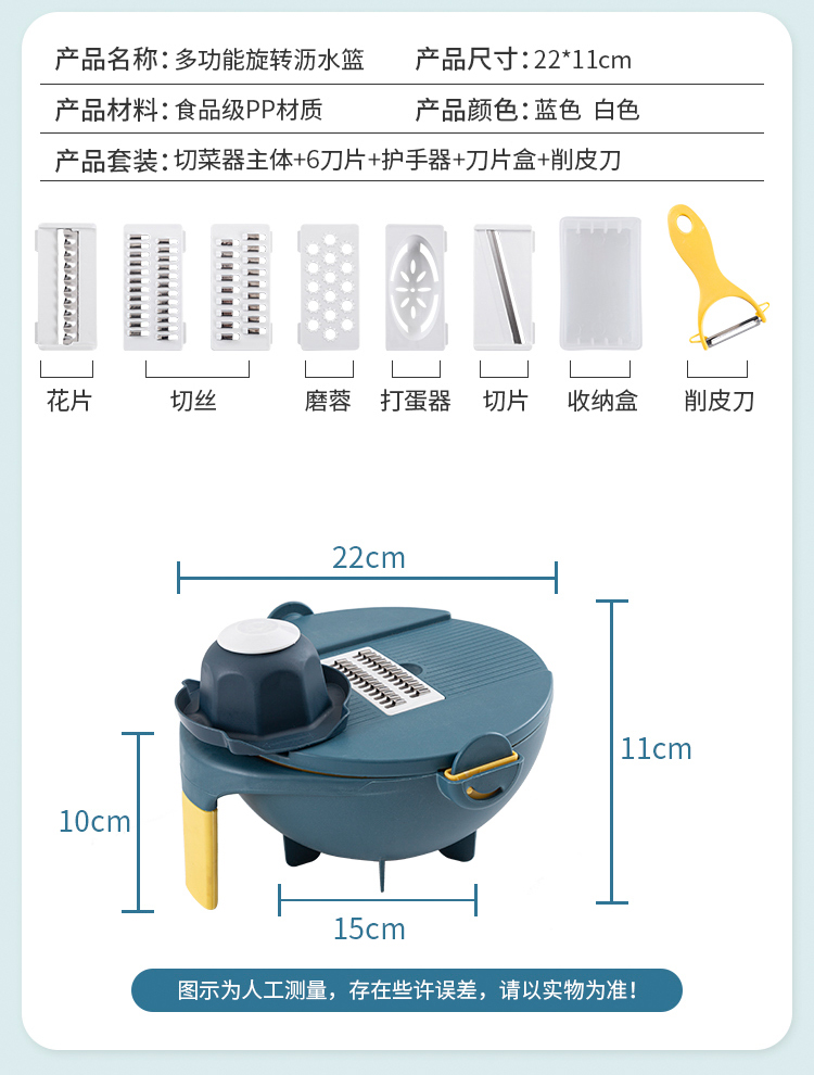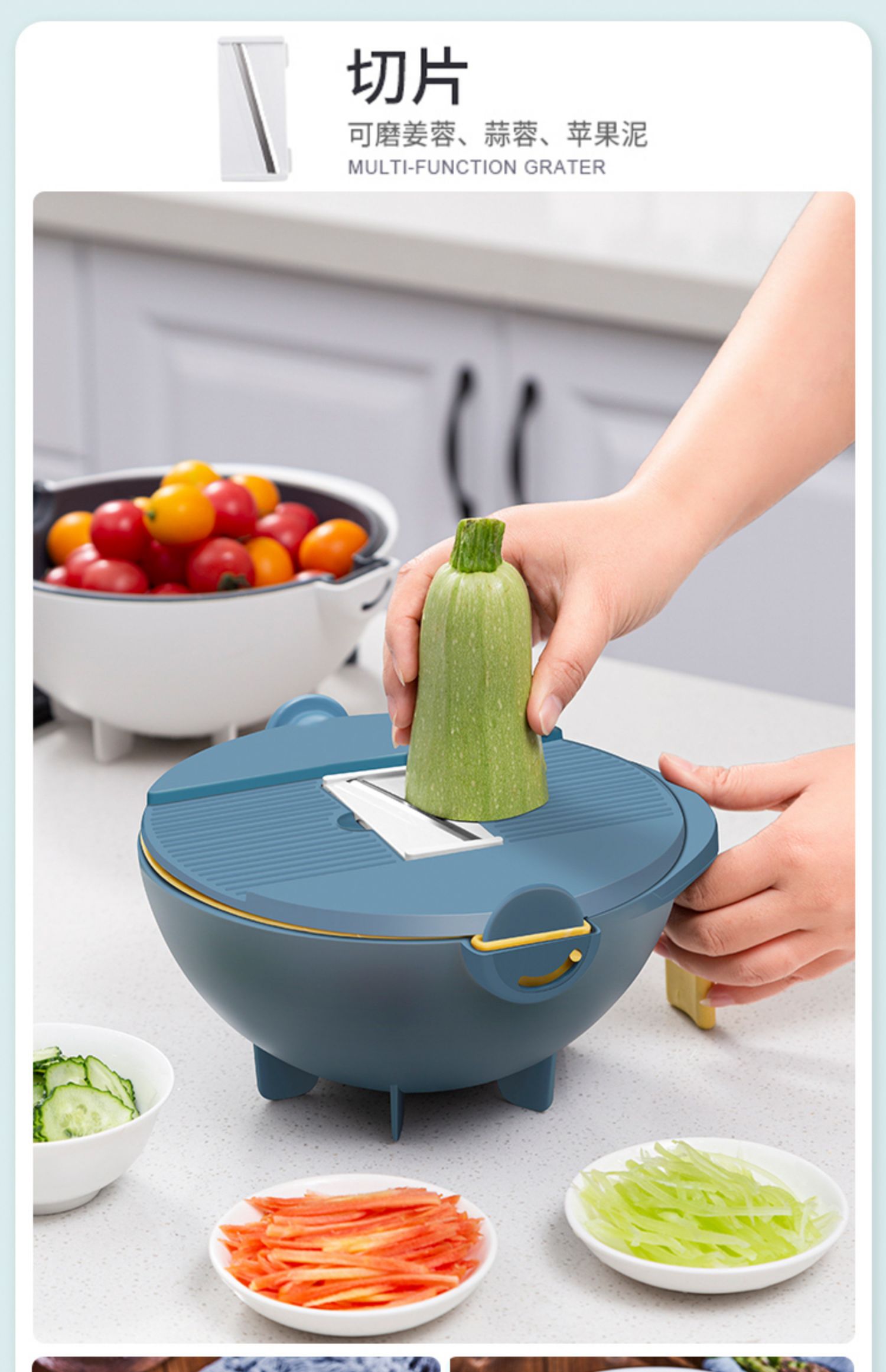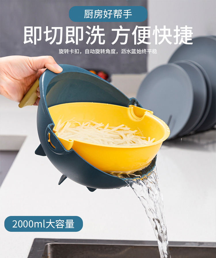 懒人厨房神器,15分钟三菜一汤的秘密!切细丝、粗丝、切片、切花、磨蓉、打蛋,无所不能!!!即切即洗,自动旋转角度沥水,平稳便捷,一篮多用,叠放可储水,分开可收纳~食品级材质,国家环保认证
