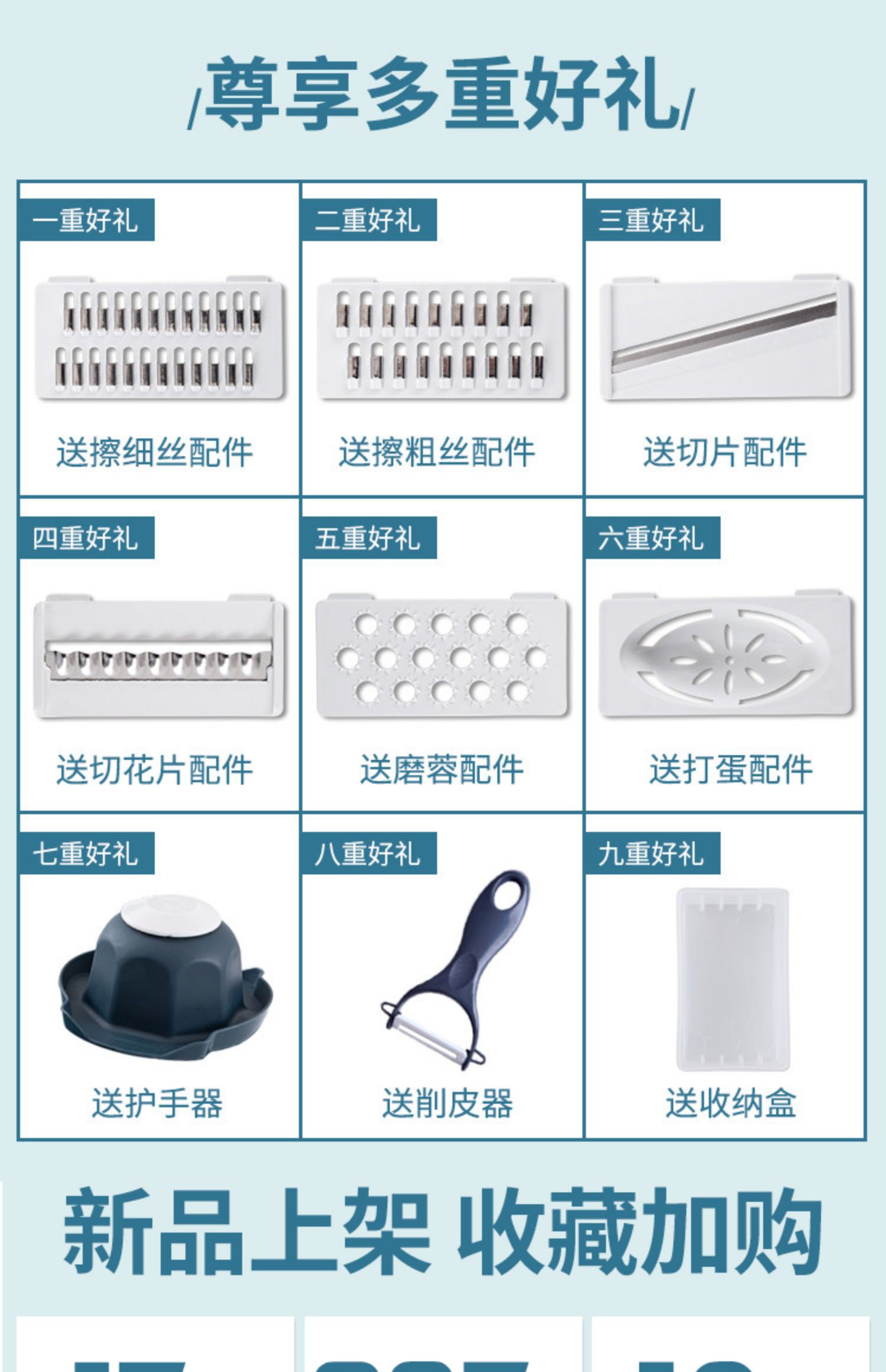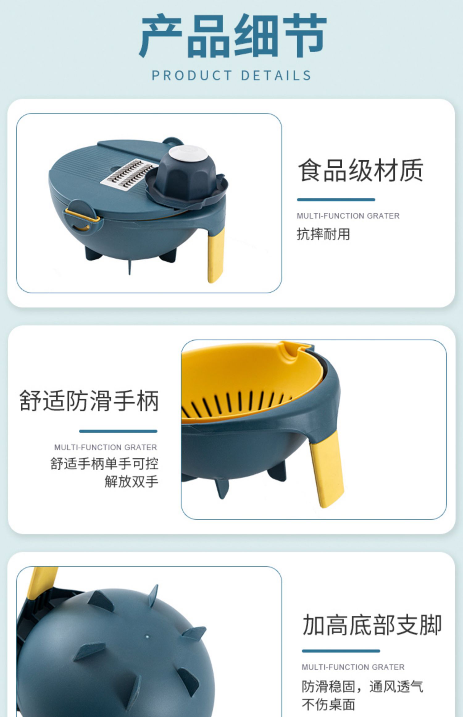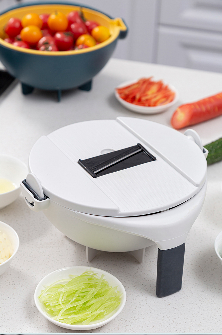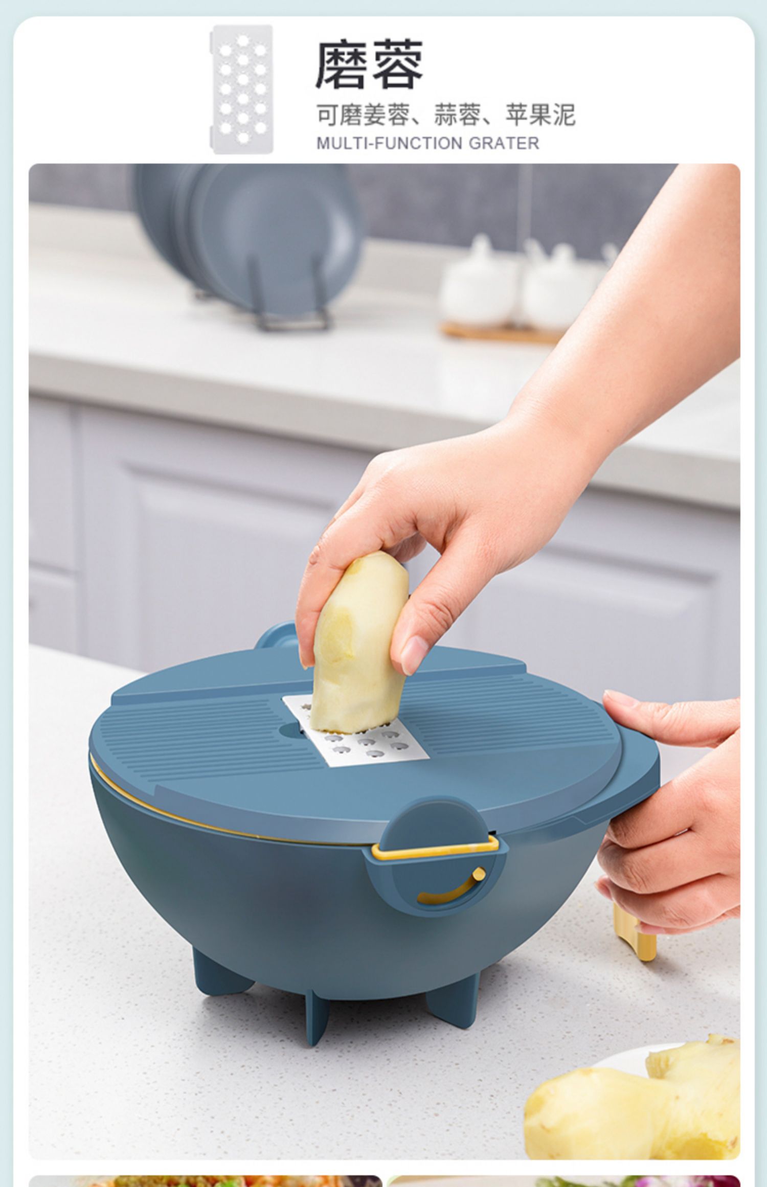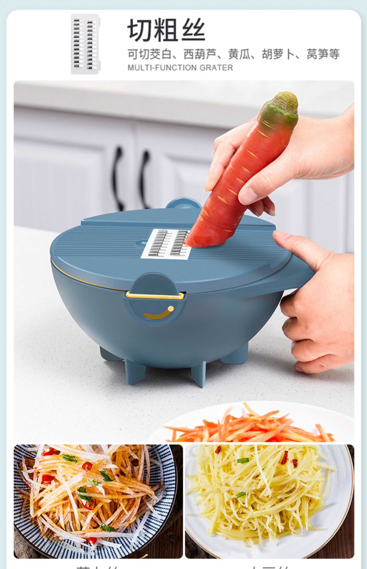 懒人厨房神器,15分钟三菜一汤的秘密!切细丝、粗丝、切片、切花、磨蓉、打蛋,无所不能!!!即切即洗,自动旋转角度沥水,平稳便捷,一篮多用,叠放可储水,分开可收纳~食品级材质,国家环保认证