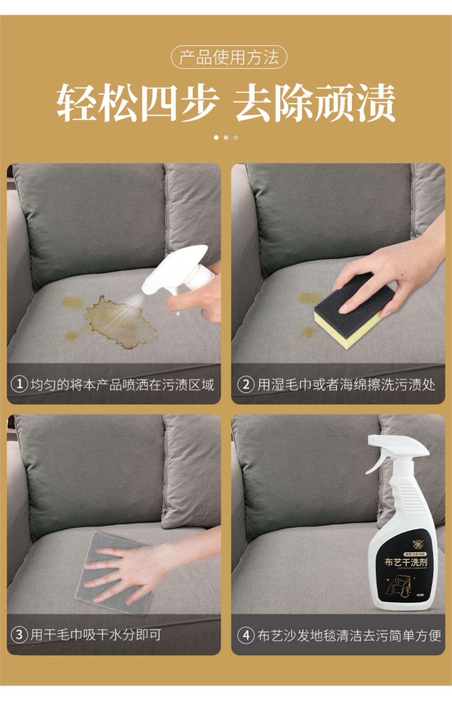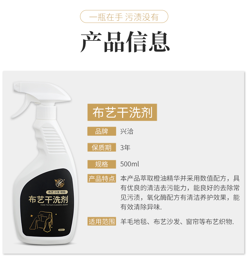 泡沫型二合一,天然配方,安全环保.无需拆洗,清香除味,植物配方,温和柔顺,清洁不留痕,500ml大容量,母婴可用,沙发地毯布艺衣服一瓶就够!让家具光亮如新.有效防尘!