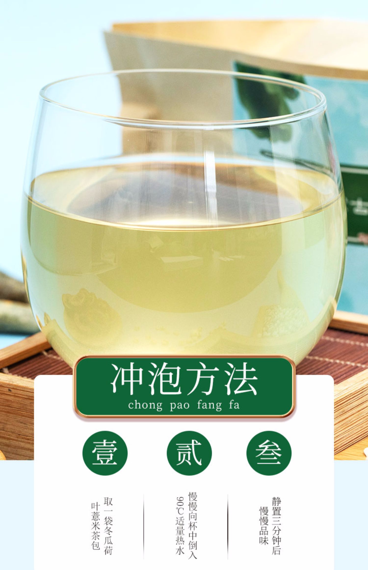 冬瓜荷叶薏米茶,窈窕曲线喝出来,好颜值“荷”出来,清肠解腻,居家办公,轻松显瘦,独立小茶袋,冲泡方便,排毒养颜,提高新陈代谢,减肥降脂降火佳品!给自己一个轻盈体态自信身材