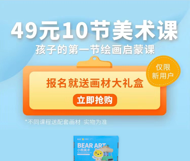 【全国包邮】没有小朋友不喜欢画画的,今天发现了一个超赞的在线少儿美术AI课—【小熊美术】【2节TV课+8节AI互动课】,送一个价值266元的随课画材大礼盒!