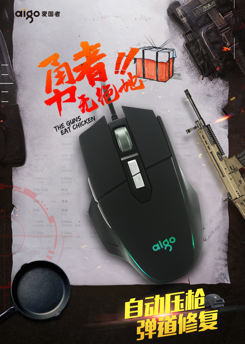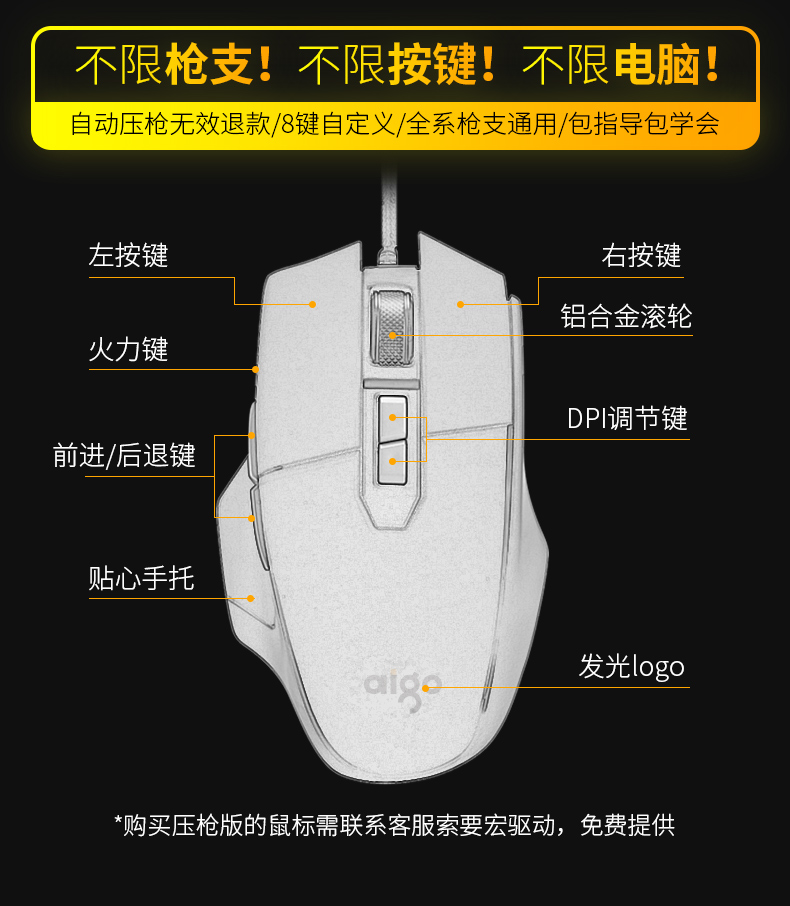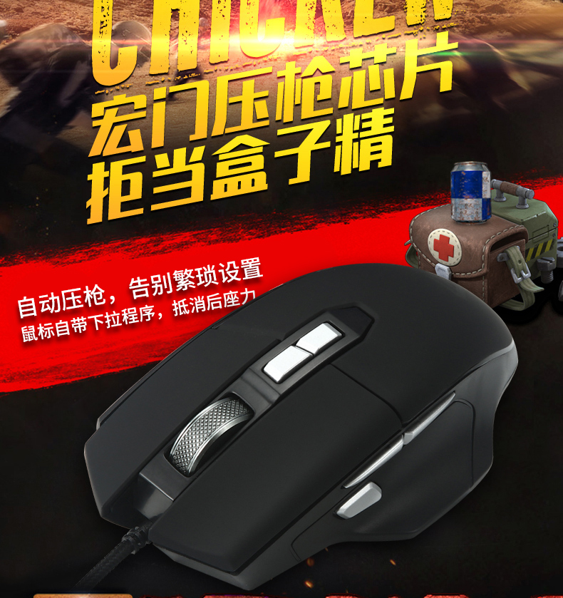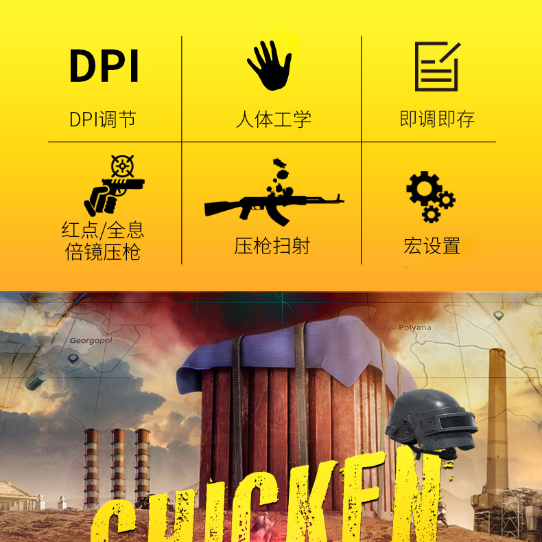【吃鸡神器】旗舰级游戏芯片,专业游戏传感器稳定输出,自动压枪,弹道修复!支持全键宏编程设计、酷炫外形、机械手感、7键游戏操控、DPI四挡调节,支持CF英雄联盟LOL等游戏,实现高手连招!