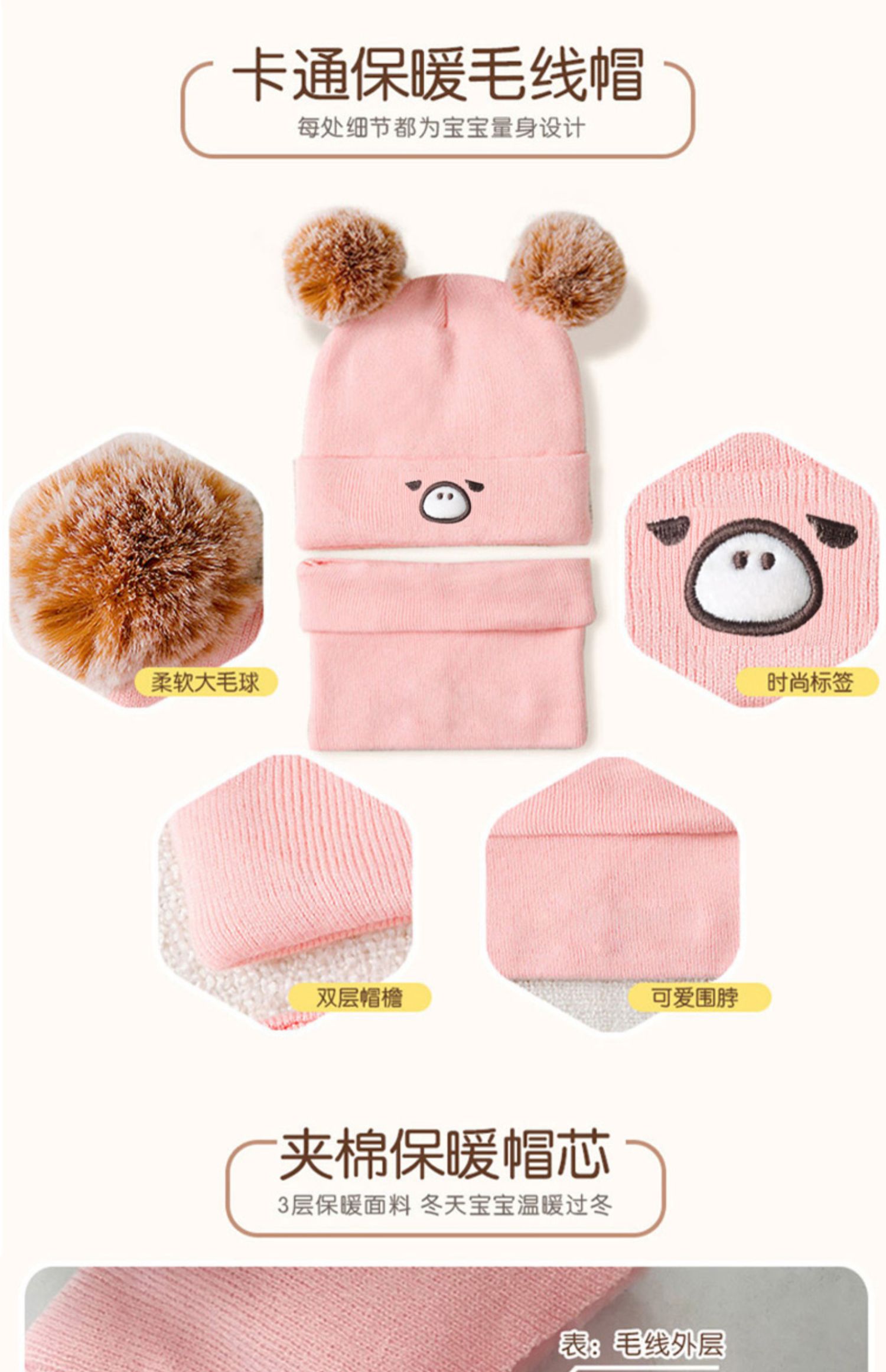 优质针织细毛线,手感很柔软,超级保暖!卡通造型,戴上显得宝宝更加机灵可爱,秒变萌宝哦!宝宝防风御寒必备【可领2张券】