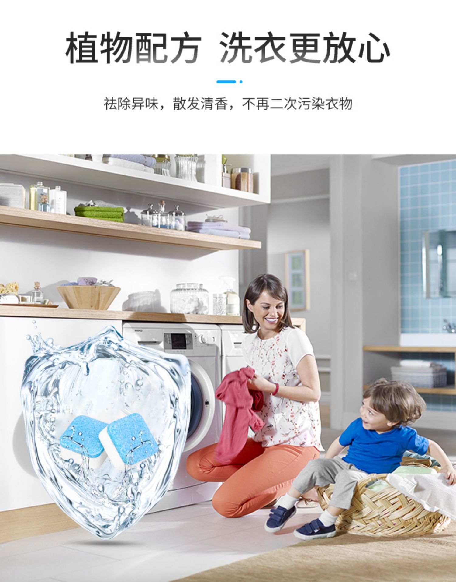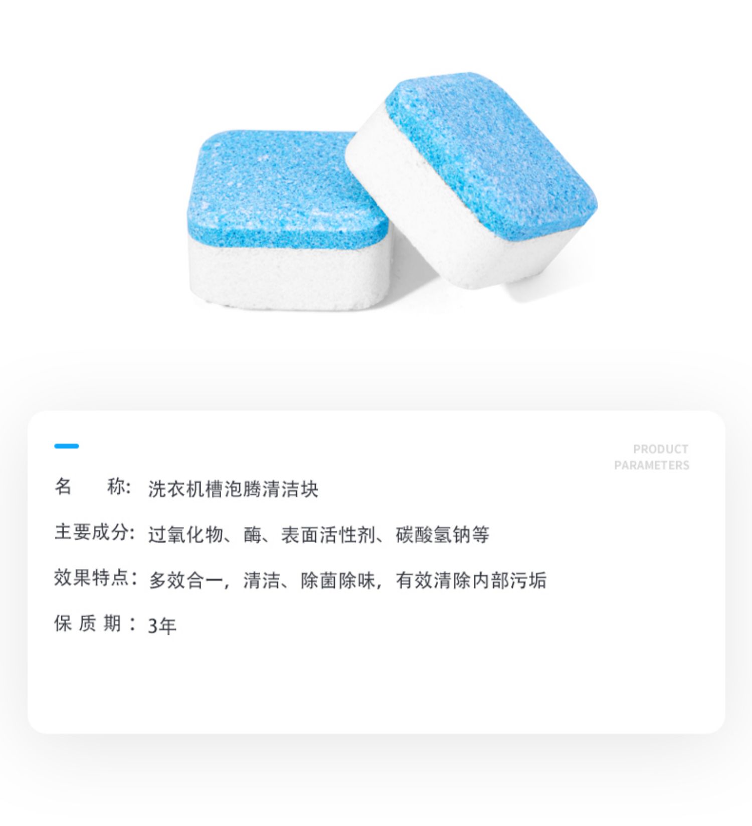 12片装,洗衣槽不清洗,可能导致衣物的二次污染哦! 赶紧get这款洗衣机槽清洗剂~适合所有机型的洗衣机使用!小小一块,轻松瓦解洗衣机槽的顽固污渍!