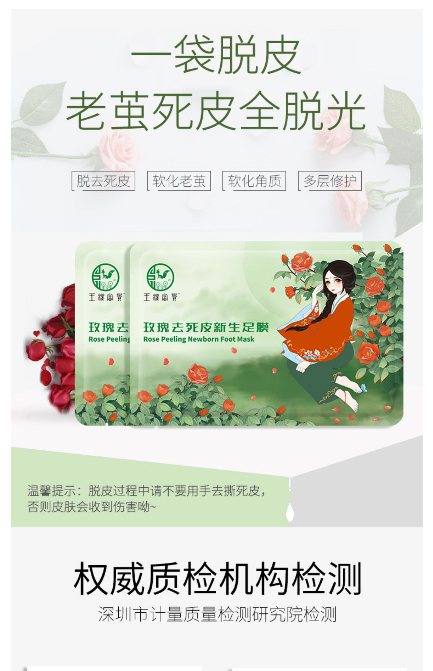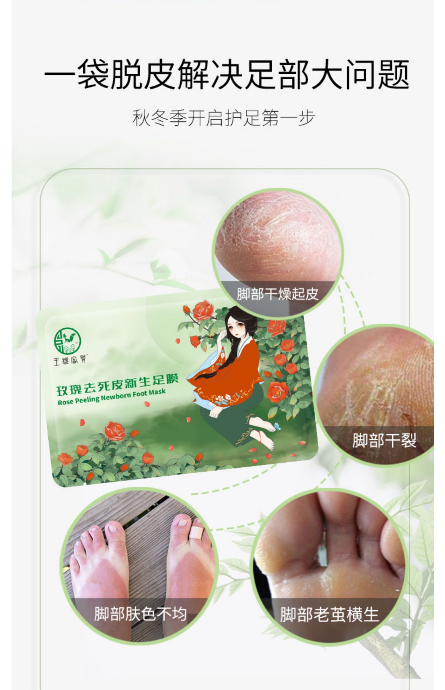 【王权富贵】烟酰胺脚膜脚膜护理,嫩白保湿补水,去死皮去角质,含玫瑰精油成分,告别干裂,为足部保留住水嫩光滑