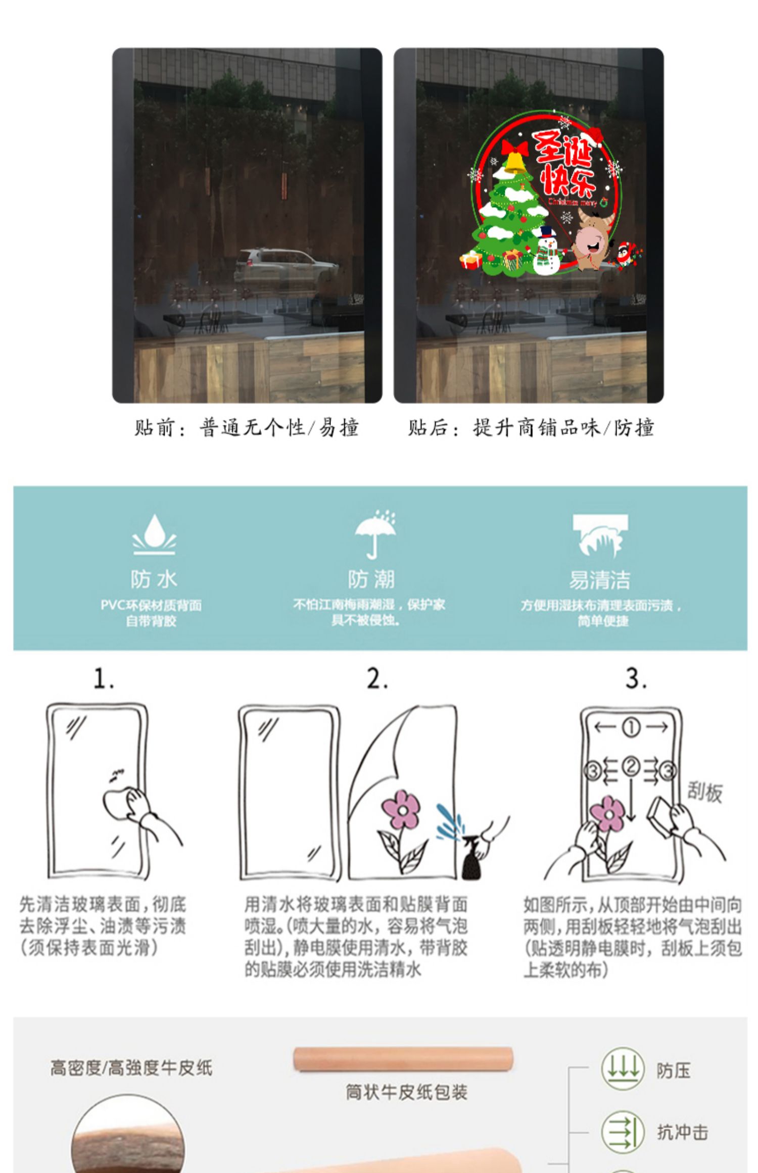 【多款式可选】精美圣诞节装饰玻璃贴纸,环保材质,不留痕迹,图案清晰精美,多款图案可选,随意搭配组合,挥挥手迎接圣诞,让思念的霓虹去除寂寞的夜。【赠运费险】
