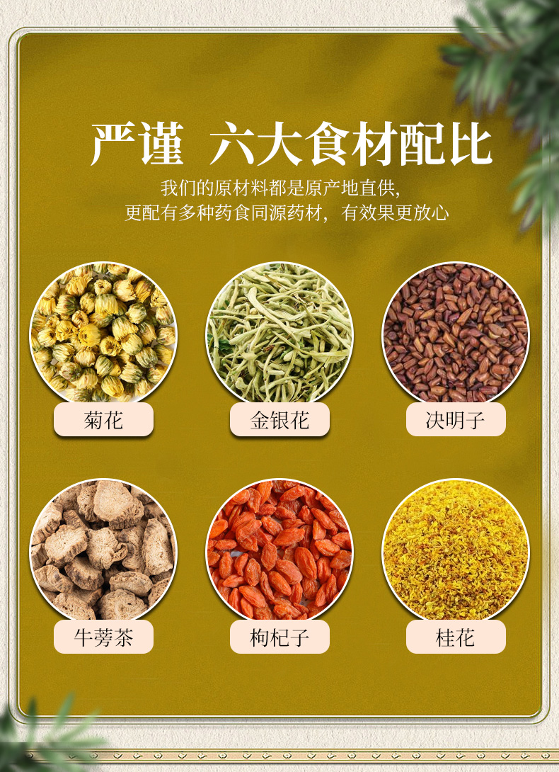 金银花、菊花、牛蒡茶、枸杞子、桂花决明子、升级版药食同源配方,看得见的材质,喝得放心,养肝明目,清热去火,拒绝廉价劣质茶包,忙忙碌碌,加班加点,泡上一杯暖暖得菊花决明茶!