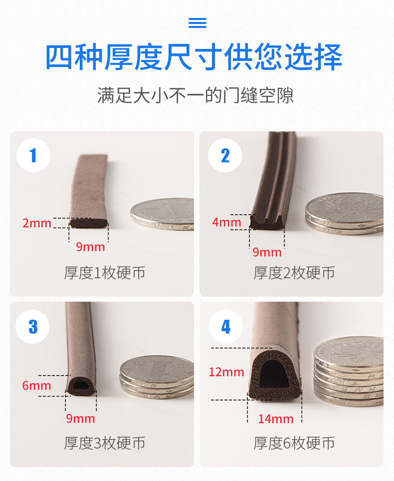 优质硅胶材质,柔韧性好,可以随意弯曲,自带背胶,不易脱落,防虫防水防风防尘挡隔音,用途广泛!长久使用,您居家的好帮手!