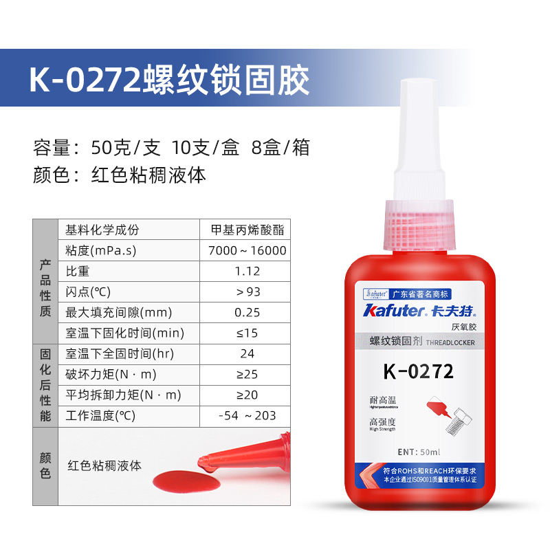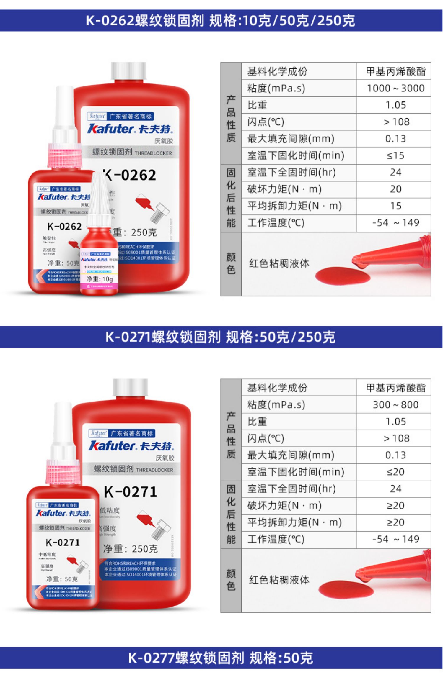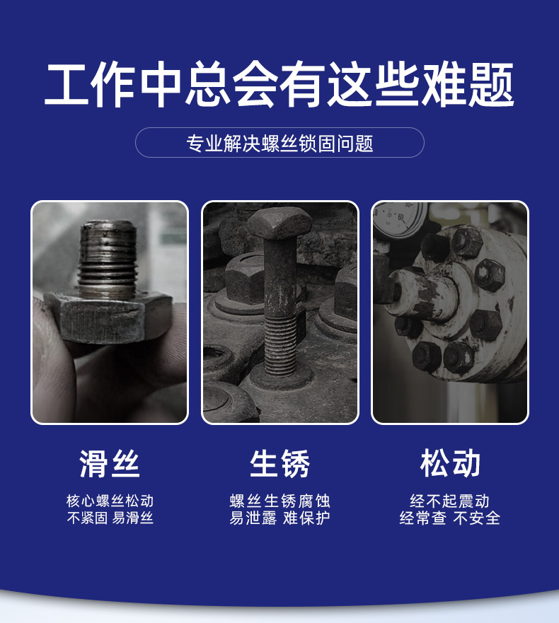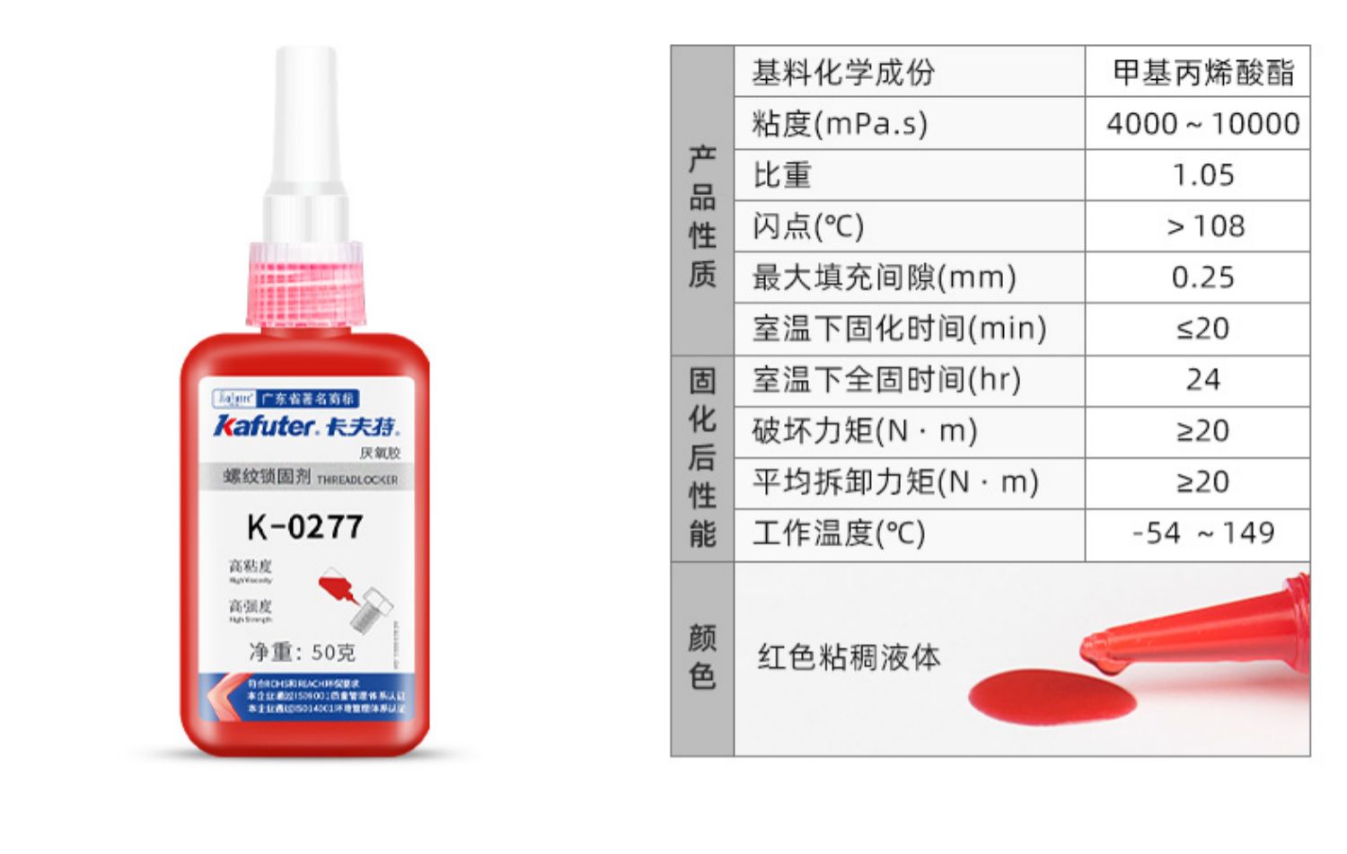 防水耐油,轻松锁固,对油性表面的螺纹有很好的锁固效果!