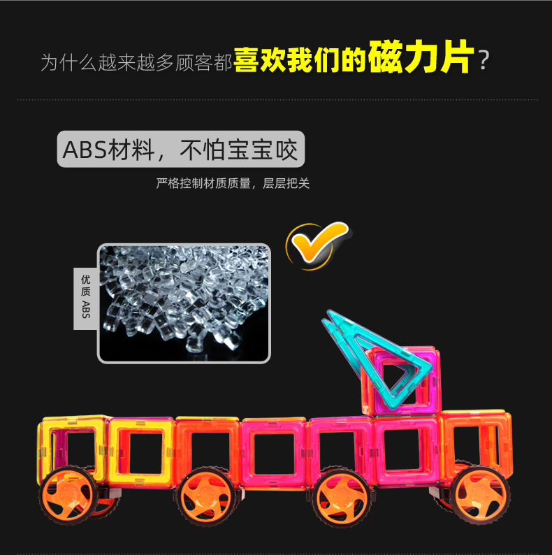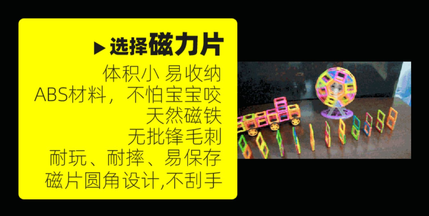 磁力片玩具!机器人、小汽车等造型任意拼,激发孩子无限创意,越玩越聪明~还能锻炼孩子的动手能力呢!还是可水洗,不怕磁铁生效的款,快囤~