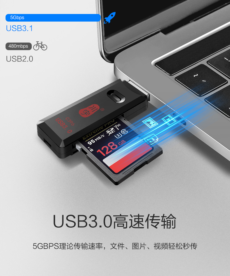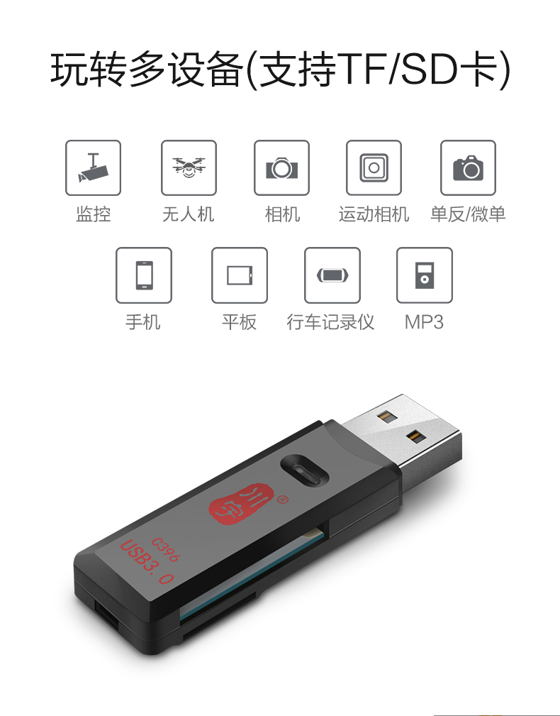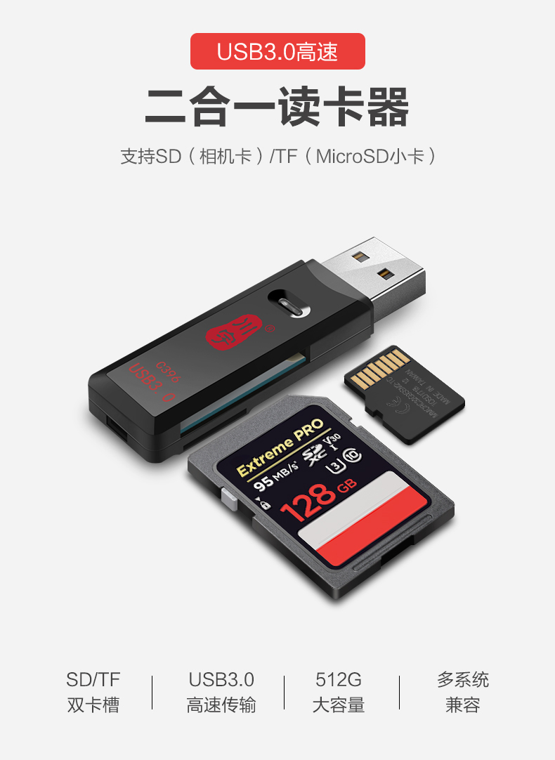 支持TF卡/sd,USB3.0高速传输。兼容多种设备,可分别读取TF卡,轻松满足你的读卡需求,【七天无理由退货】