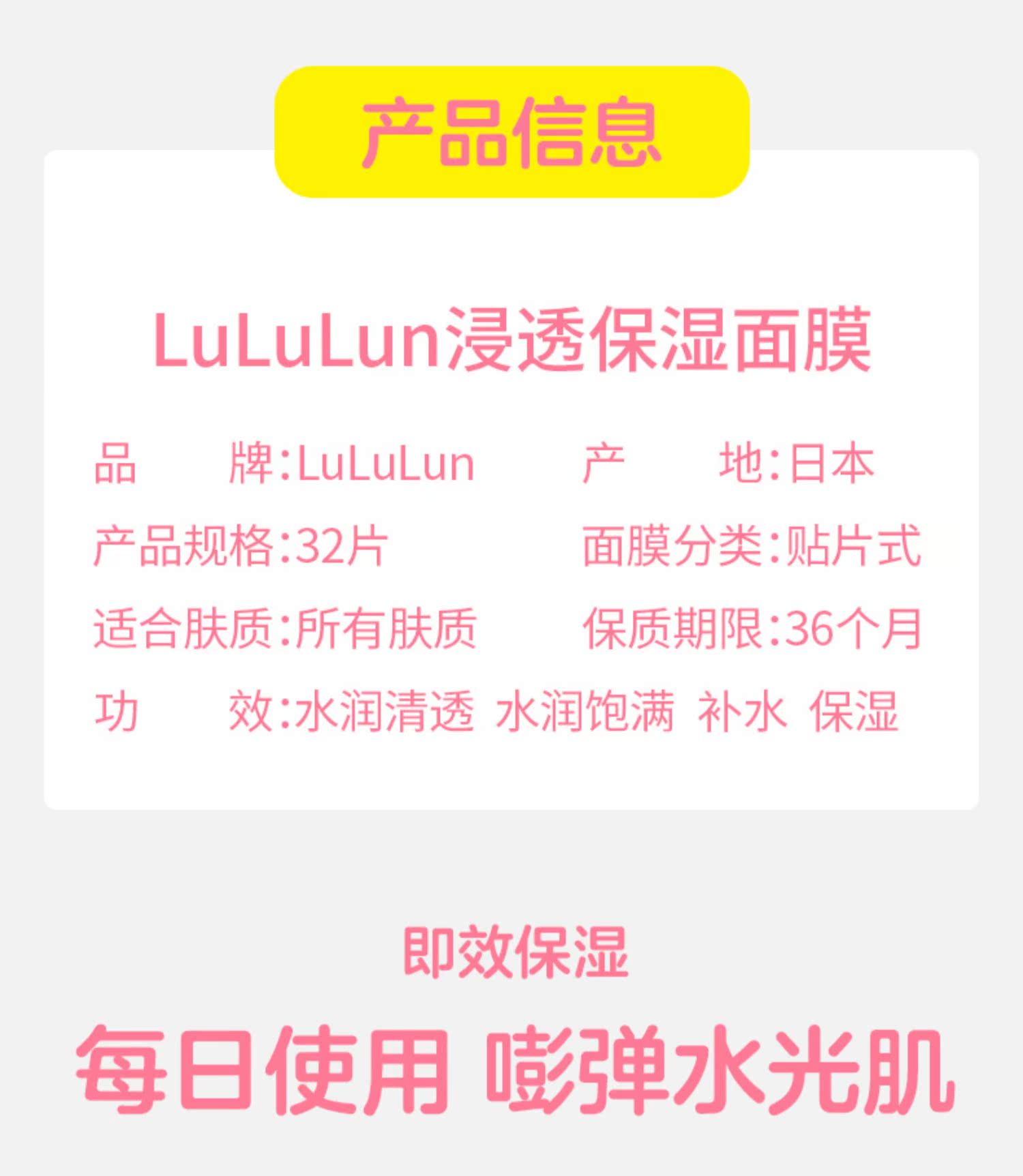 【前1小时9折】LuLuLun水润面膜,新升级的三大特点:1强效高保湿成分;2柔软服帖面膜纸;3易于抽取的包装设计,芍药花提取物,维他命D功效,带来新生的力量,日本超高人气品牌