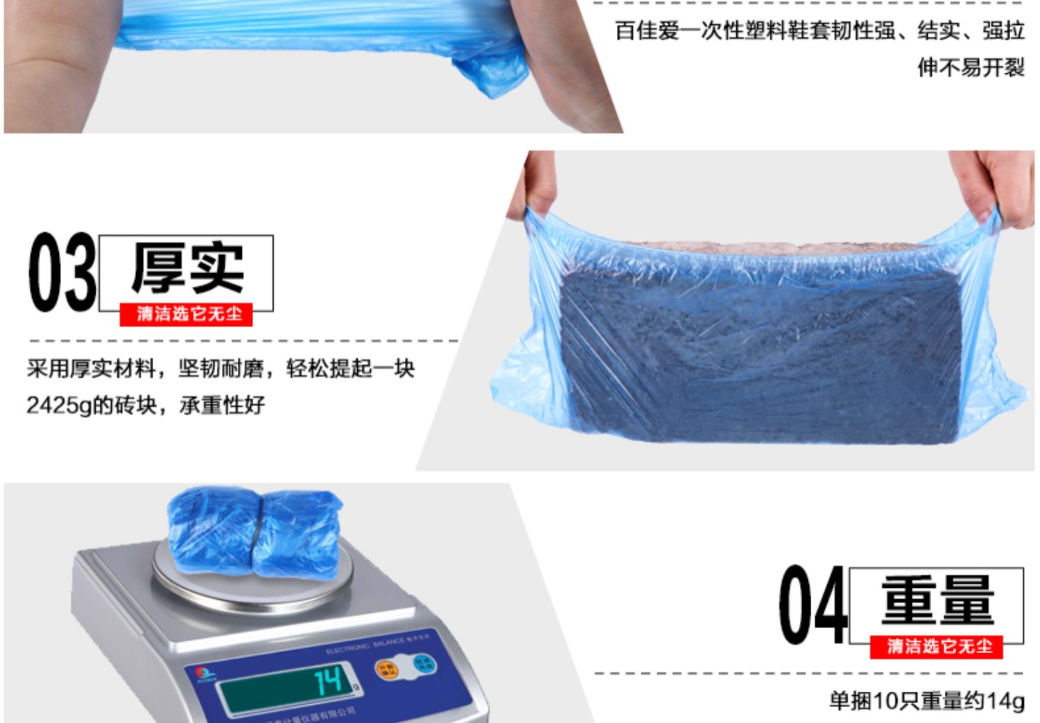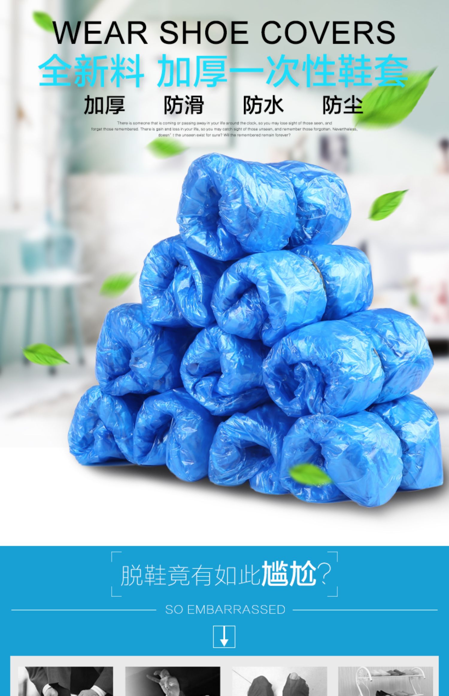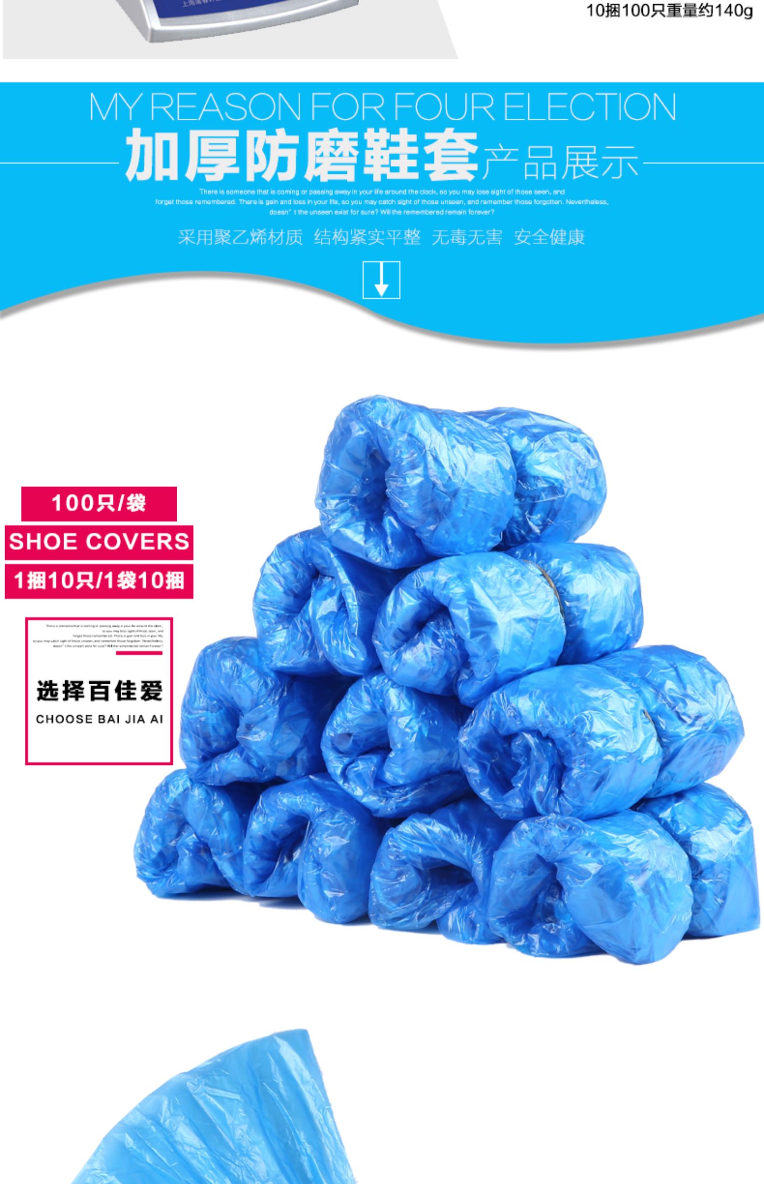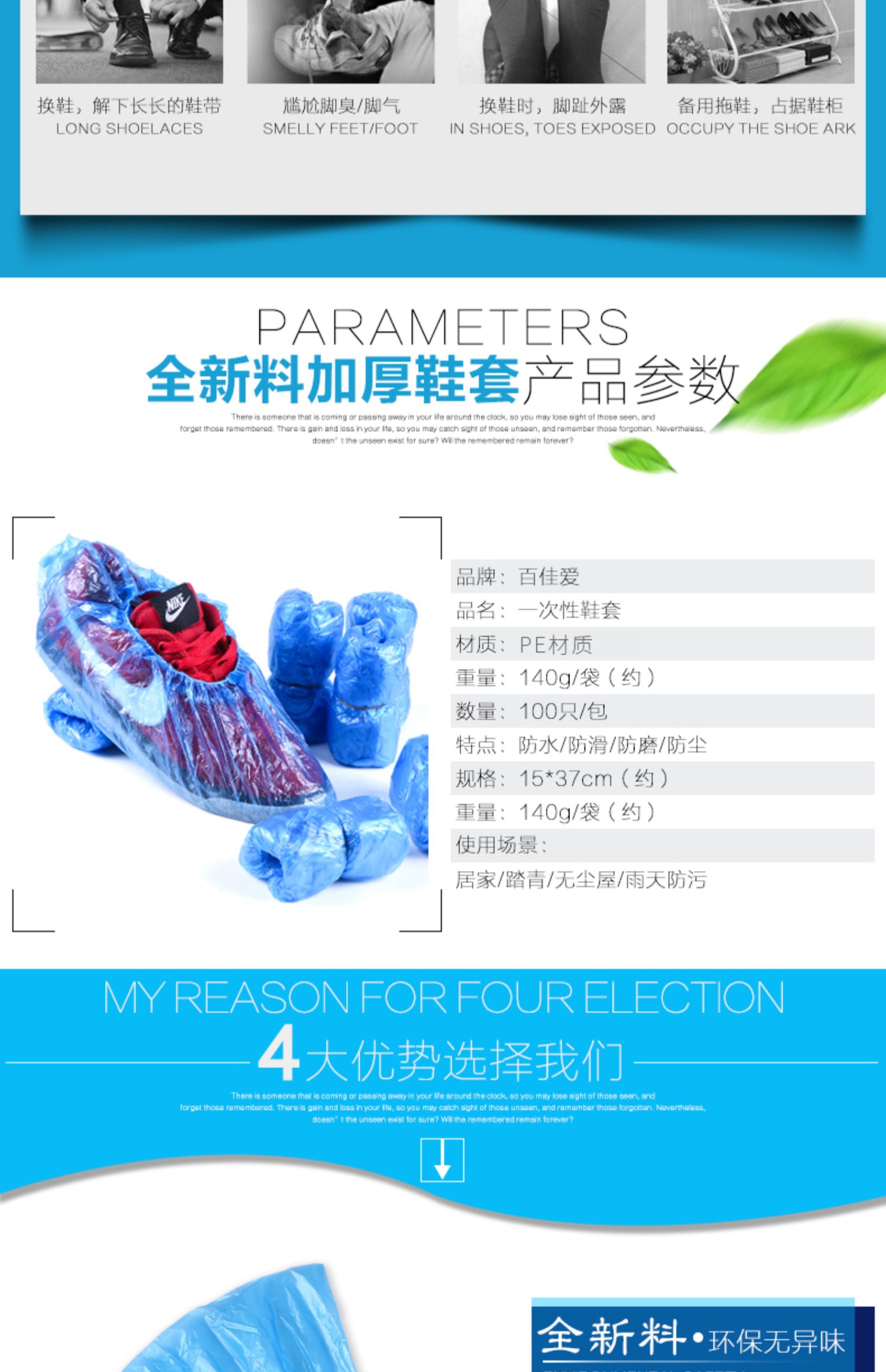 【10只体验装】环保加厚塑料,雨天防水防尘,耐磨不易破,承重强不漏水,保持室内干净卫生,弹性松紧口,穿着舒适自然,均码通用,多色可选防静电,有了它避免不想脱鞋的尴尬。速度抢!
