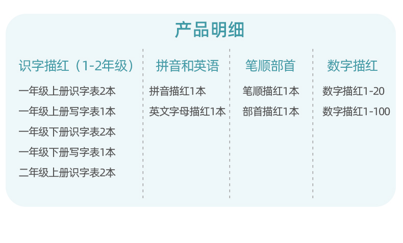 小学生识字描红,适用于3-8岁,多种练习内容,基本涵盖小学所学知识,由易到难,加厚优质纸张。每天练习十分钟,让宝宝轻松上小学