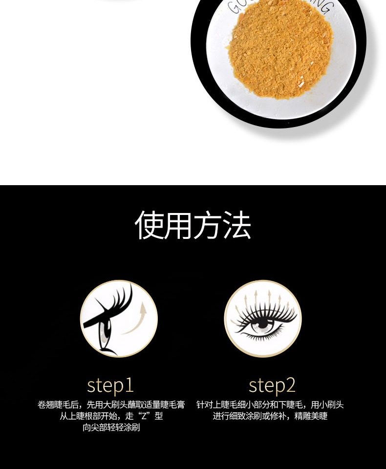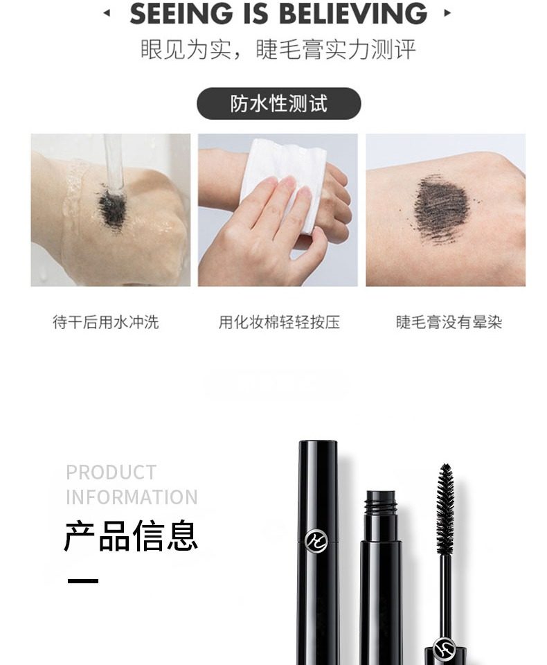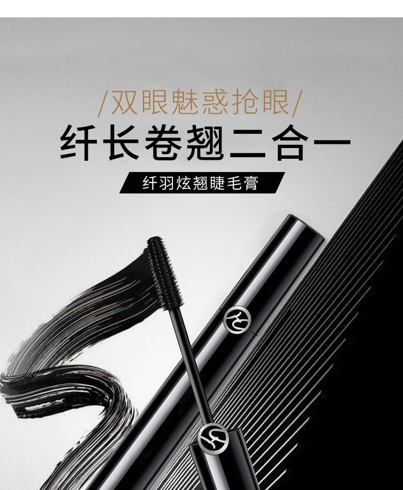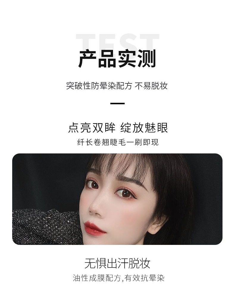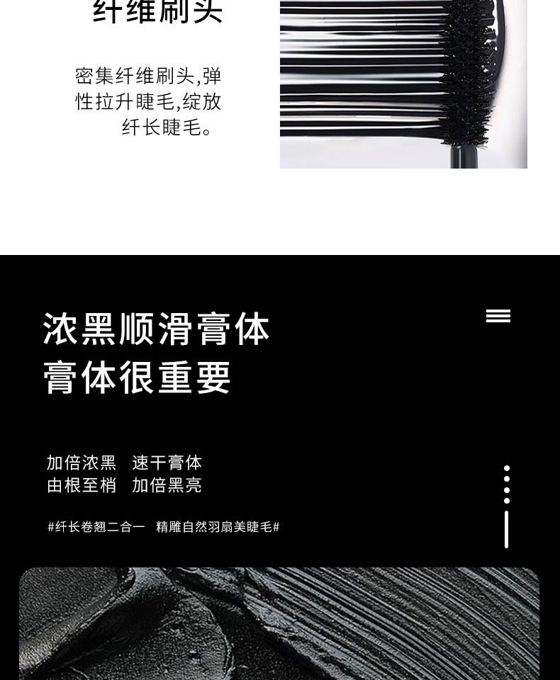睫毛膏,卷翘定型,不易坍塌,根根分明,纤长浓密,长效持妆,不易晕染,轻盈上色不负担,轻松锁定如同被睫毛夹刚刚处理过的卷曲感。