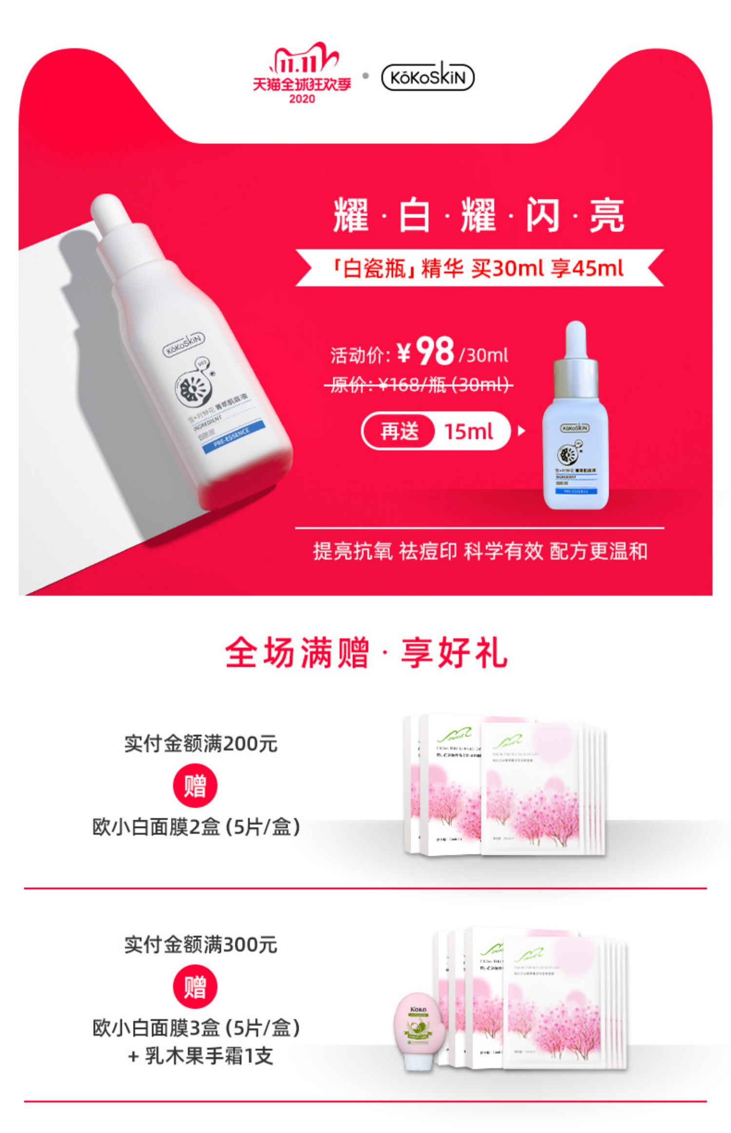 【kokoskin】白瓷瓶精华肌底液,0点开抢,限量1000件!只需18元,维持肌肤稳定状态,持续美白抗衰