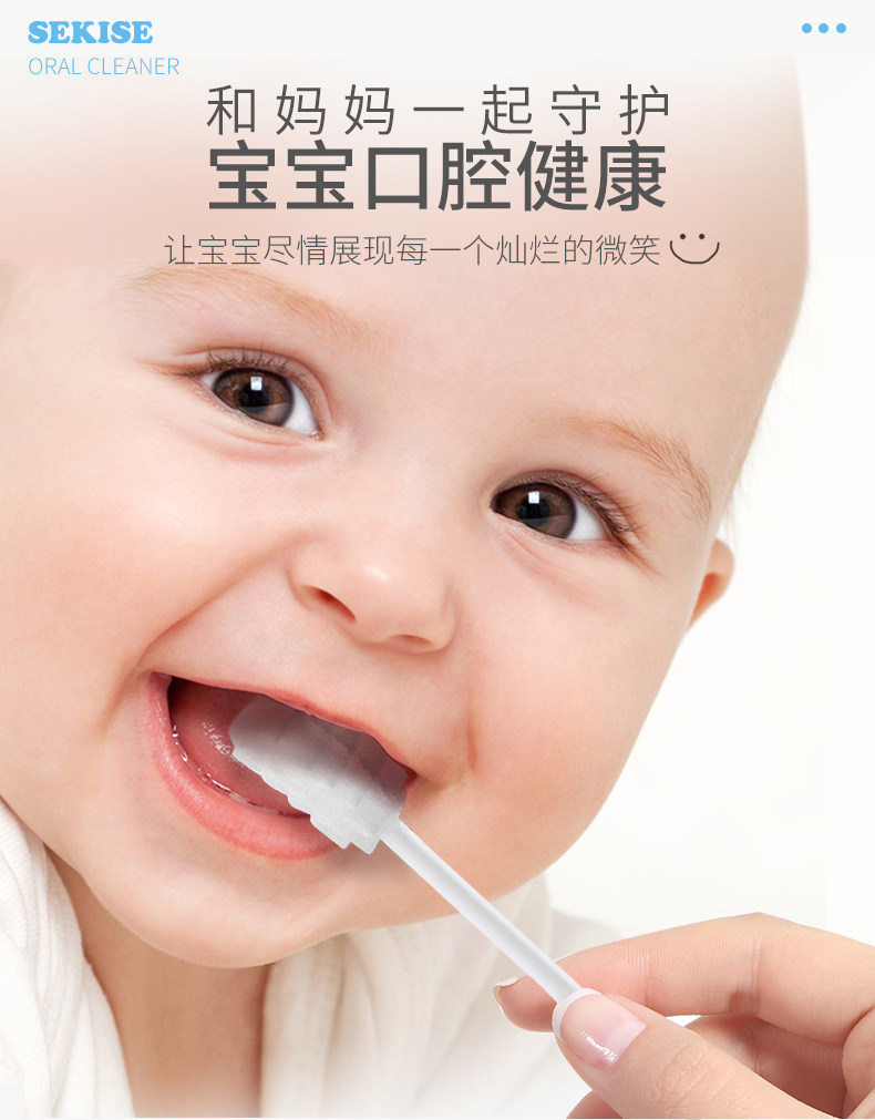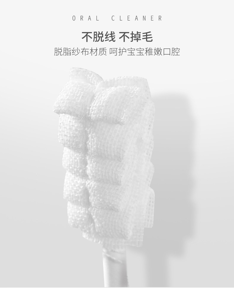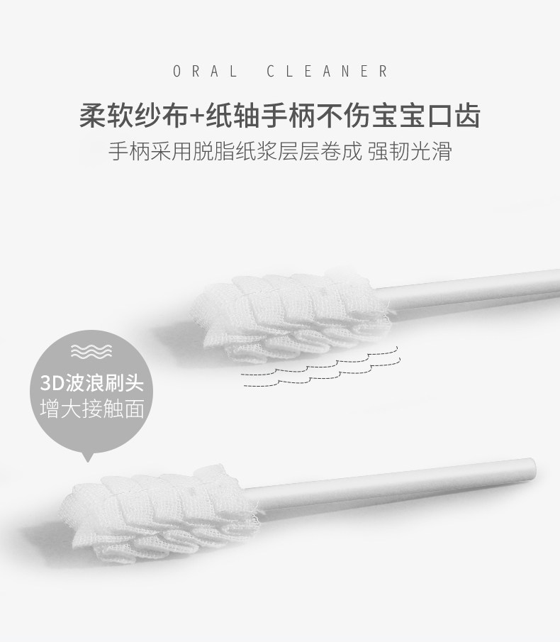 快来看看这款婴儿口腔清洁神器!心选脱脂棉纱,3D波浪刷头,不会伤到宝宝稚嫩的口腔!独立真空包装,卫生安全,宝妈快买!