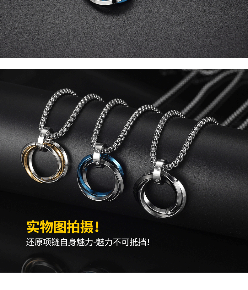 钛钢戒指项链,多环男士项链,免费个性激光刻字,不褪色不怕水,秒变潮人,蹦迪必备!