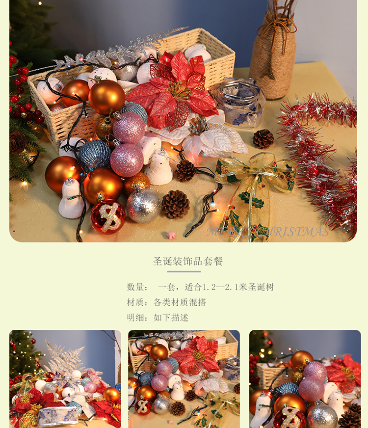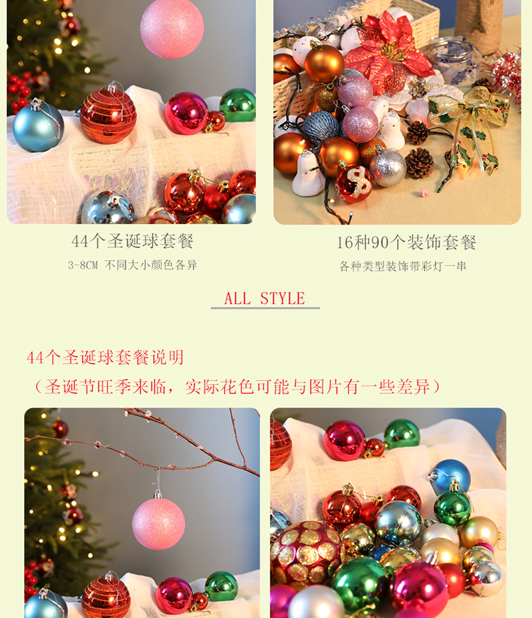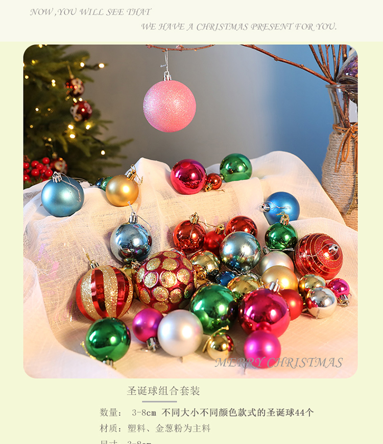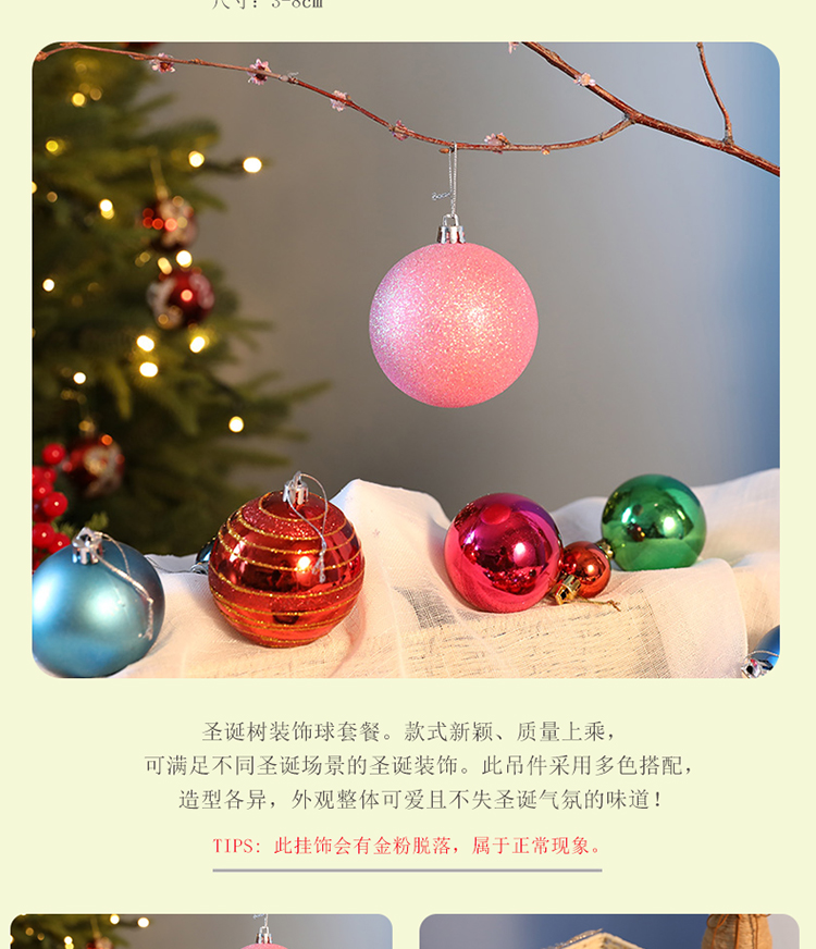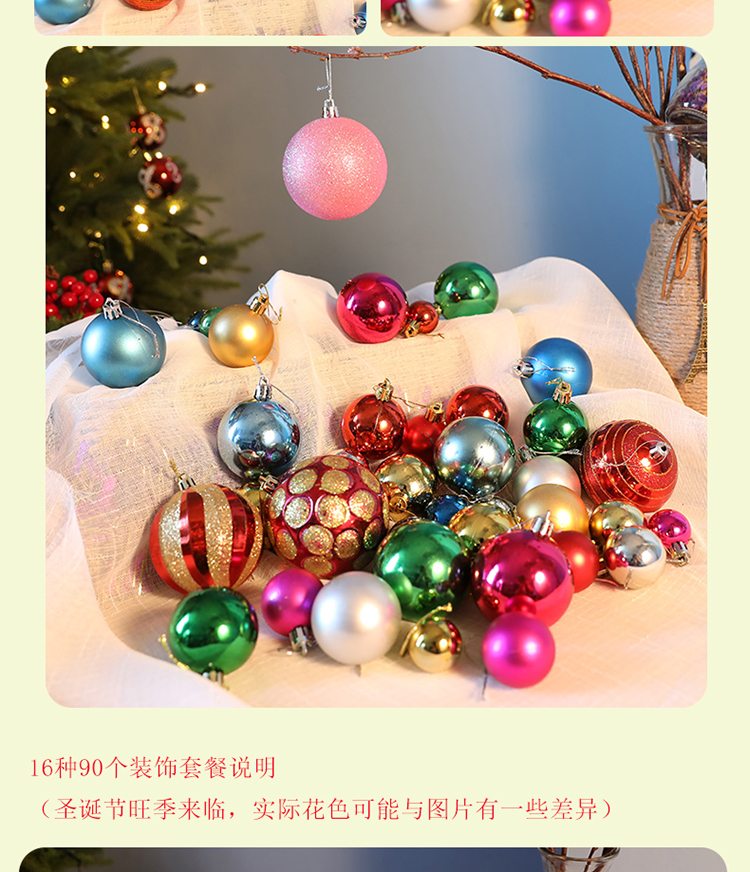 圣诞树装饰球套餐,款式新颖,质量上乘,可满足不同圣诞场景的圣诞装饰。词吊件采用多色搭配,造型各异,外观整体可爱且不失圣诞气氛的味道!【赠运费险】