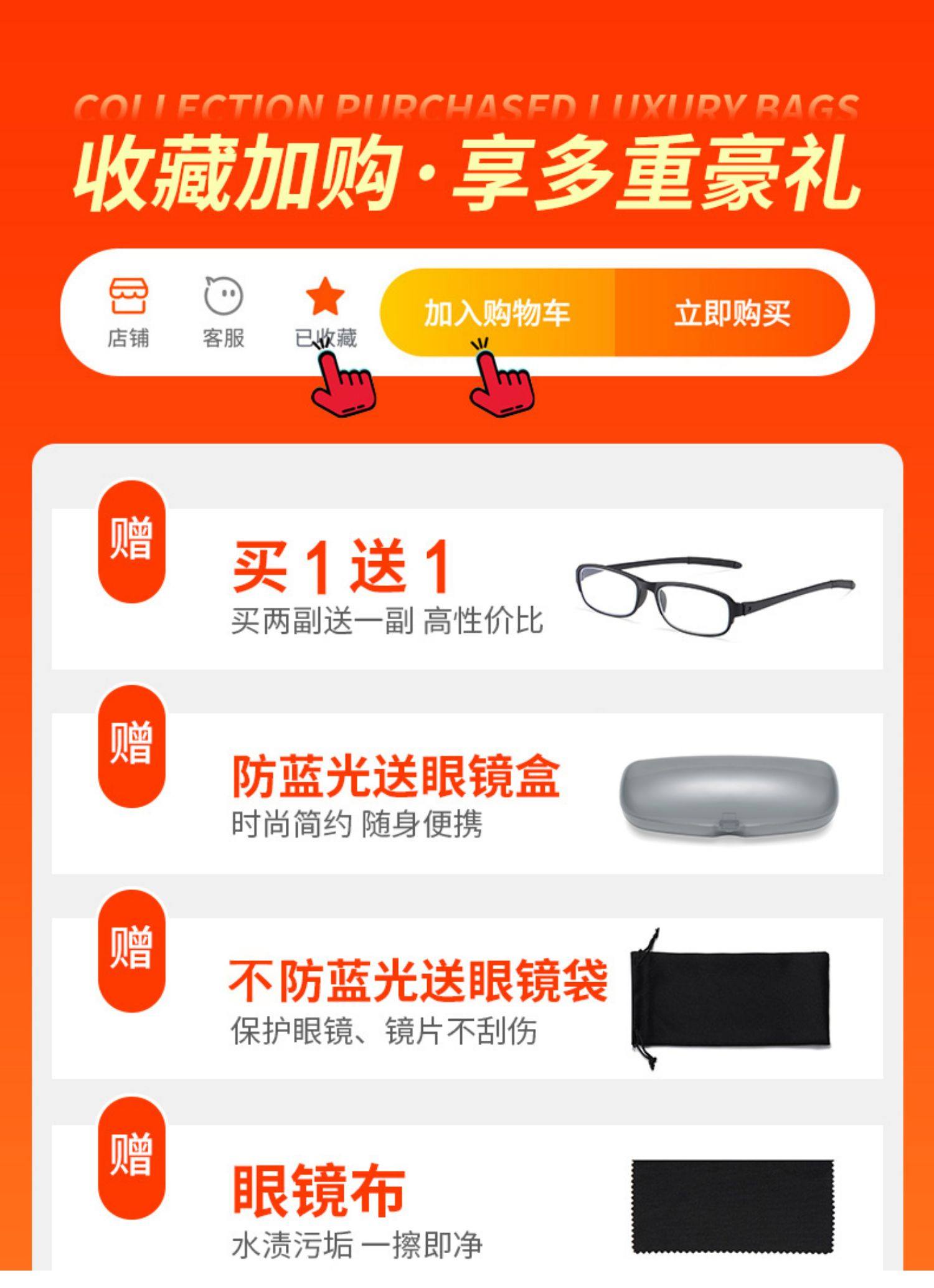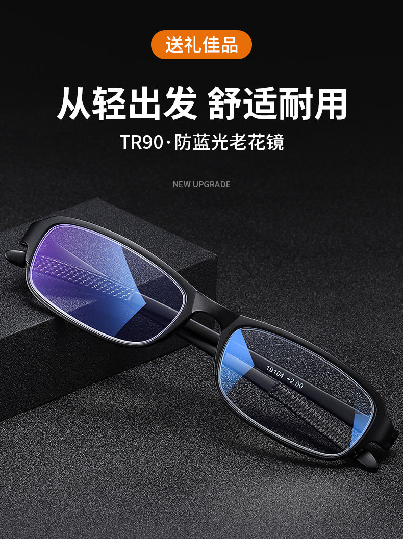 超值价!送长辈优先选择!时尚老花镜,多度数可选,防辐射,防蓝光,防紫外线,360度不弯曲,耐磨轻巧,佩戴舒适,不夹脸不压鼻,男女通用,呵护老人健康,送爸妈送长辈很贴心!