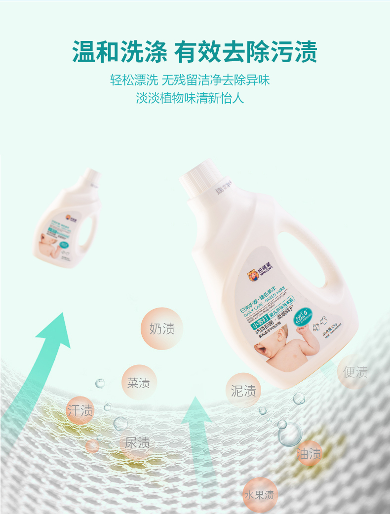 草本洗衣液,萃取草本精华,自然香型,适用于棉,麻,混纺,等质地衣物,无有害添加,不含磷,铝,色素酒精,荧光增白剂,人体有害化学成分,亲肤呵护