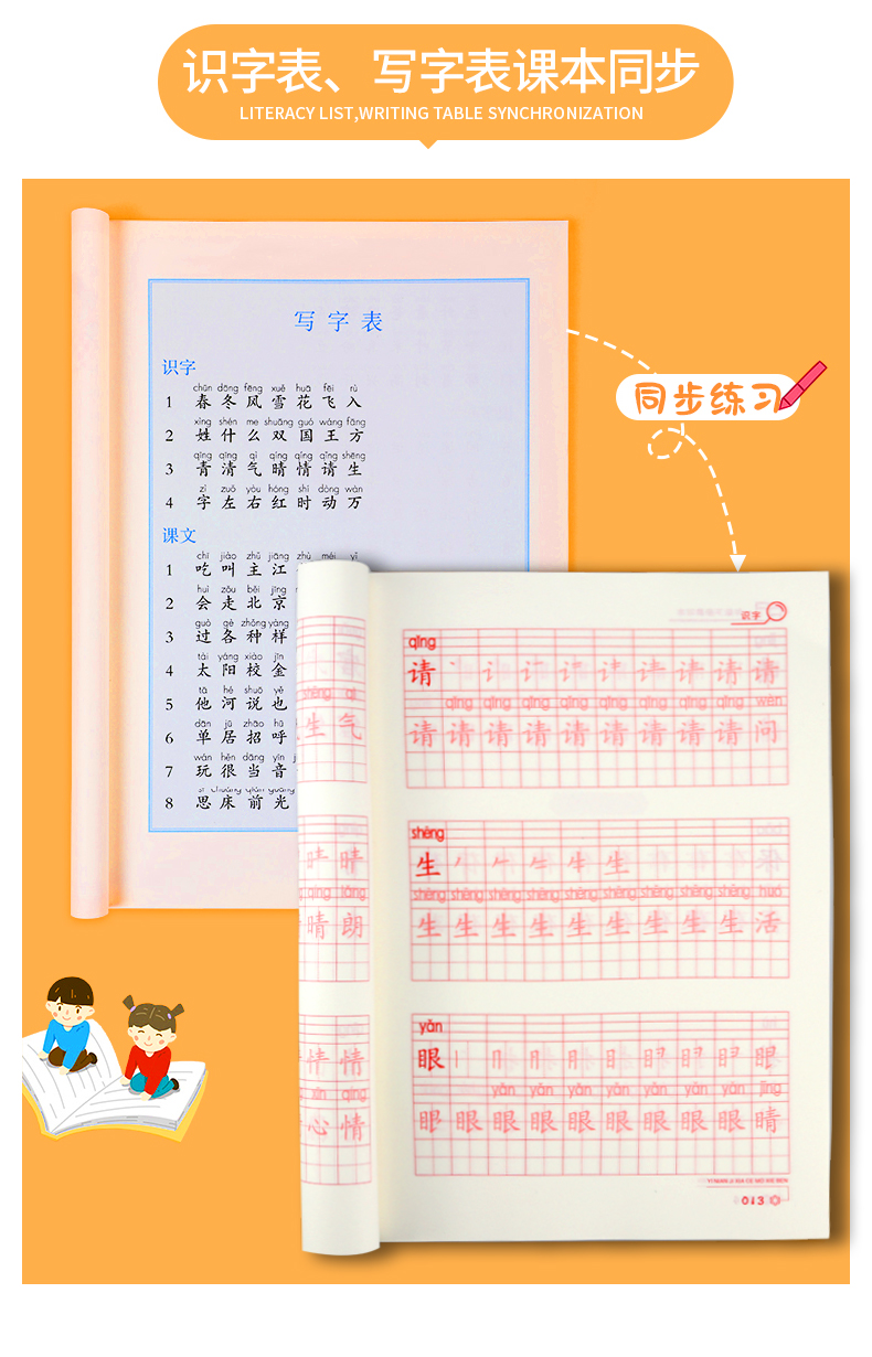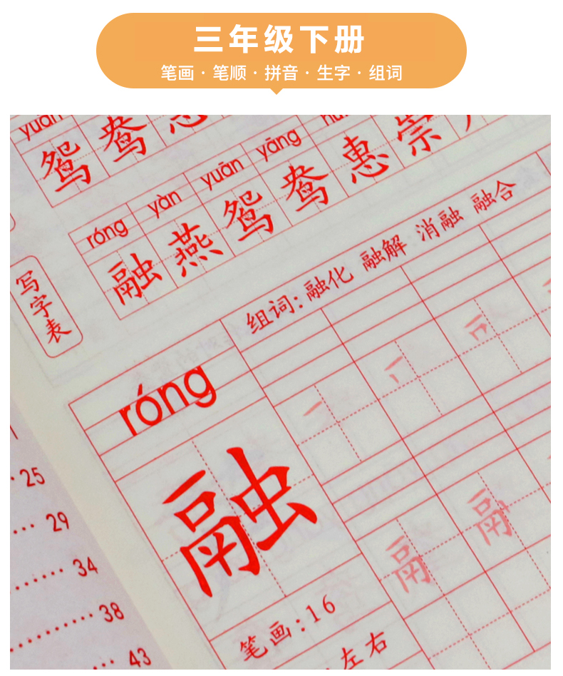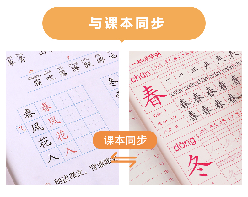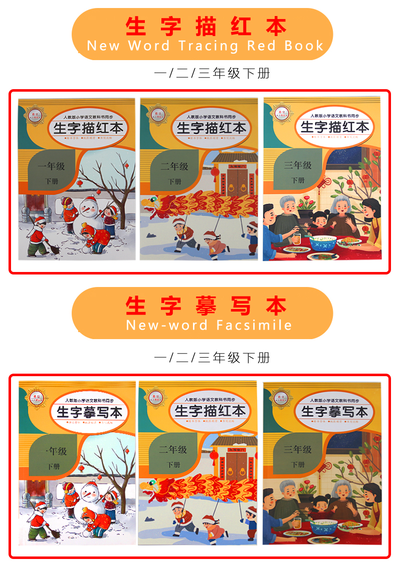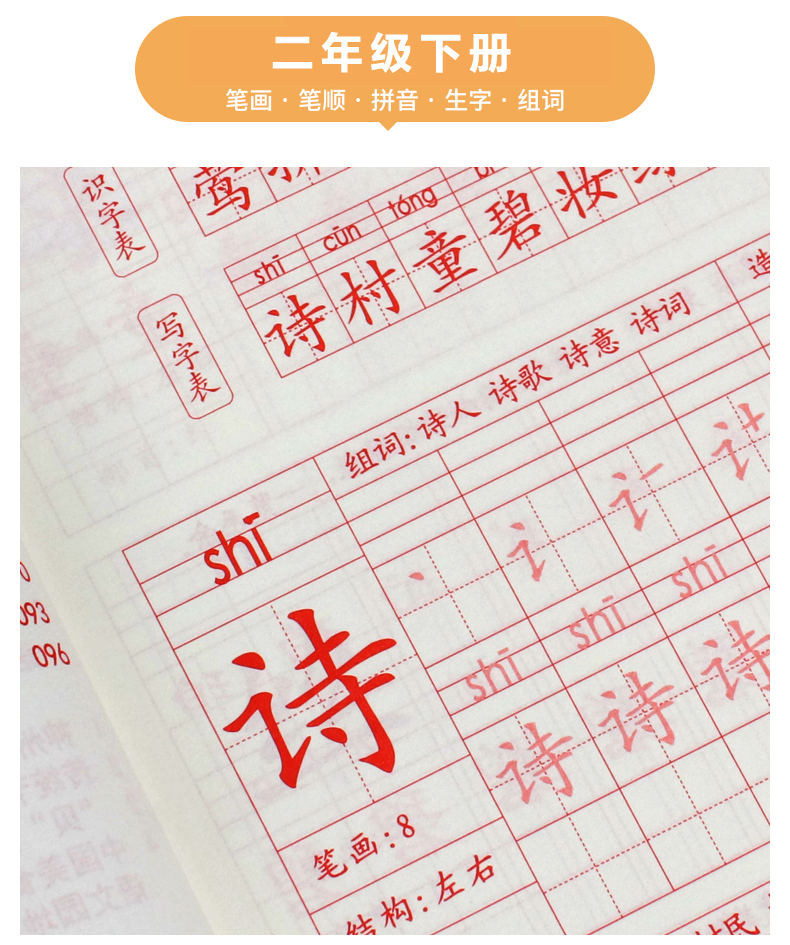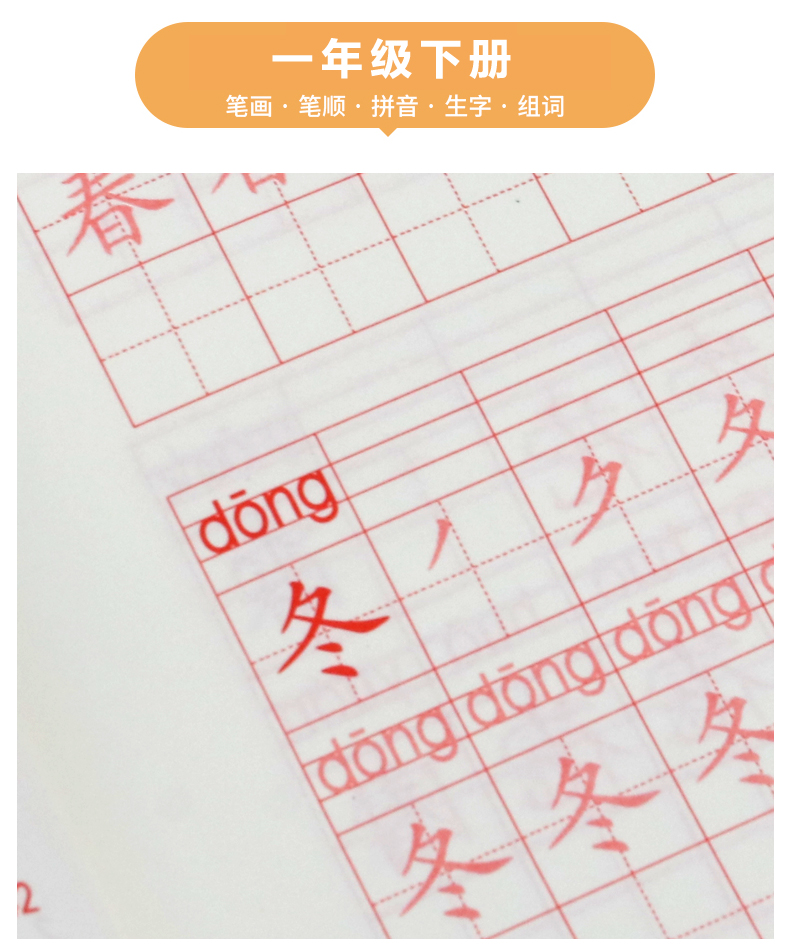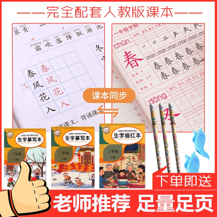 【送铅笔+握笔器】小学生一到三年级课本同步练字帖,下册描红本,纸张质量超级好,厚实无异味,字体规范,印刷字迹非常清晰!【赠