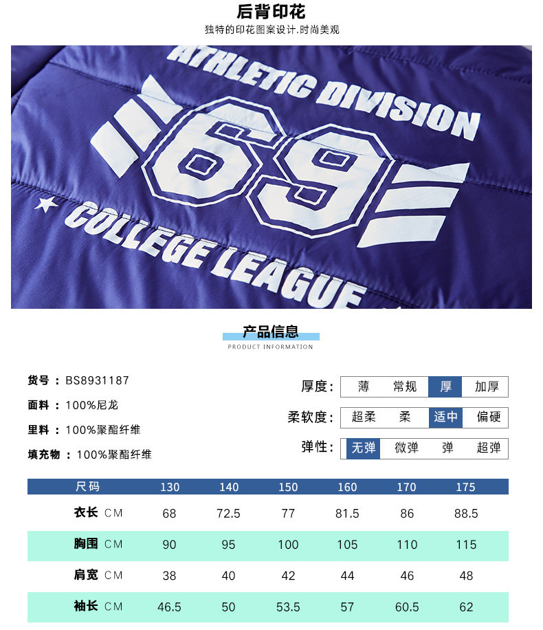 冬季男童中大童棉服外套,加厚保暖阻挡外部冷气,连帽双层面料,厚实感强,内含高活性填充棉,棉朵大,高蓬松,无异味无杂质【赠运费险
