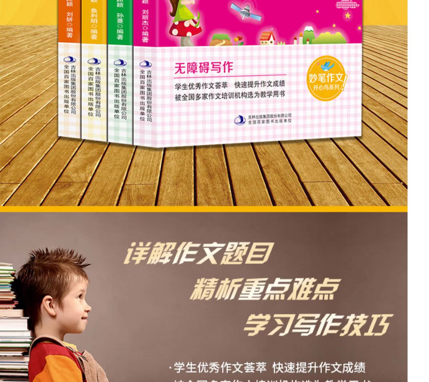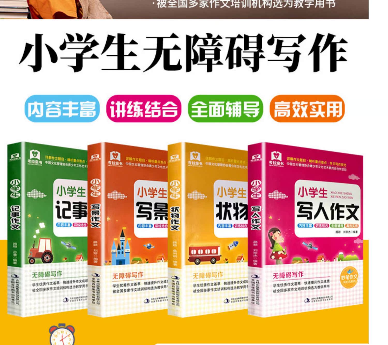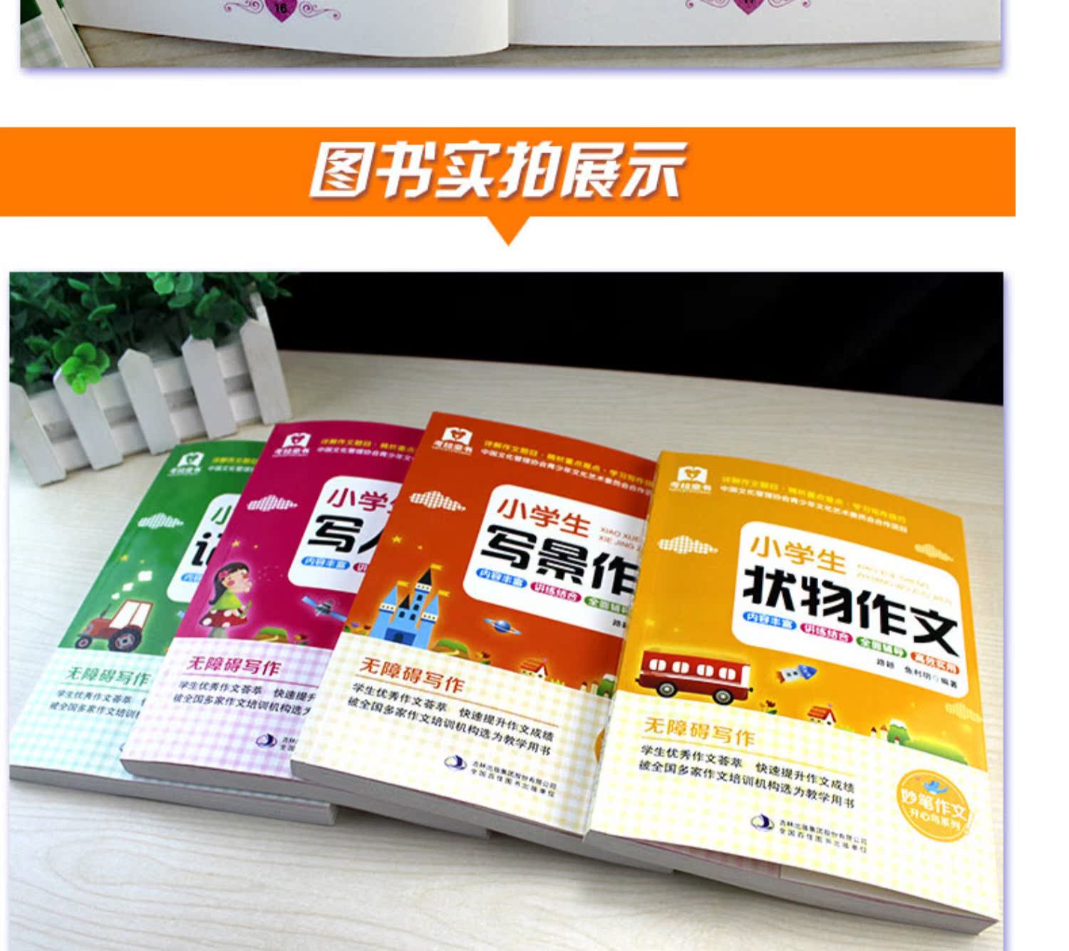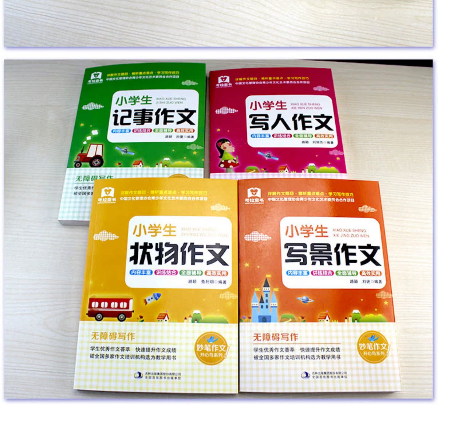 小学生状物、写景、写人、记事作文指导书,满分作文必备全4册,16开大版本印刷,加厚正版。内容全面,强化写作技能,名师点评,讲练结合全面辅导,快速提高写作水平,儿童必备黄冈作文大全。
