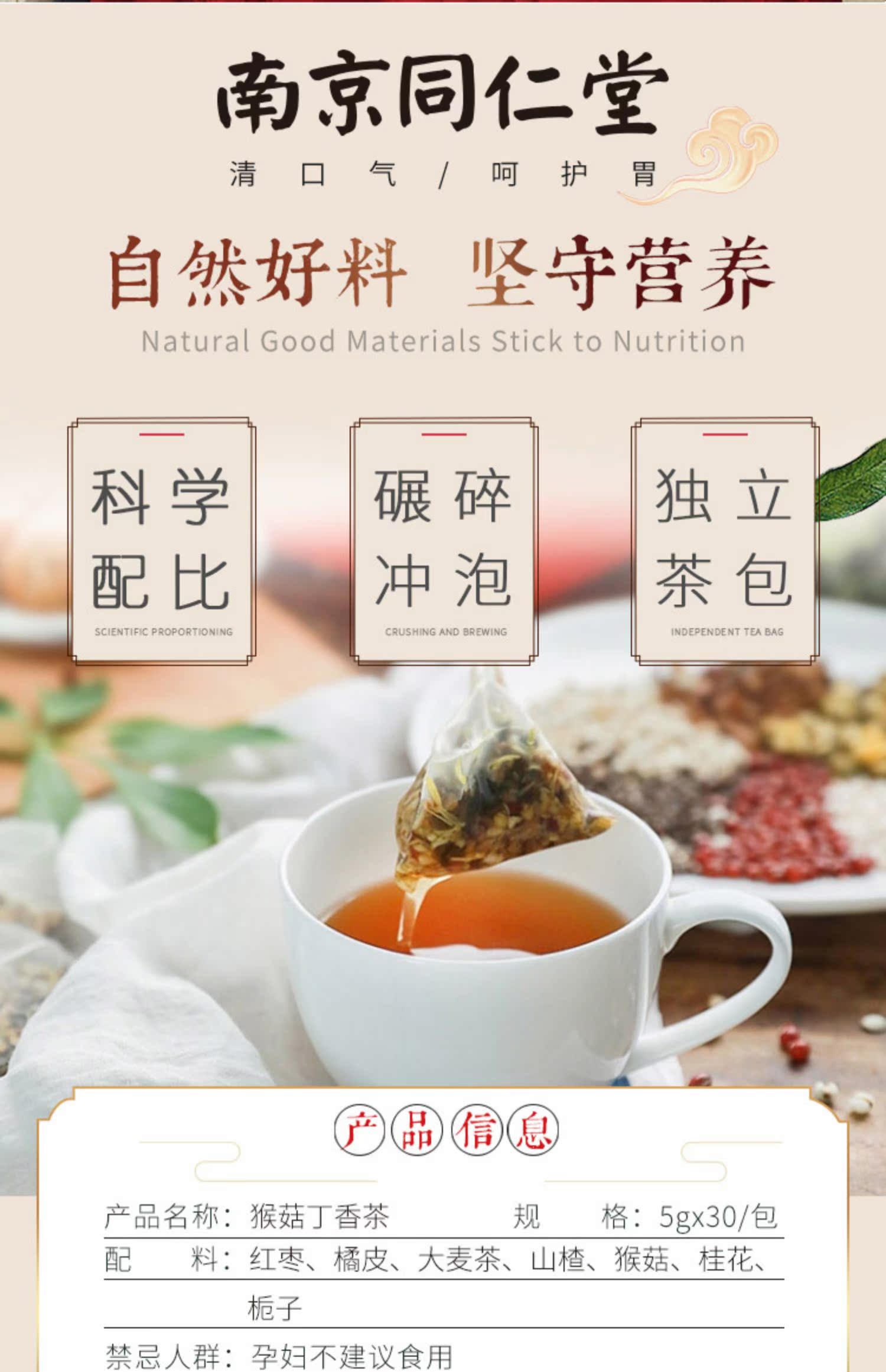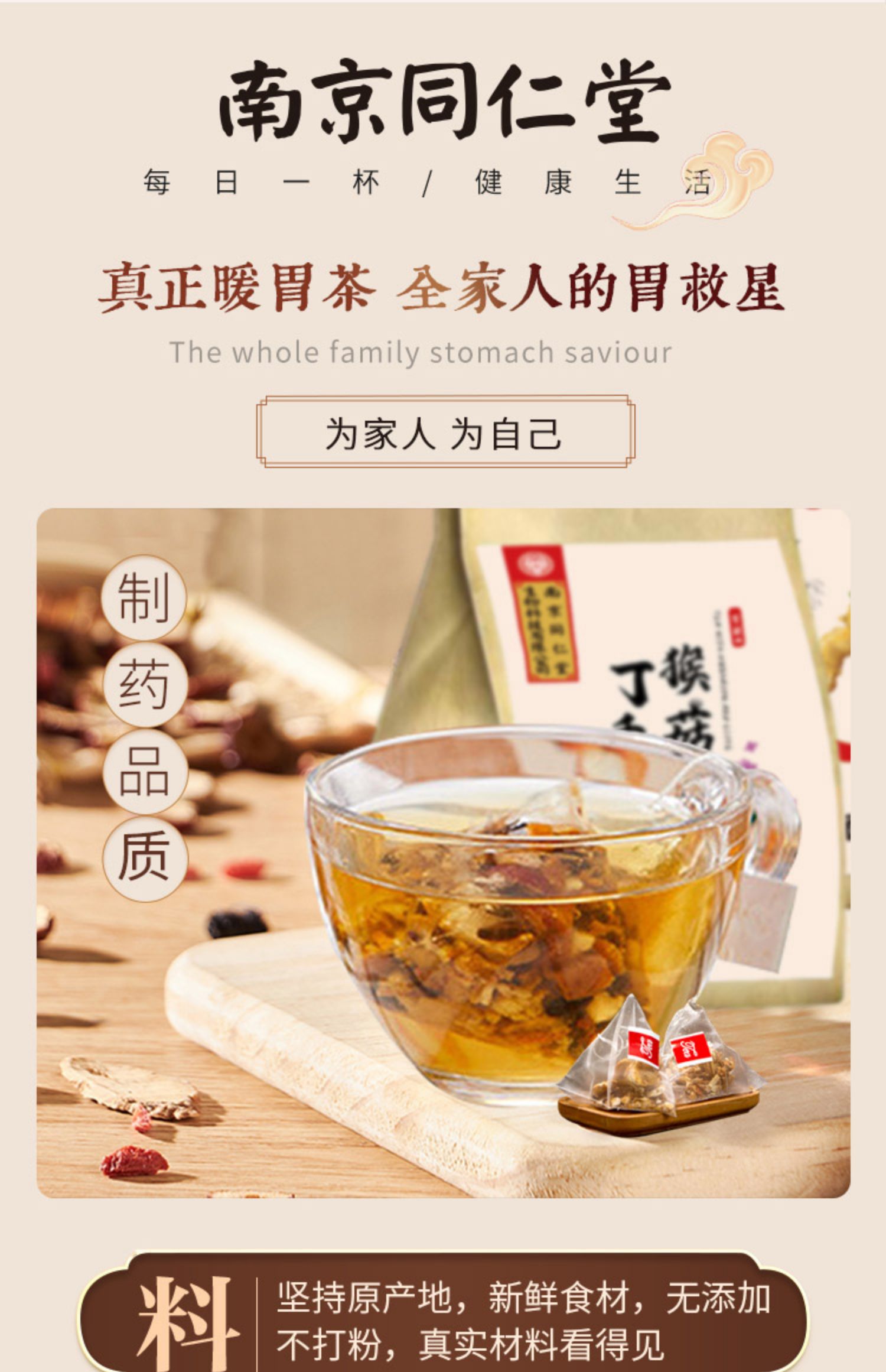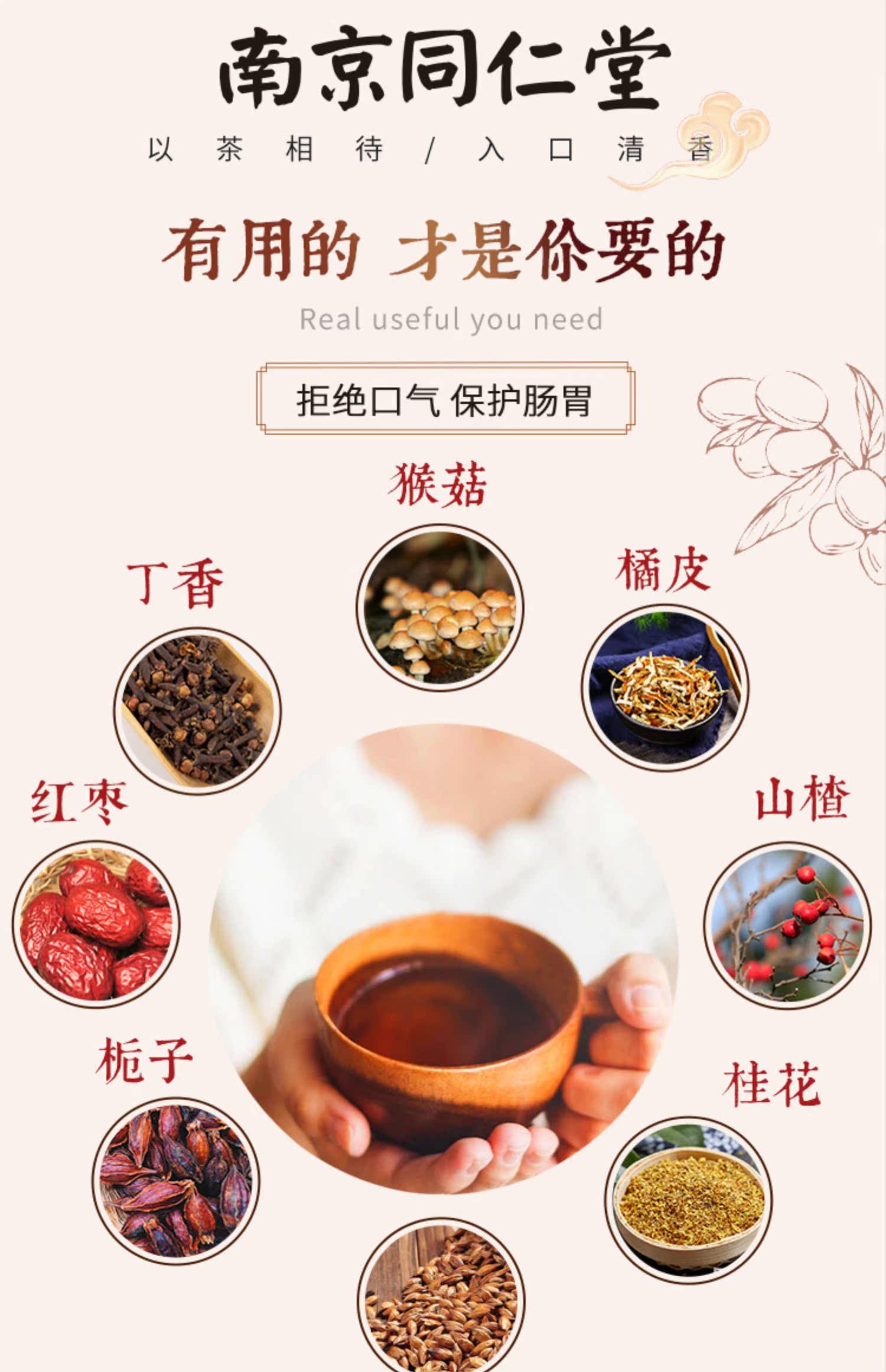 同仁堂养胃猴菇丁香茶,精心配比,健康好喝,甄选八钟食材,菇中的精精品,因胃有你,口气清新,你值得拥有!