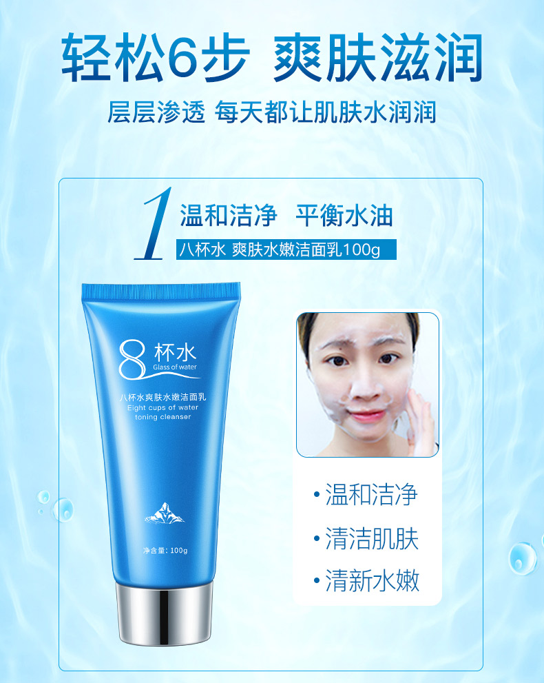 【八杯水6件套装】官方正品八杯水6件套礼盒装,超级补水,修护肌底,唤醒肌肤源源水动力,美白肌肤,水润透白,无暇美肌~彻底解决皮肤干燥,改善肌肤~【赠运费险】