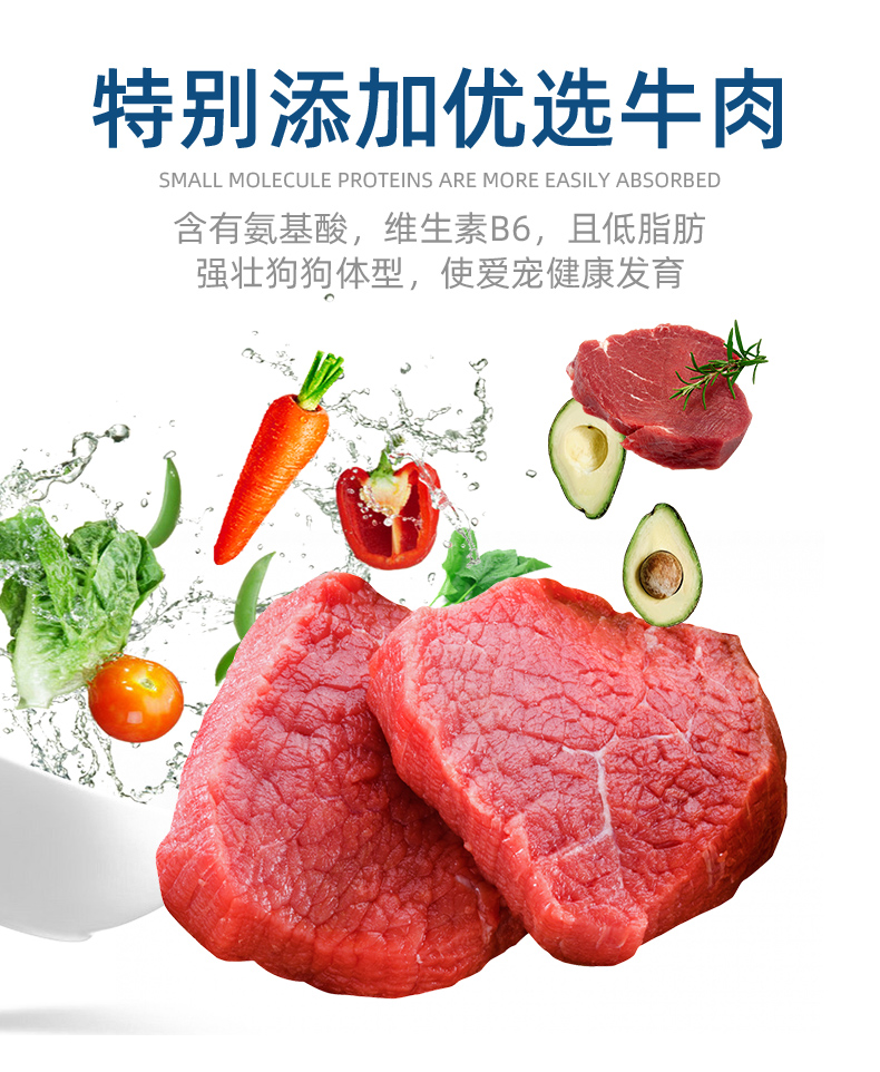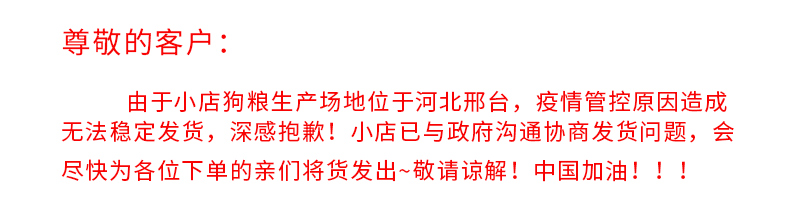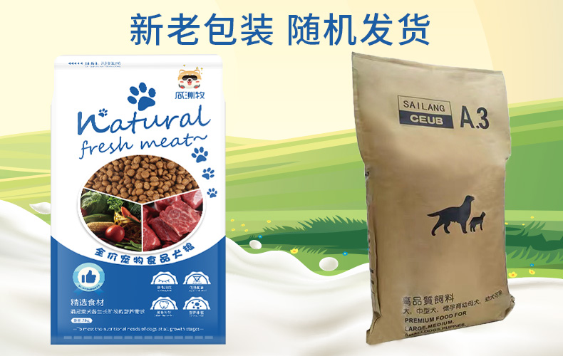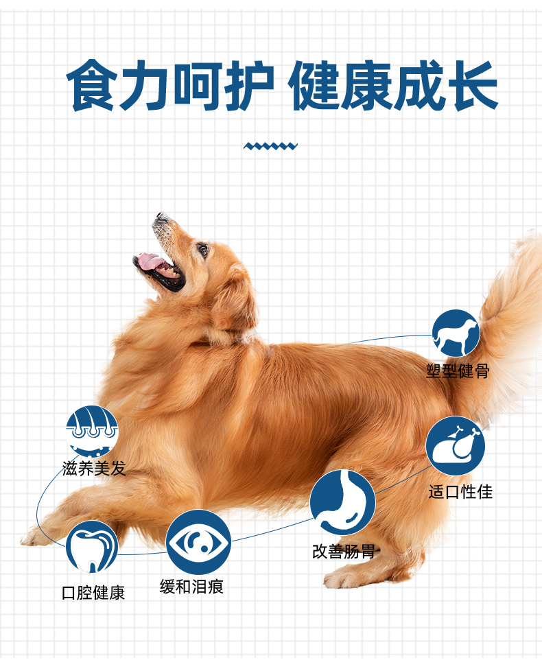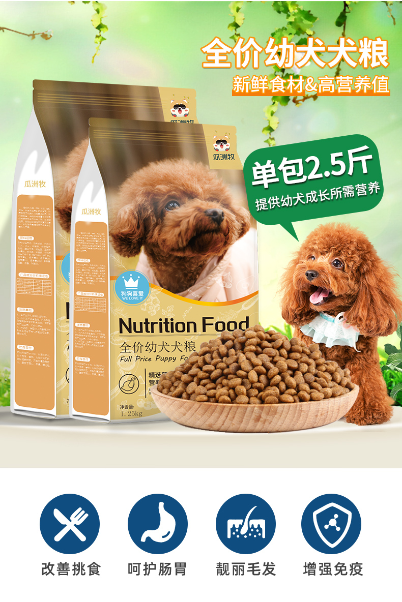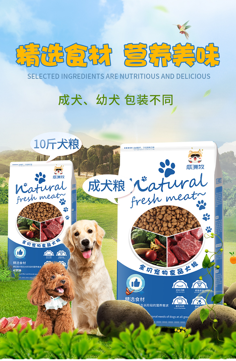 天然优质食粮,高蛋低脂,营养丰富,易消化,呵护肠胃,美毛健体,让狗狗健康成长~