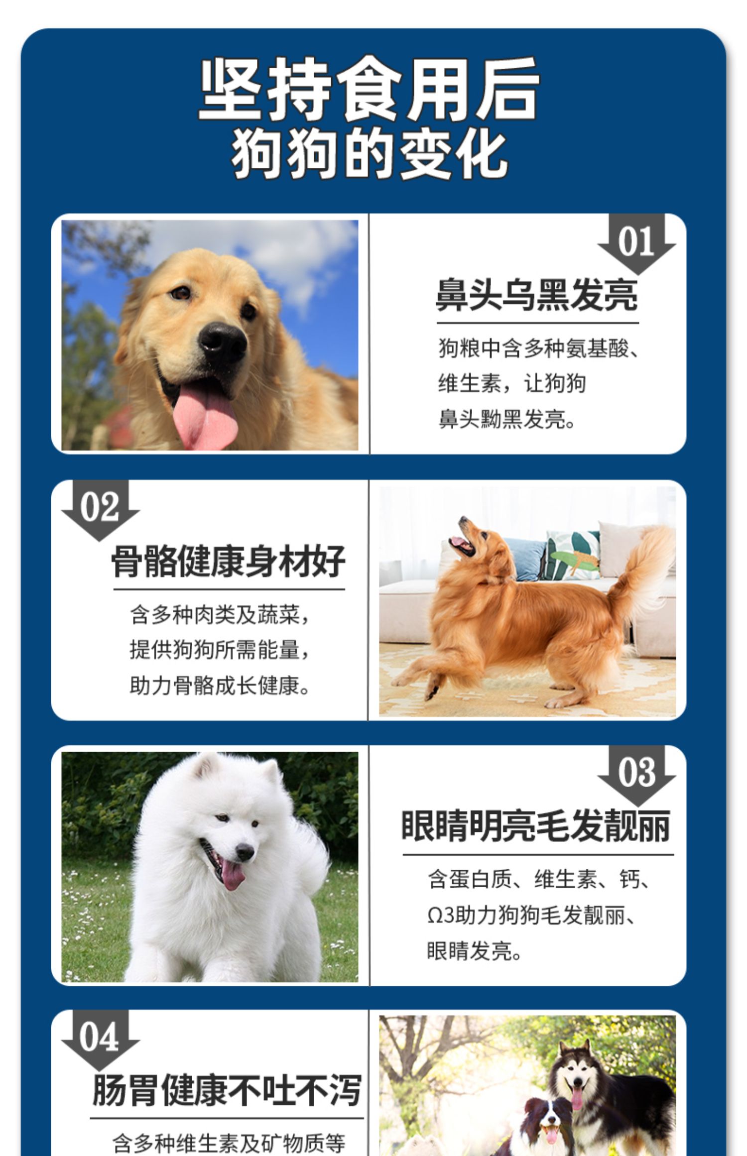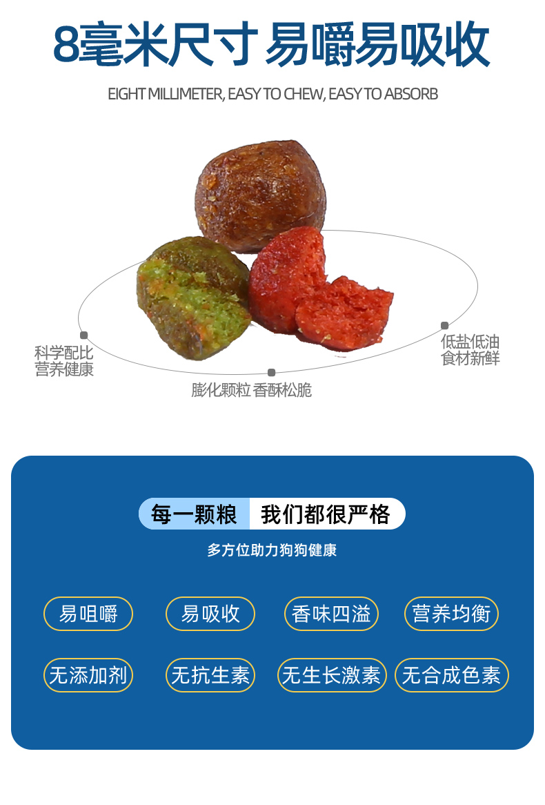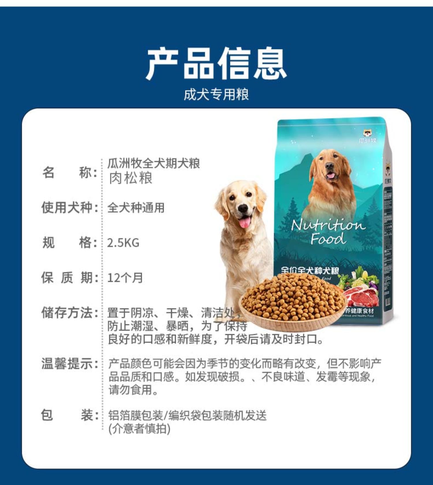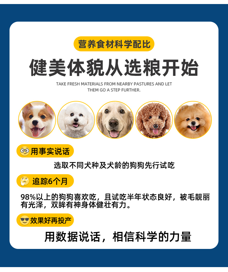 天然优质食粮,高蛋低脂,营养丰富,易消化,呵护肠胃,美毛健体,让狗狗健康成长~