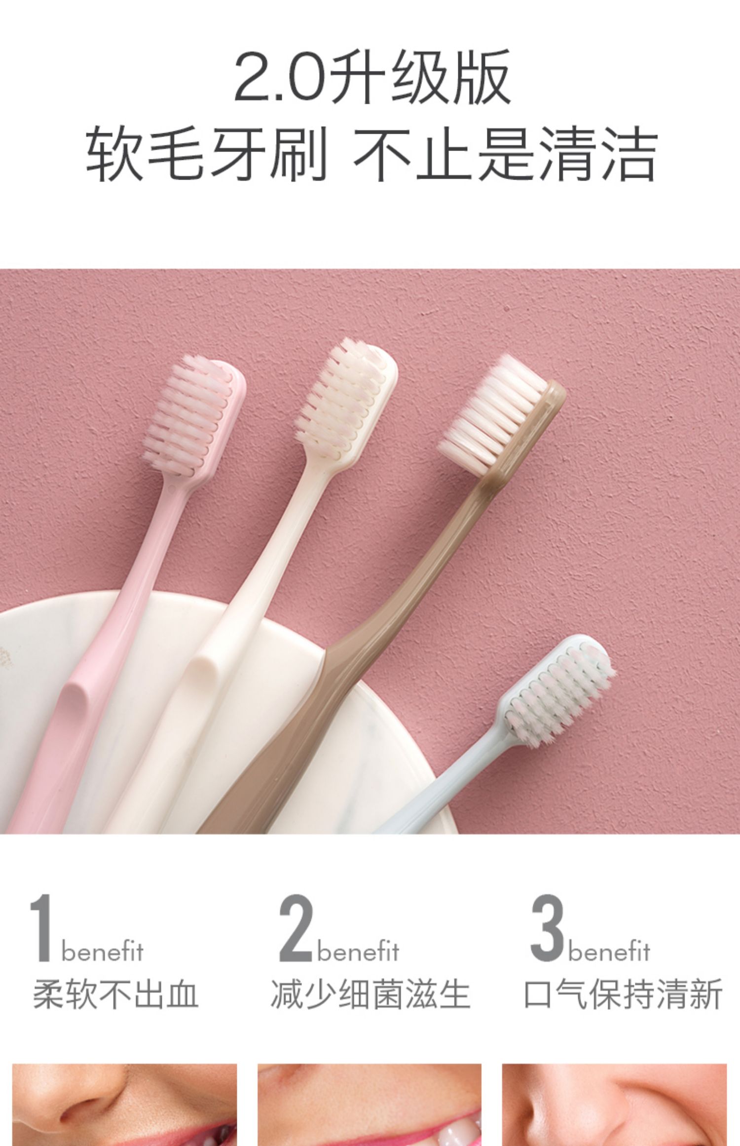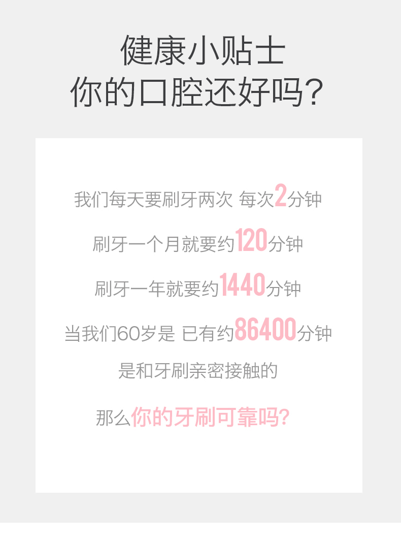 爱上刷牙,爱上有颜值的牙刷!细丝毛刷+灵巧刷头,360°清洁口腔,不伤牙龈。白毛软毛+小巧刷头,深入清洁齿缝,高效去渍,带牙刷刷头保护套,有效防尘,用起来更放心!