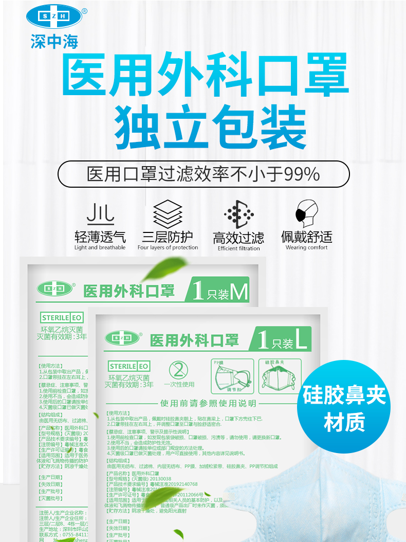 【赠运费险】远离病菌疫情,出门一定要做好防护!医用外科口罩,三层防护,轻薄透气,有效过滤灰层,病菌等,食品级硅胶材质鼻夹,3D裁设,佩戴舒适,无毒无害,保护全家人的健康!