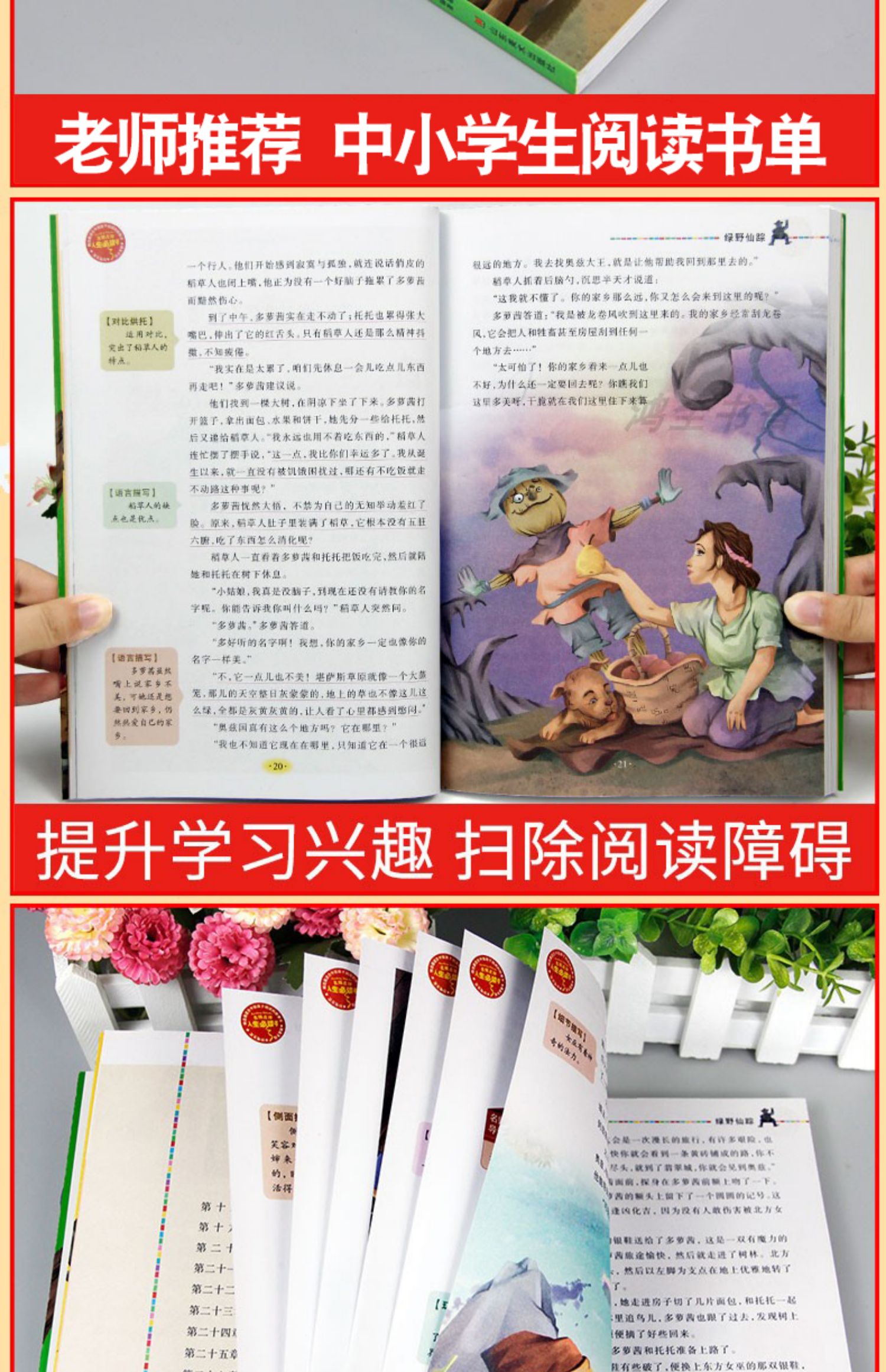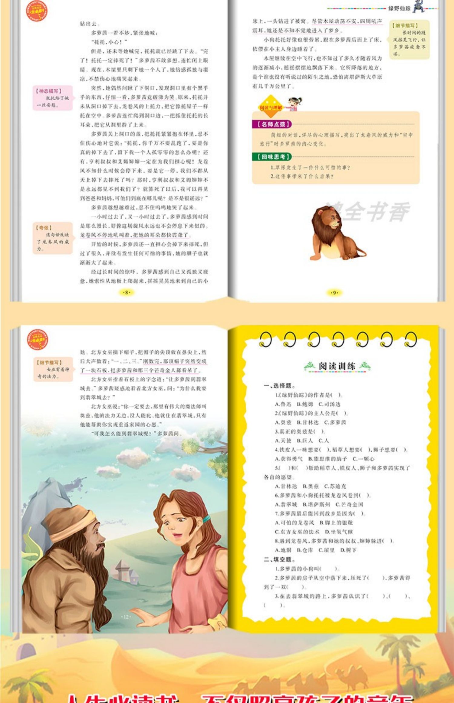 【绿野仙踪】老师推荐随书附带真题考点+读后感,彩印护眼保护视力,大豆油墨无异味,页面合理编排,便于阅读与理解,实物一比一展示,安心带回家。