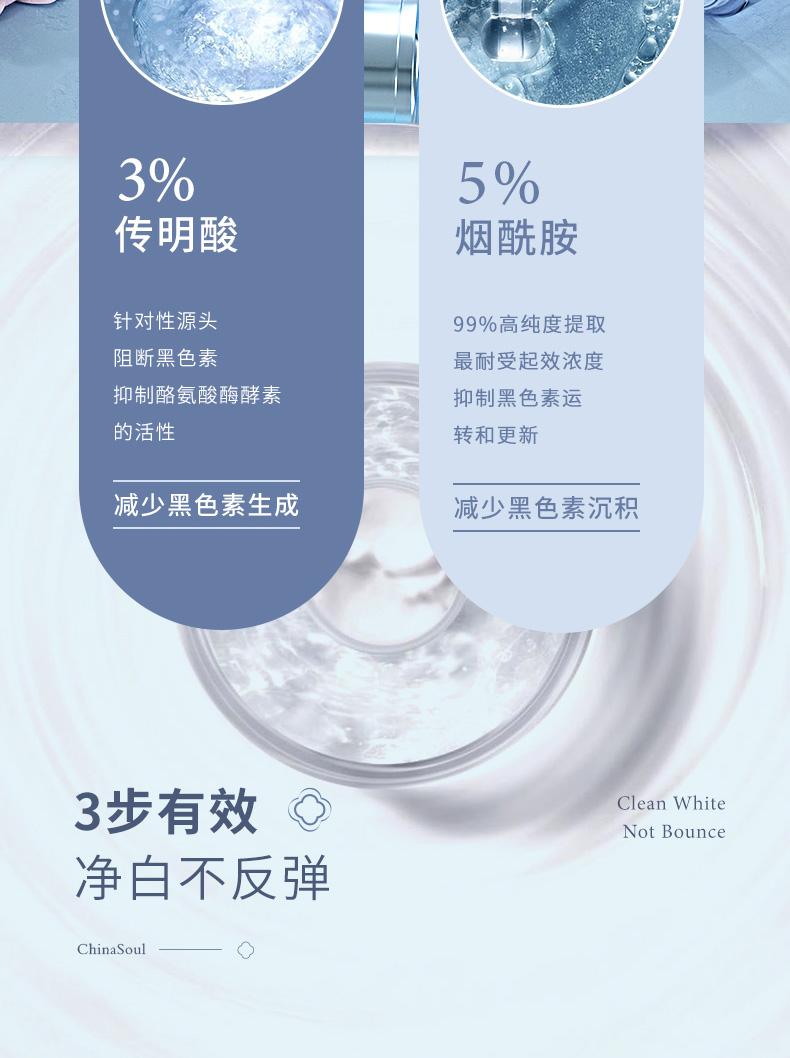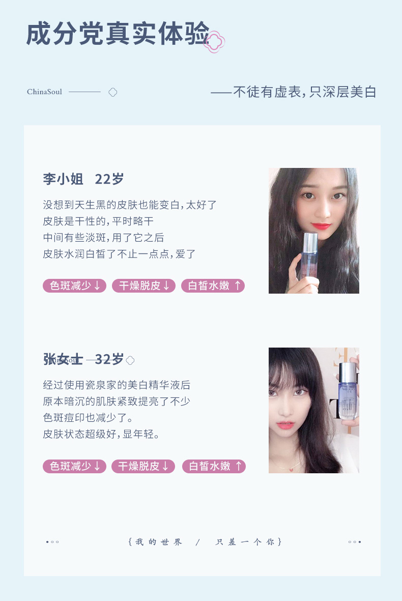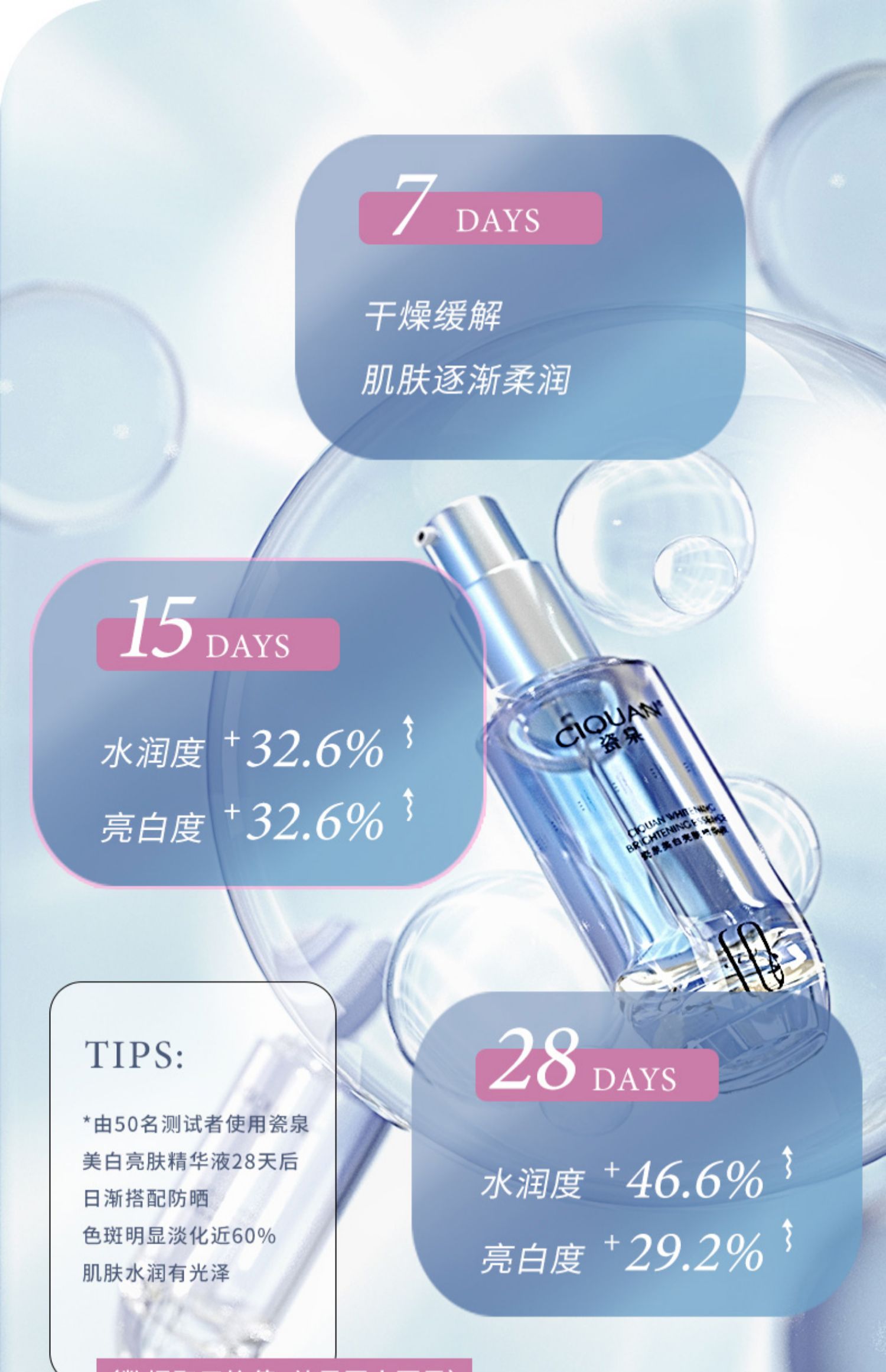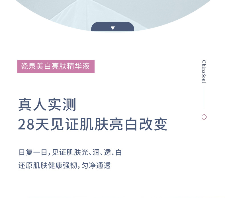 科学配比美白精华烟酰胺,美白又滋润,舒缓细纹,去红血丝,呵护敏感肌,每天坚持使用,肉眼可见皮肤变得水润紧致!