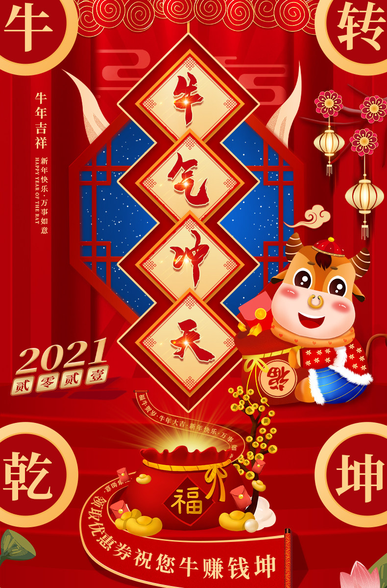牛年春节福字窗花新年喜庆贴纸装饰