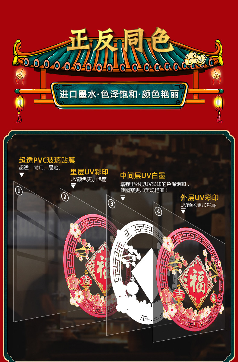 【多款可选】春节家家户户都需要的好东西~福字窗花贴纸,静电粘贴,颜色鲜艳,自行搭配,新年来啦,装扮的美美哒,营造元旦新年的氛围吧!【赠运费险】