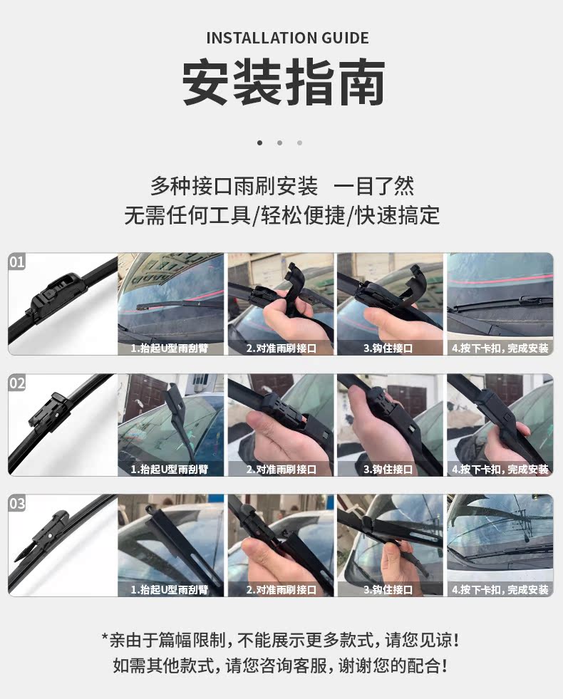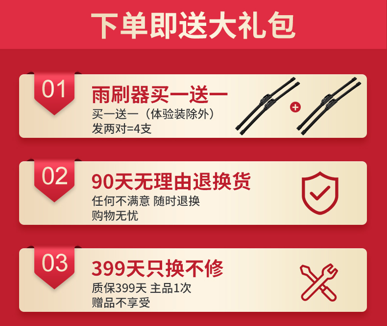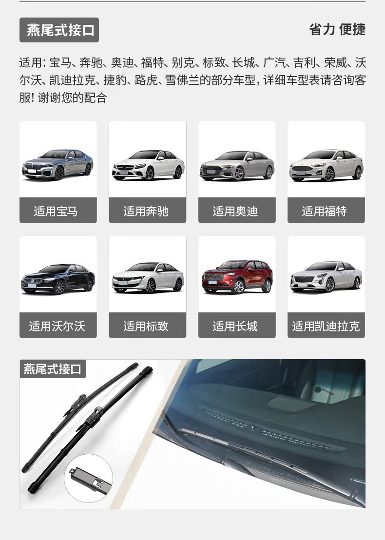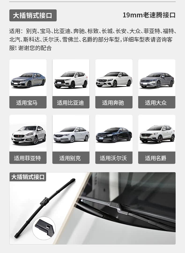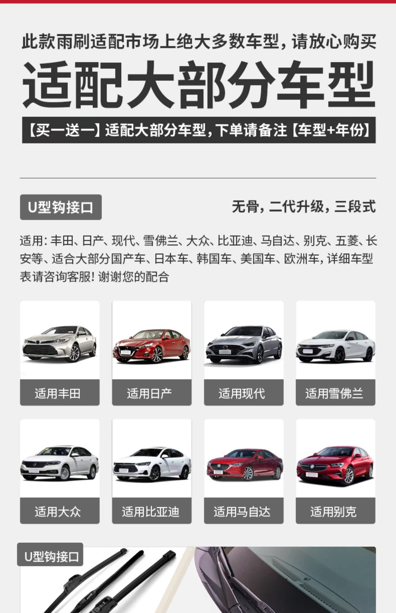 【买一送一】汽车前雨刷,无骨通用型雨刮器,胶条新款刮片,原厂原装接口后雨挂器【退货运费险】