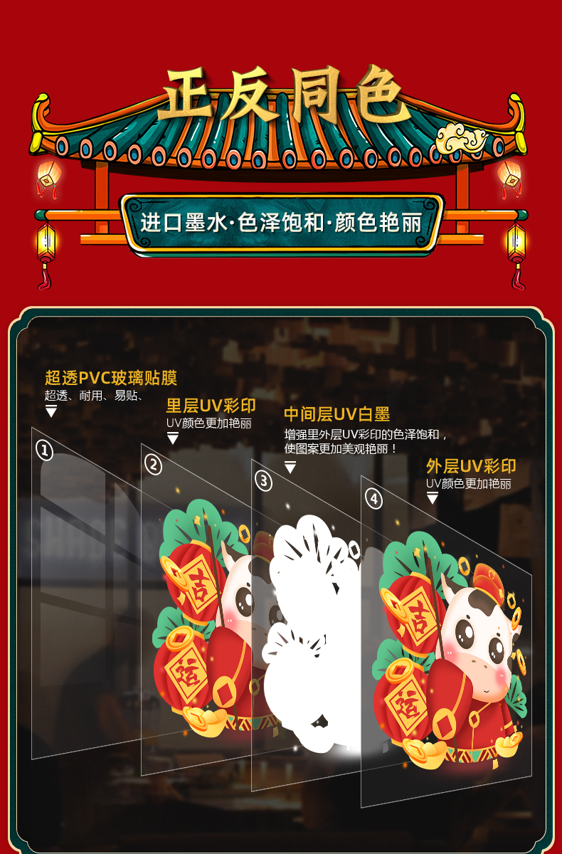 【多款可选可定制】春节家家户户都需要的好东西~牛年窗花贴纸,静电无胶,可重复使用不留痕迹,颜色鲜艳,自行搭配,新年来啦,装扮的美美哒,营造元旦新年的氛围吧!【赠运费险】
