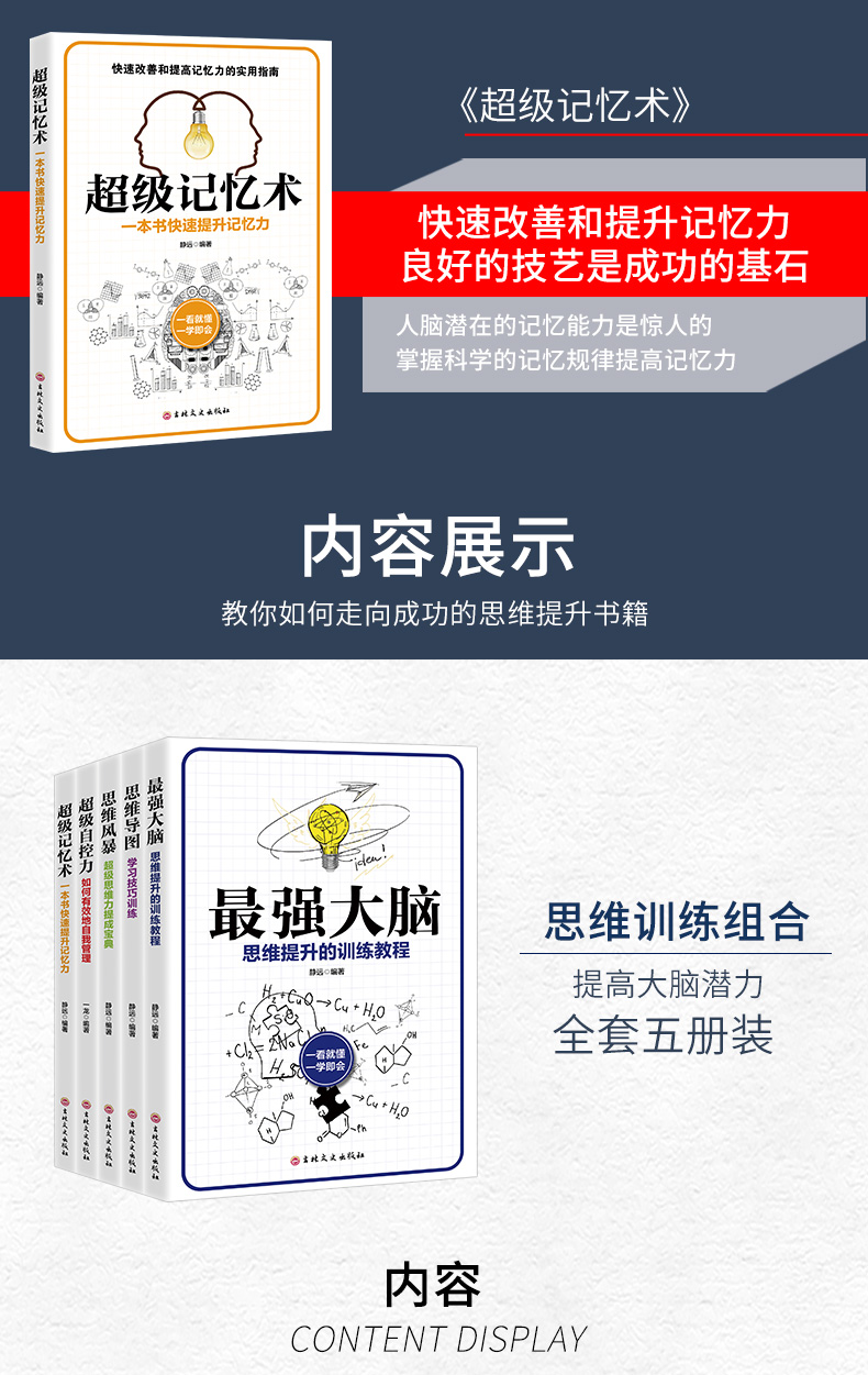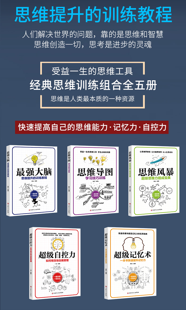 21世纪风靡全球的革命性思维工具,思维导图入门书,超级记忆术,最强大脑全5册。大版本印刷,超厚一摞,改变人类思维习惯,中小学生提升学习成绩,增强记忆力,上班族提高工作效率,走向成功必备。
