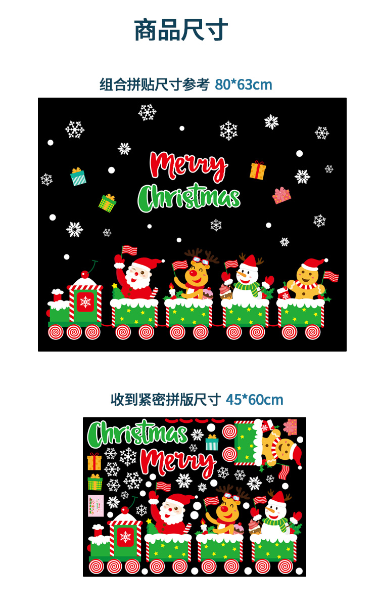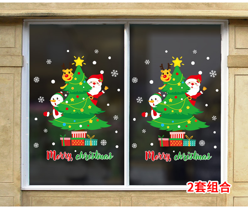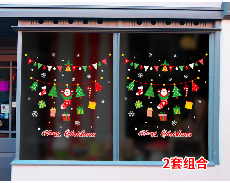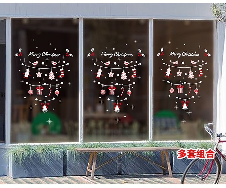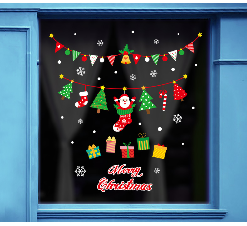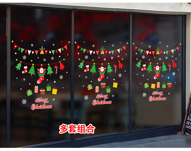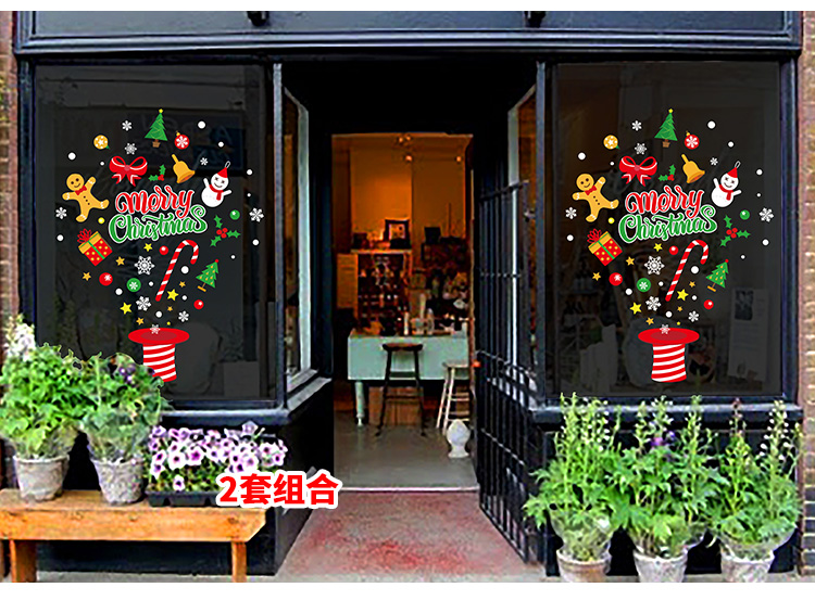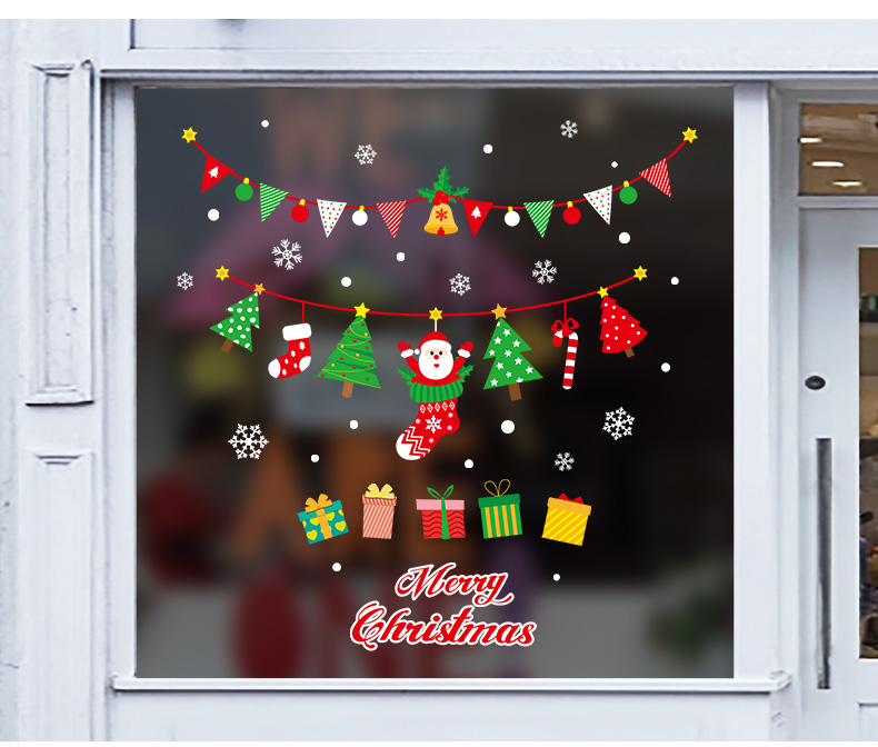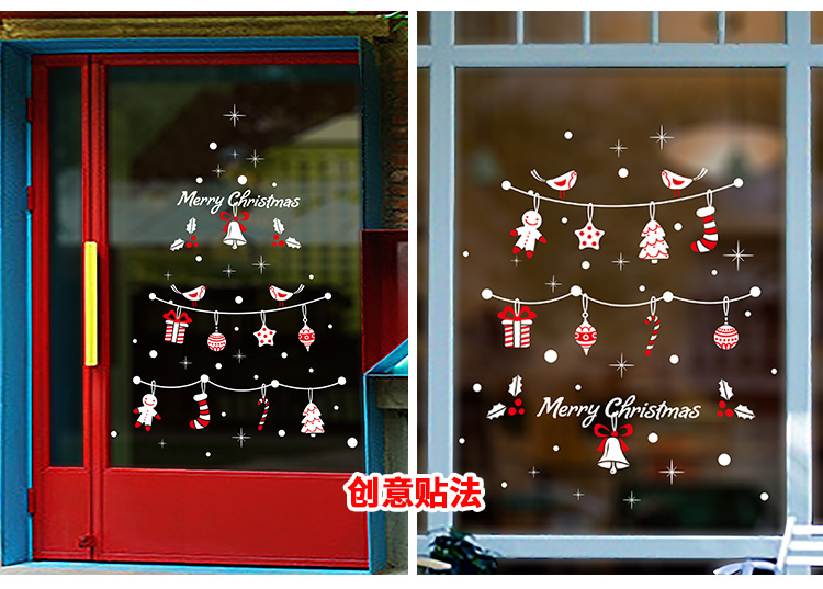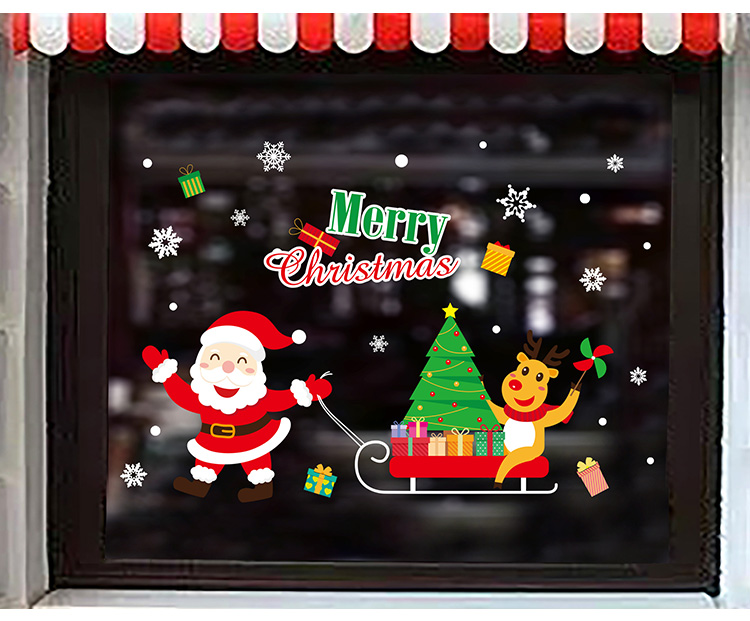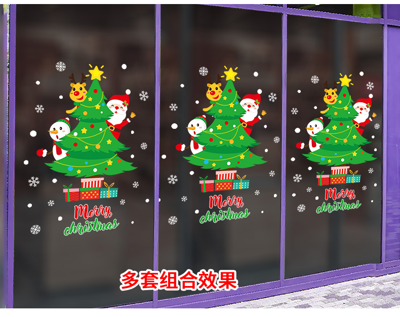 圣诞橱窗贴纸,色泽鲜艳饱满,正反面同色,多款可选,搭配各种场景,效果唯美温馨!