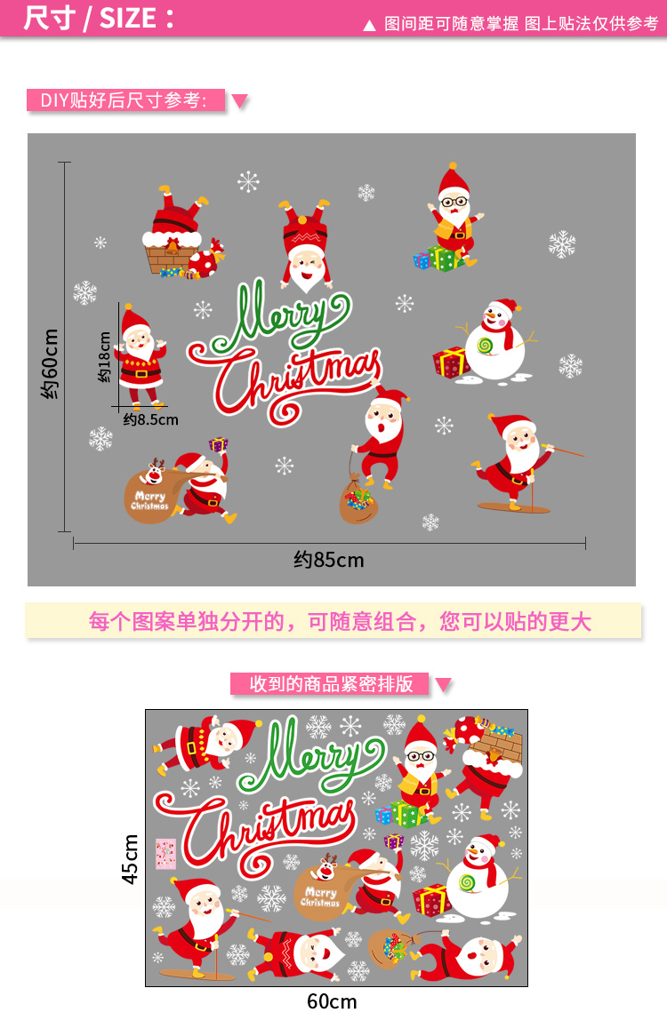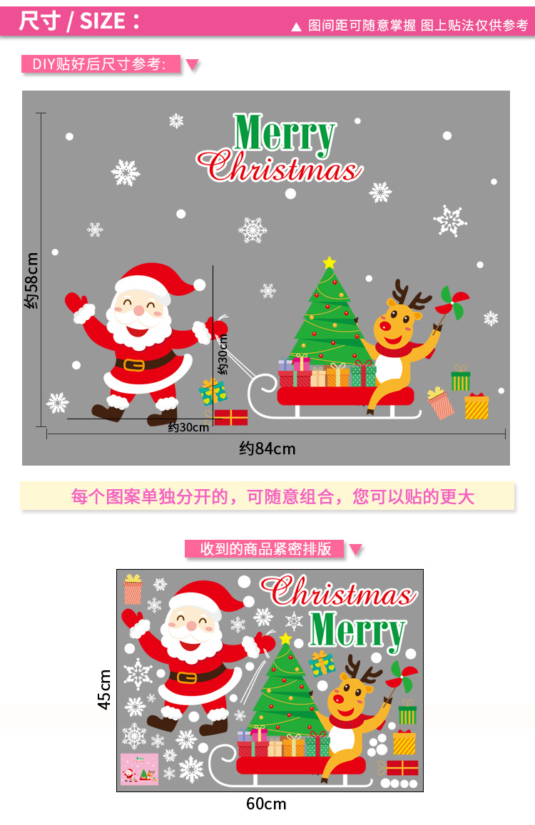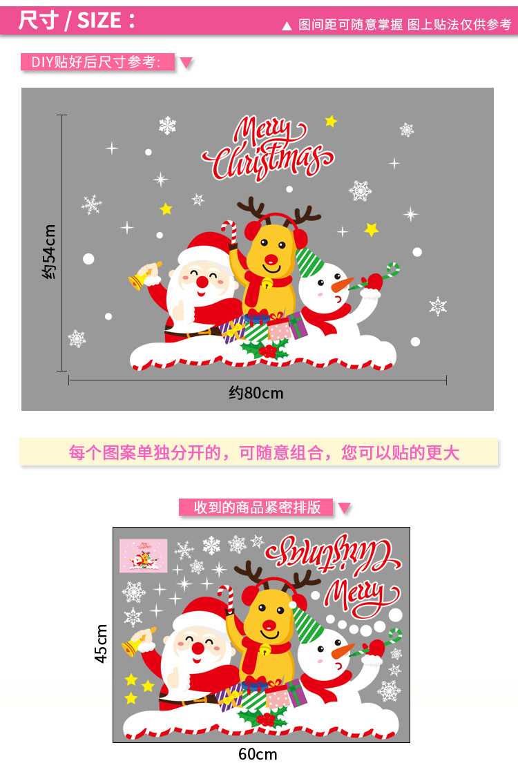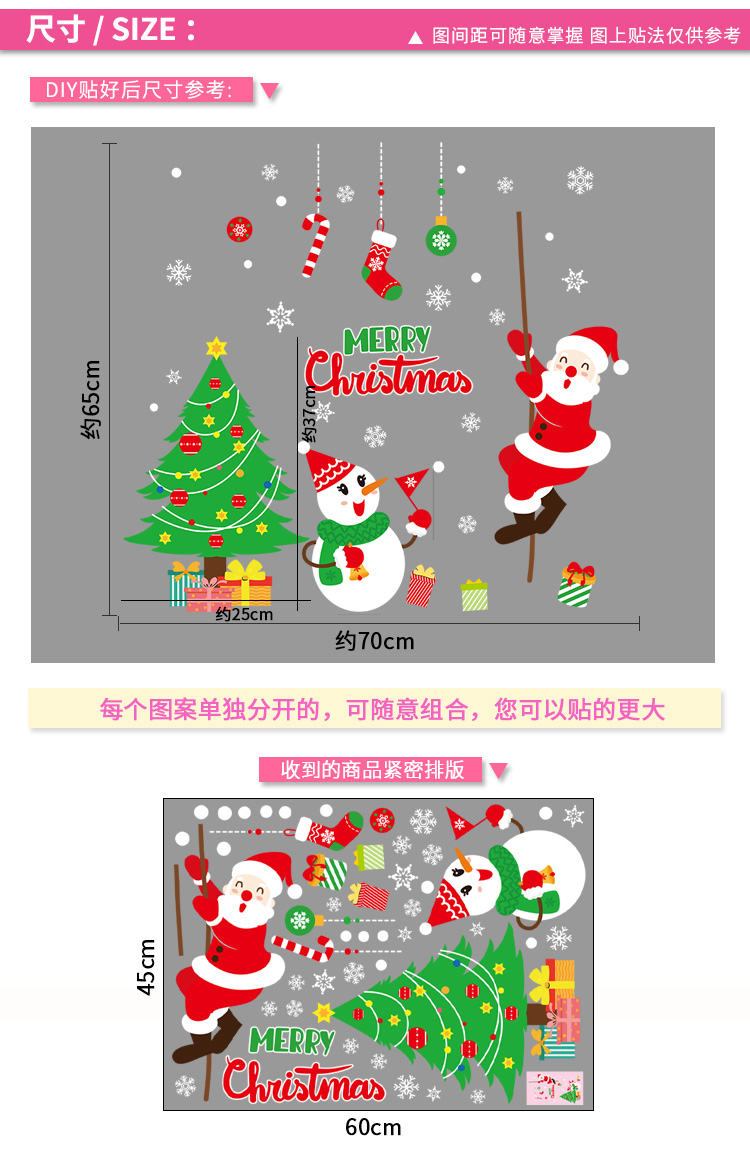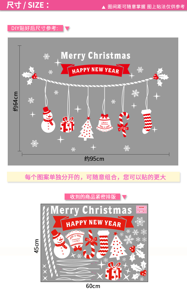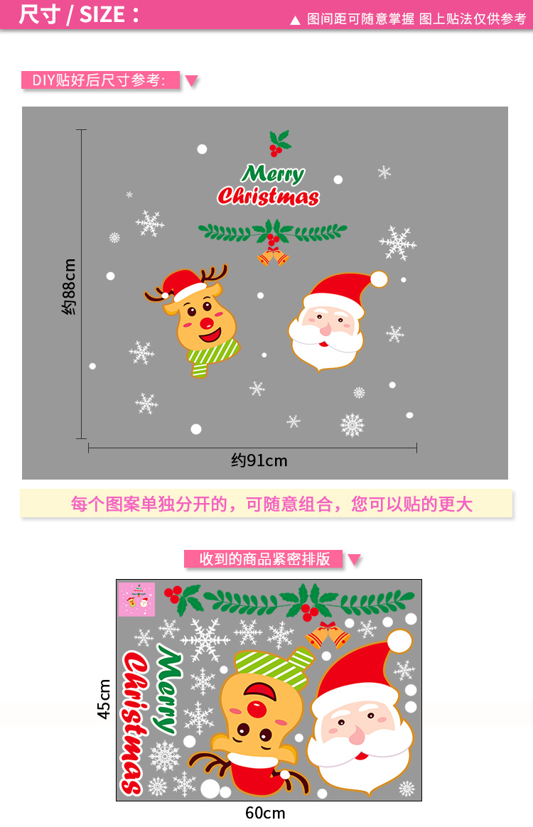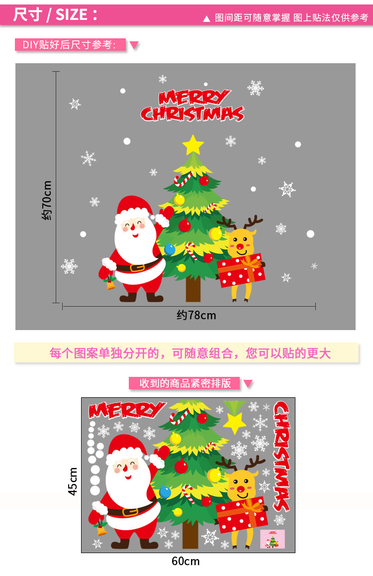 圣诞橱窗贴纸,色泽鲜艳饱满,正反面同色,多款可选,搭配各种场景,效果唯美温馨!