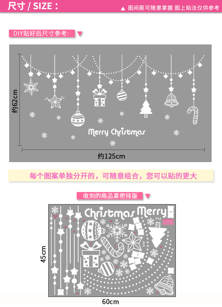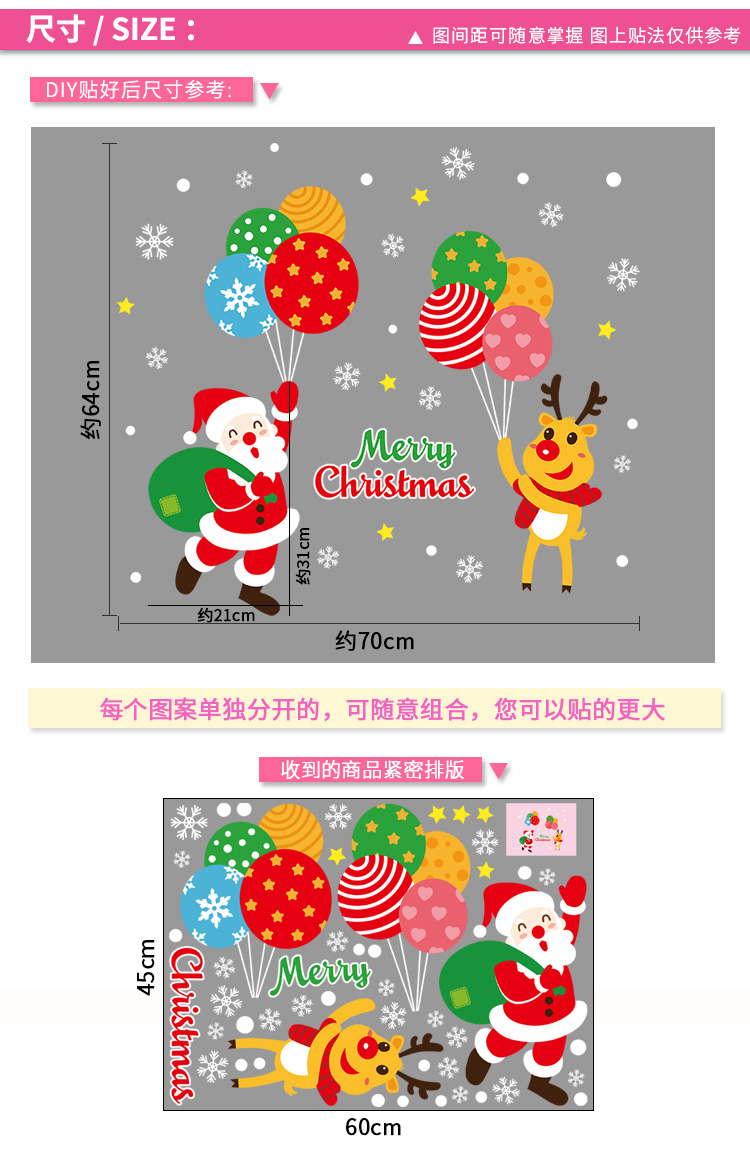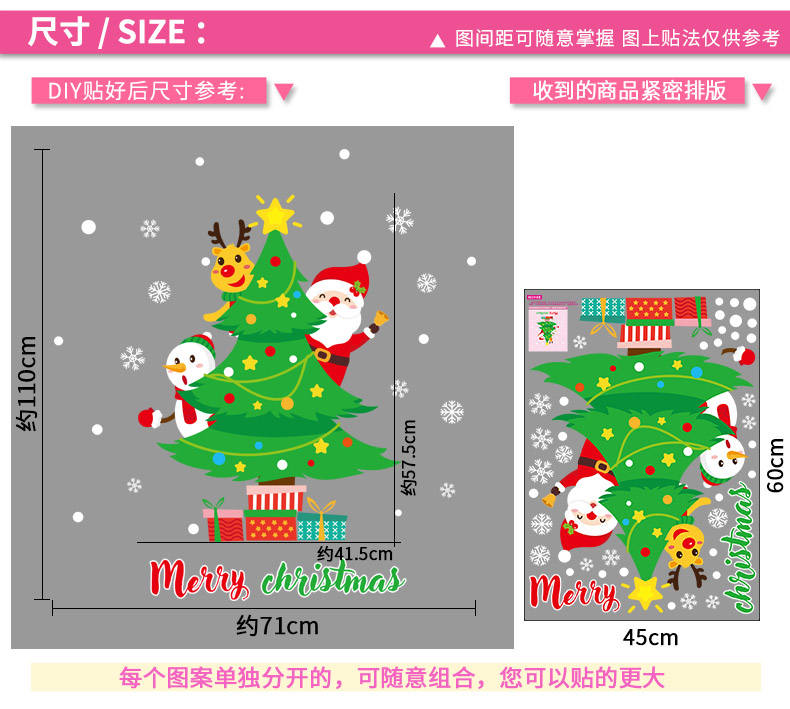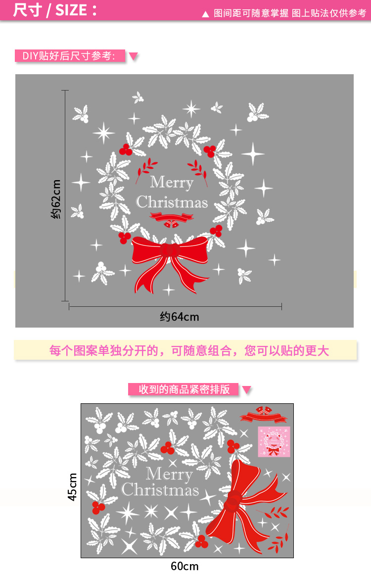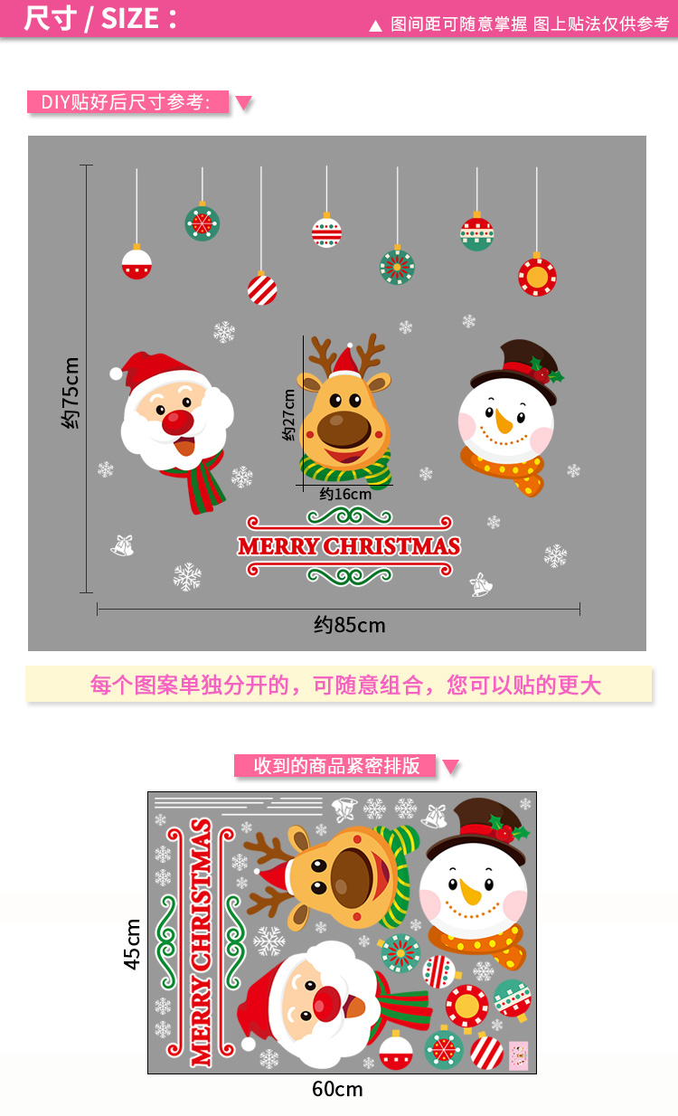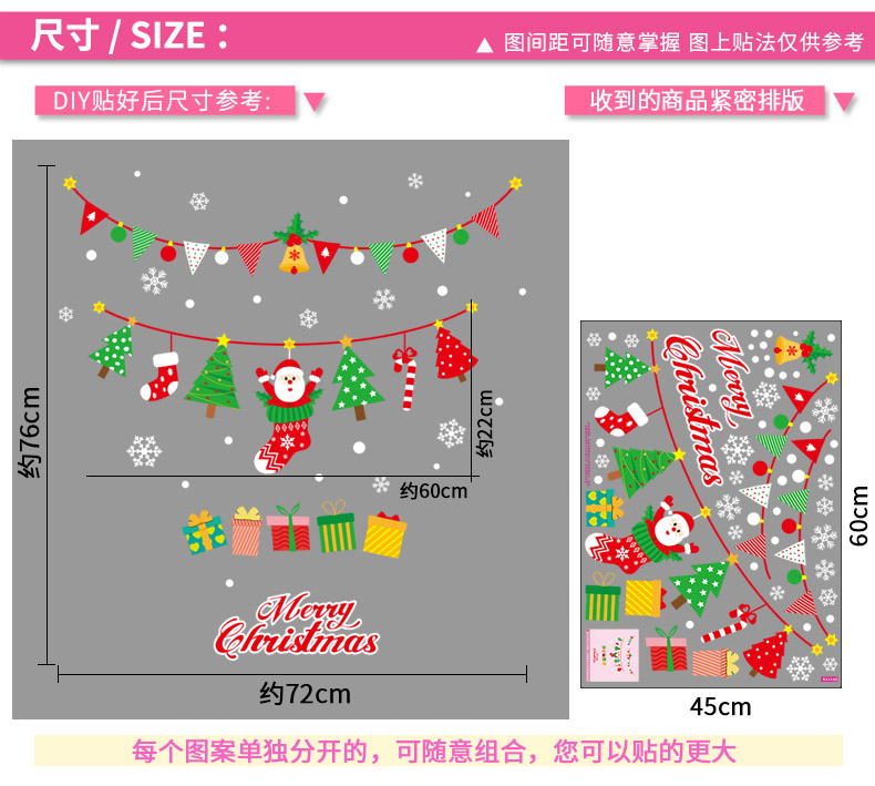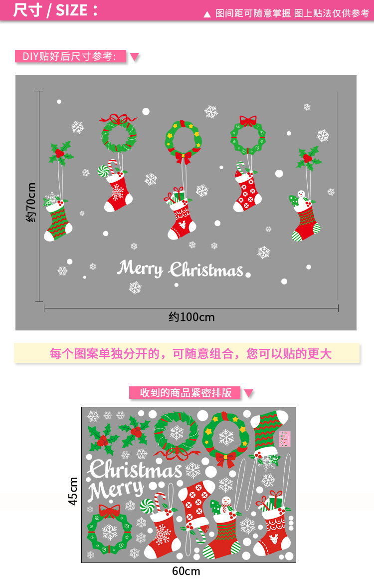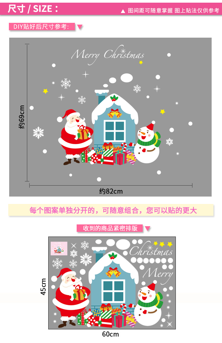 圣诞橱窗贴纸,色泽鲜艳饱满,正反面同色,多款可选,搭配各种场景,效果唯美温馨!