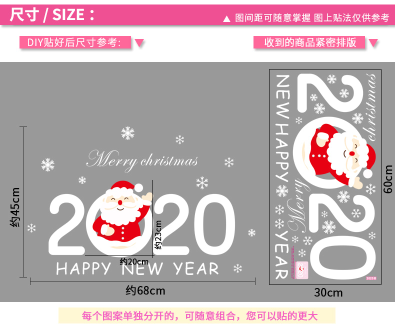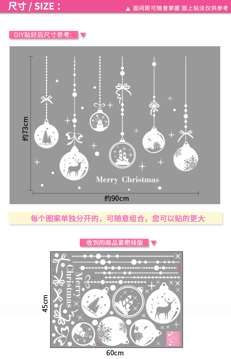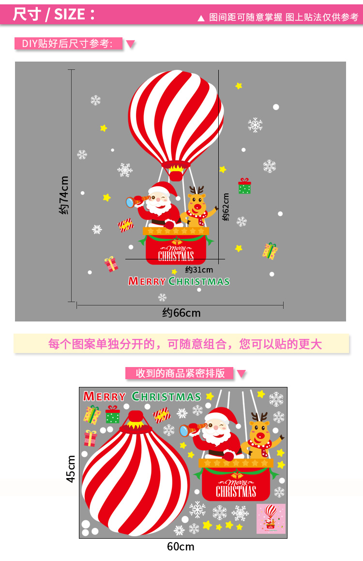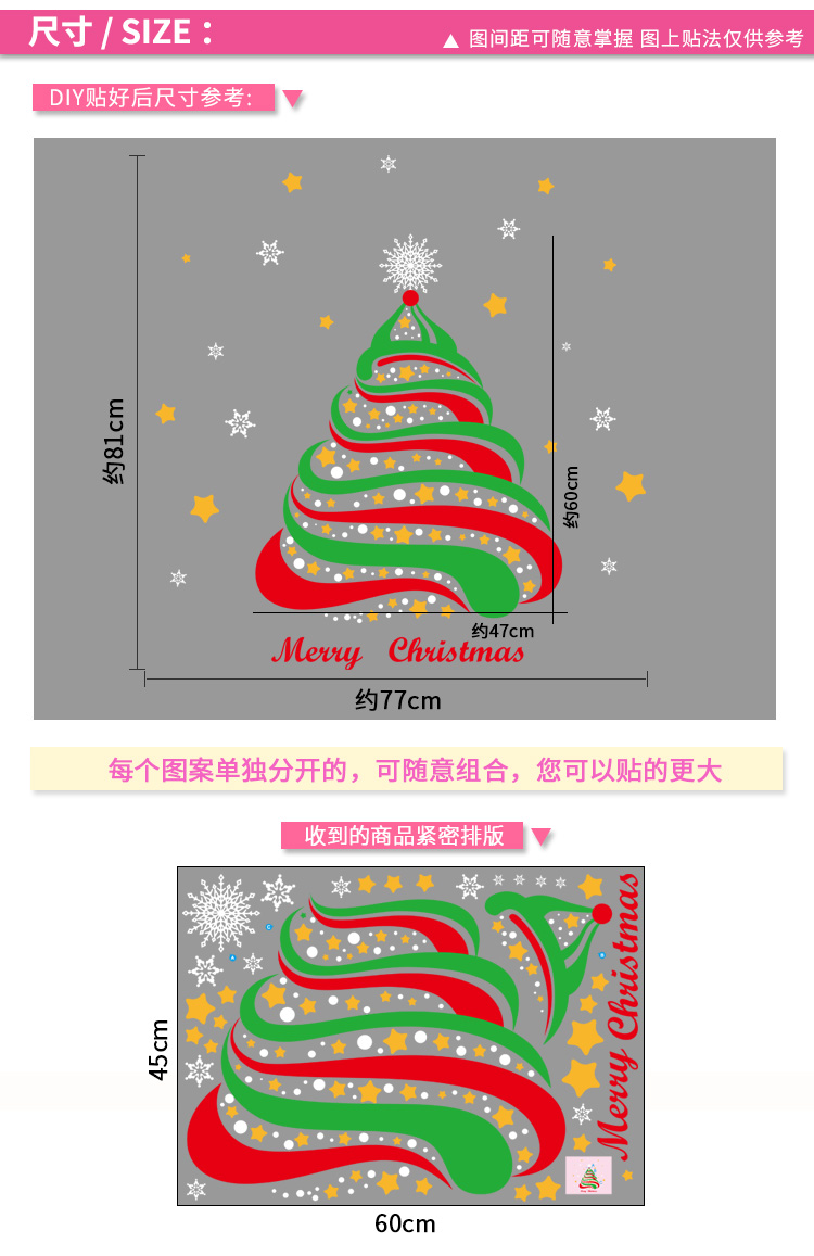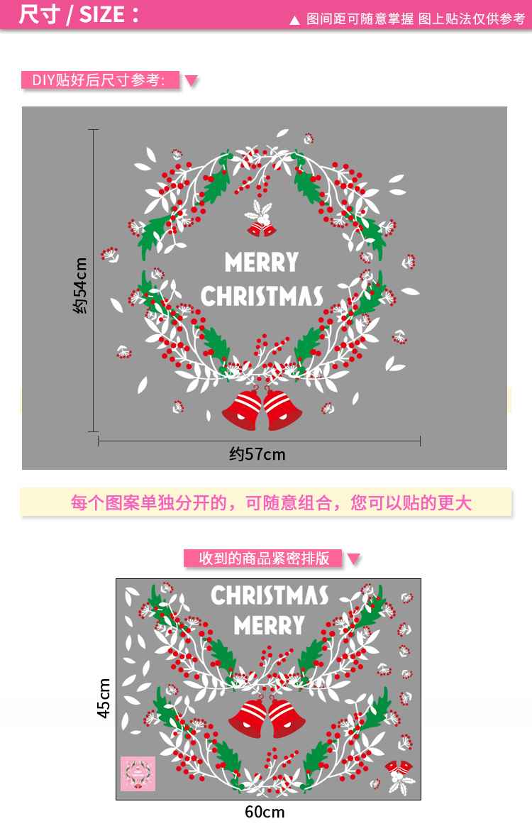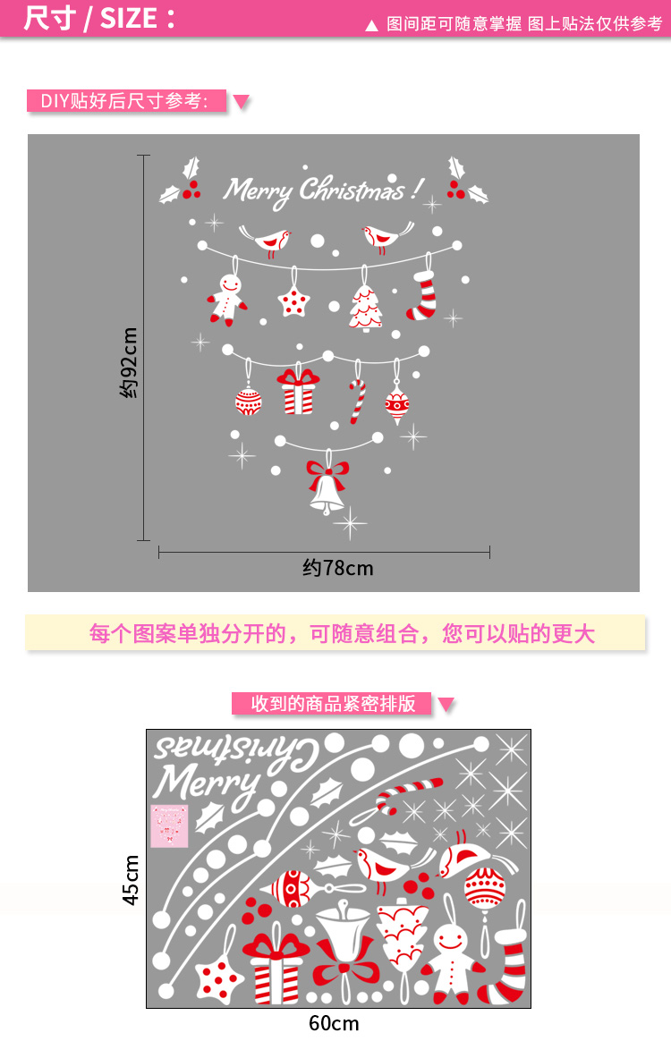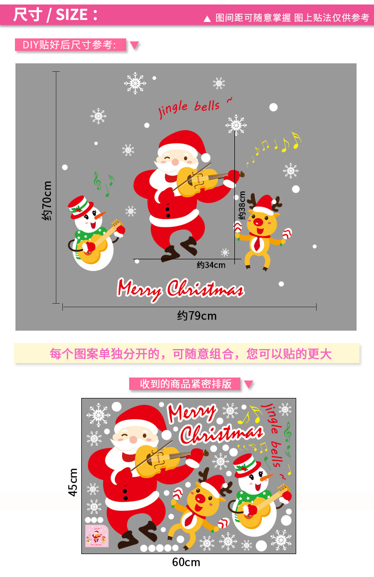 圣诞橱窗贴纸,色泽鲜艳饱满,正反面同色,多款可选,搭配各种场景,效果唯美温馨!