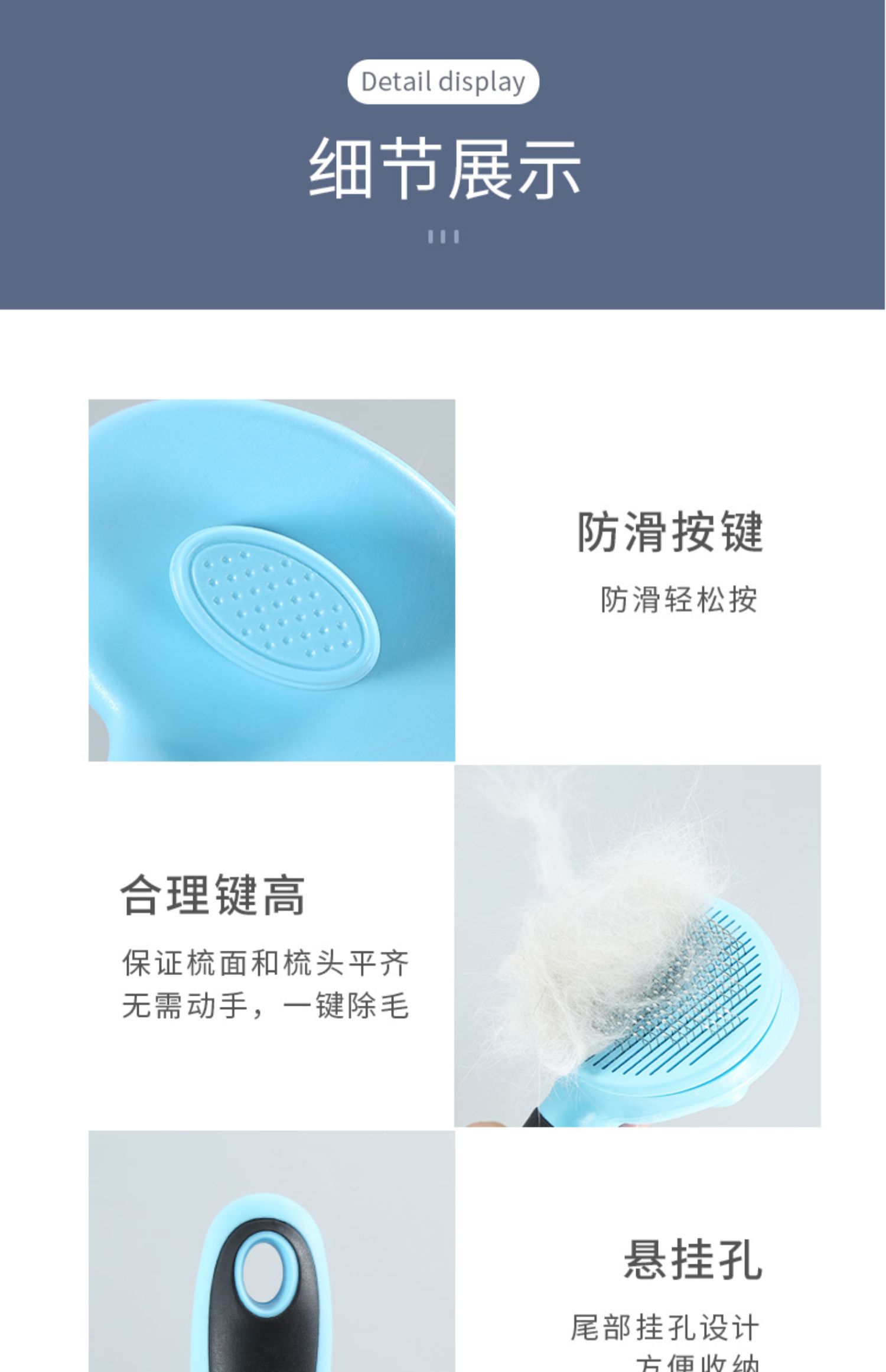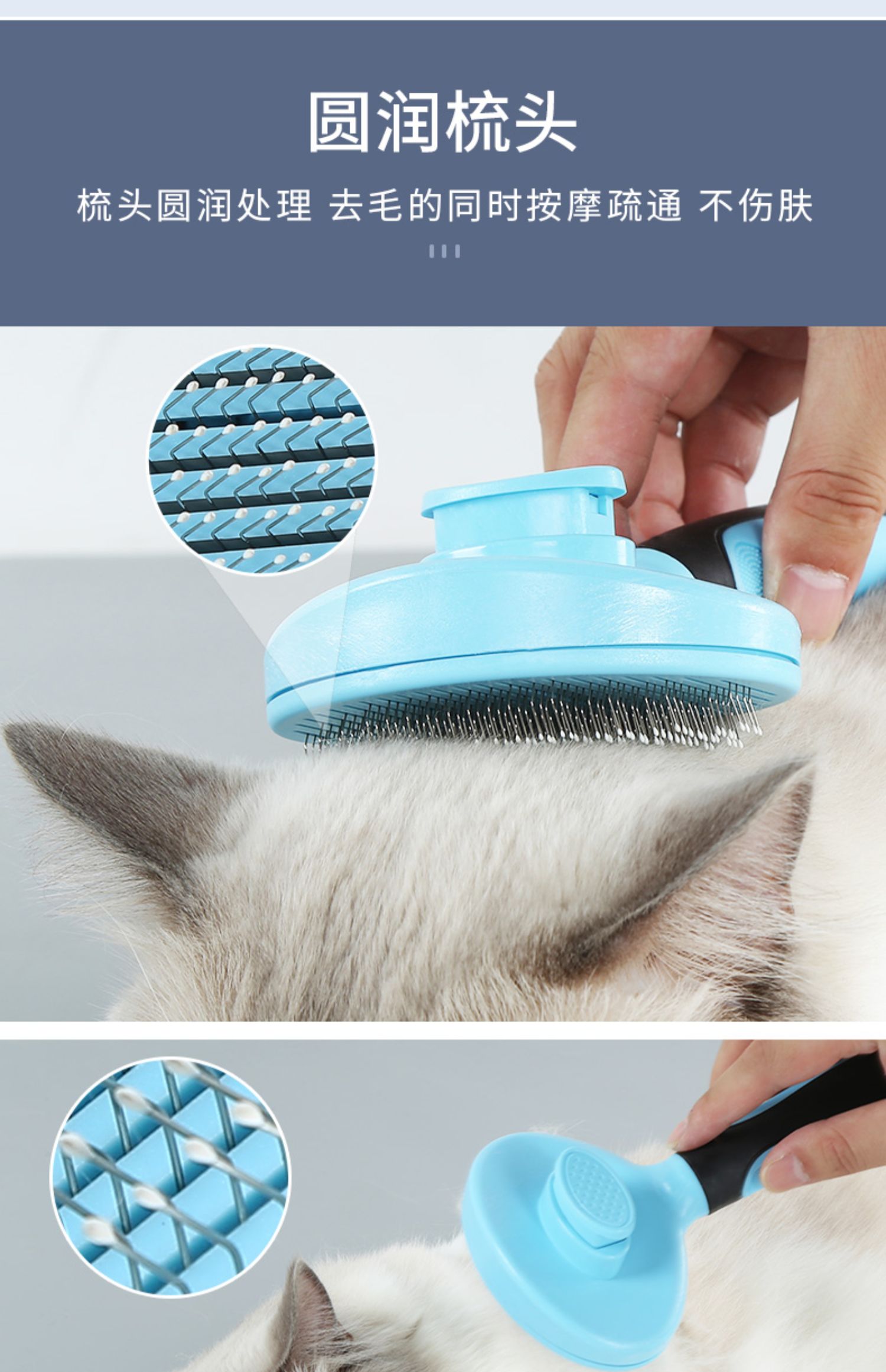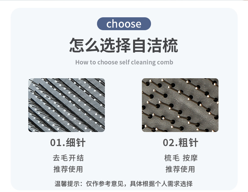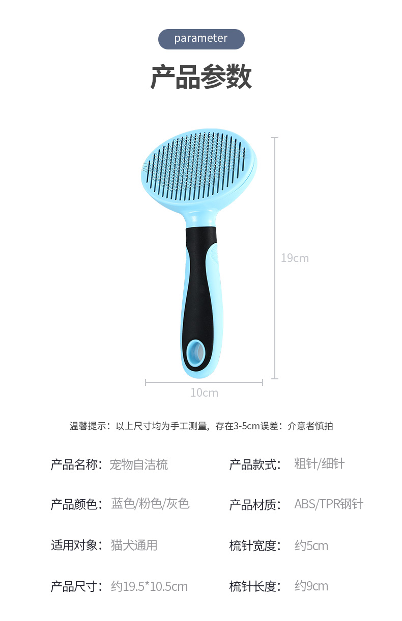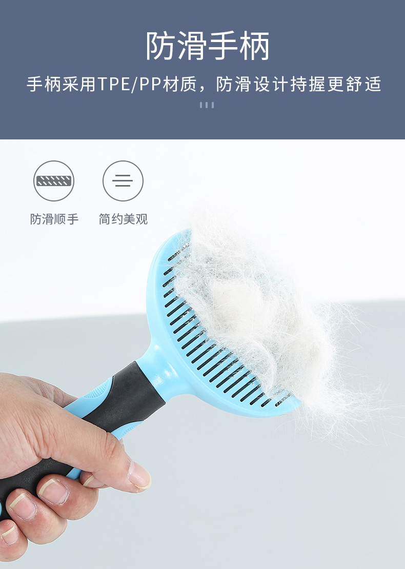舒爽解痒,按摩护肤,弹簧推板,一键自动除毛,安全省心,两款梳针可选,满足多种需求